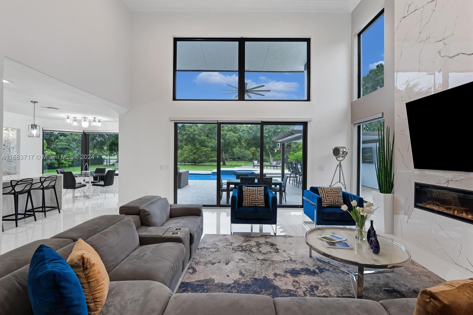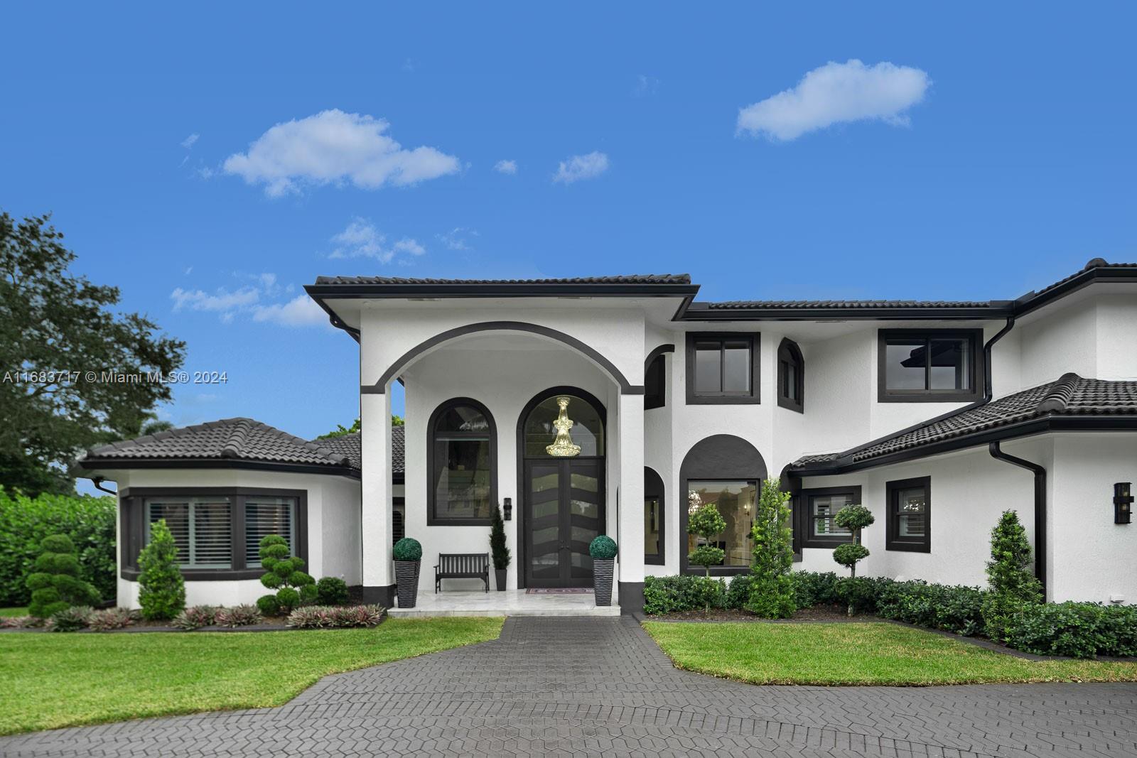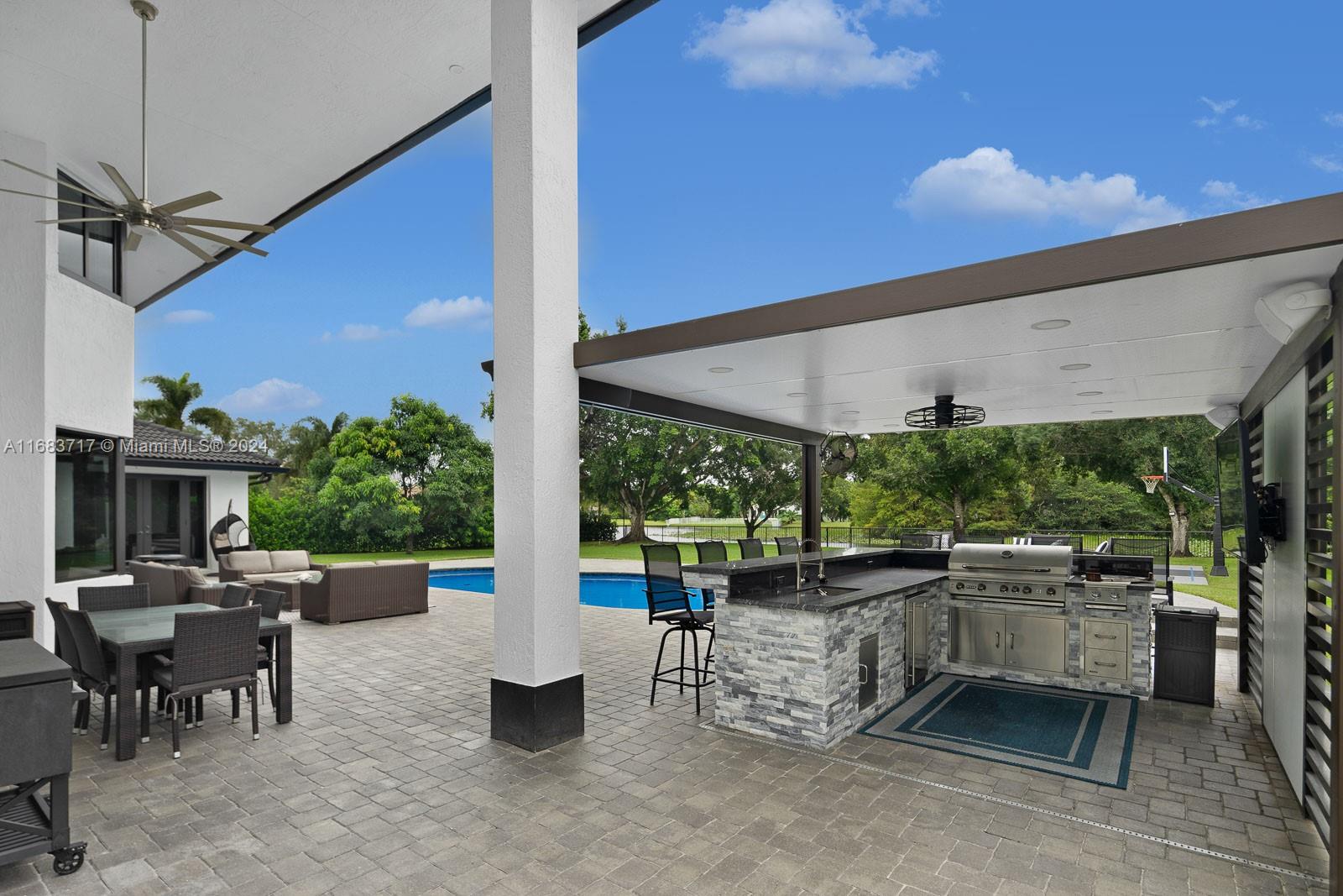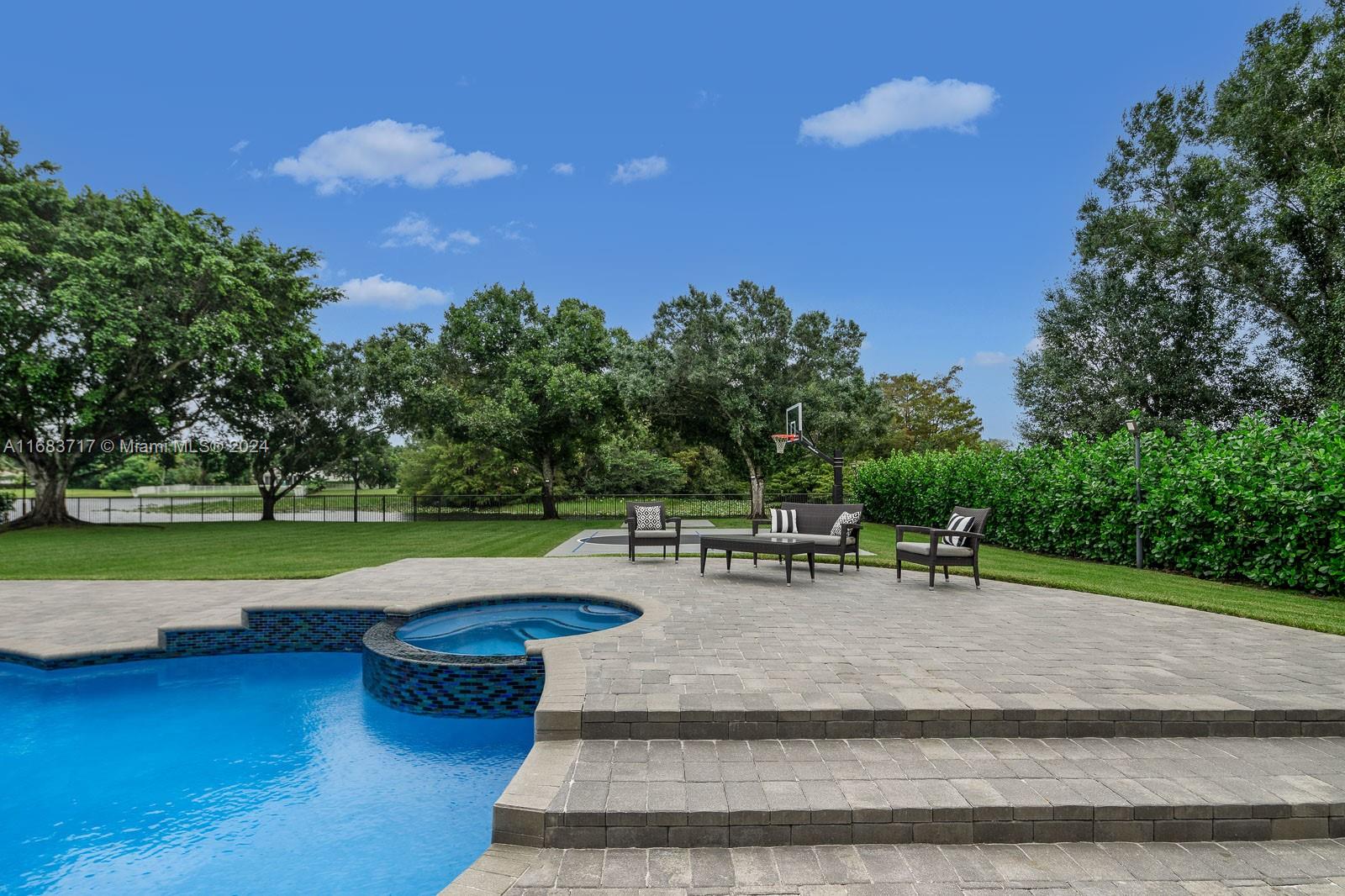 In Davie, this sprawling 7-bedroom, 4.5-bathroom estate spans 6,000+ sq. ft. with lake views, a newly remodeled saltwater pool, and outdoor kitchen. Features include high ceilings, white porcelain tile, and wood flooring on the second level. The home’s two kitchens are equipped with new appliances, while the first-floor master suite includes its own A/C and water heater. Enjoy a 10-seat theater room, generator, impact windows, and plantation shutters. Outdoors, a basketball court and mosquito system enhance the builder’s acre, perfect for luxurious entertaining and family living.