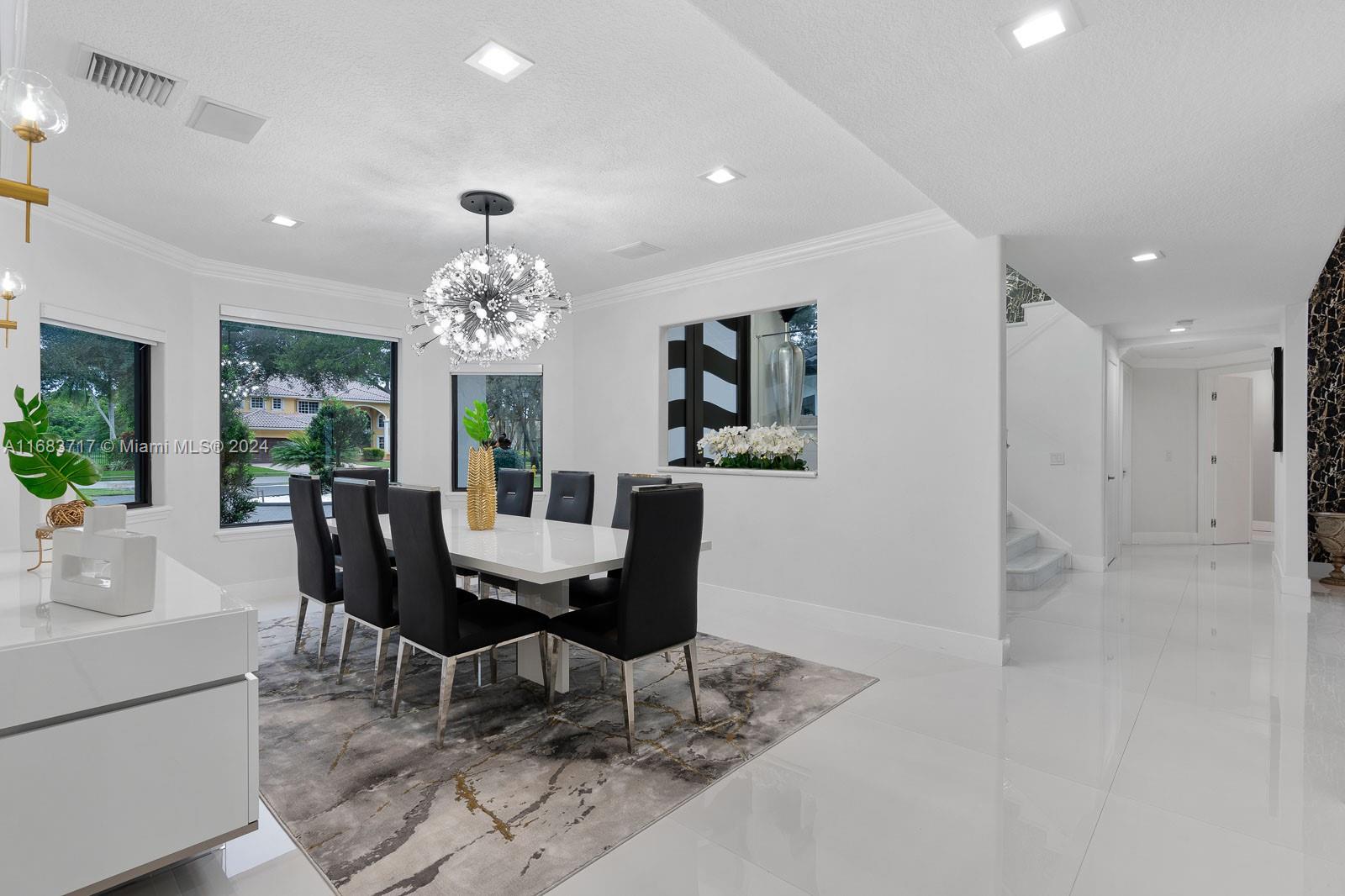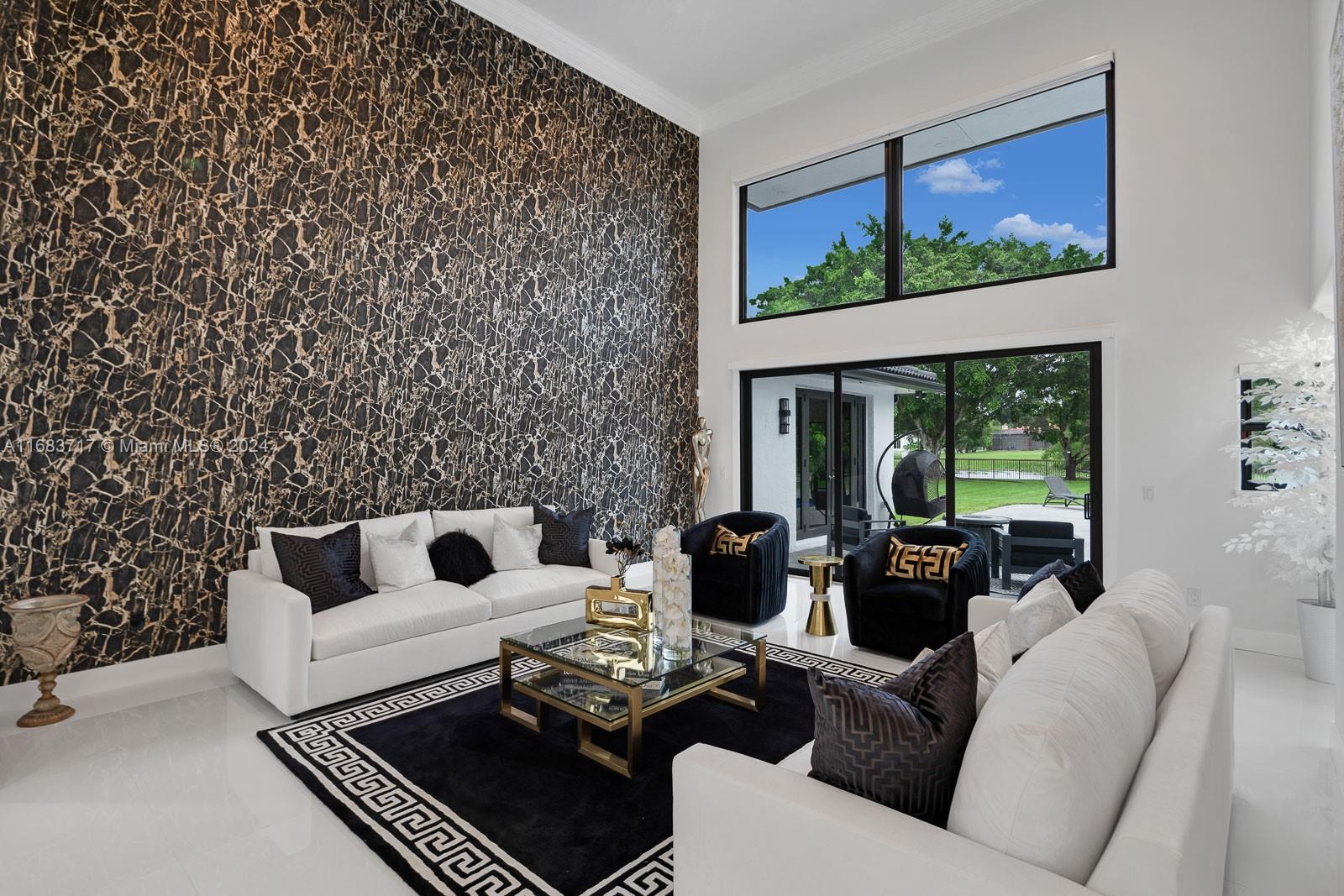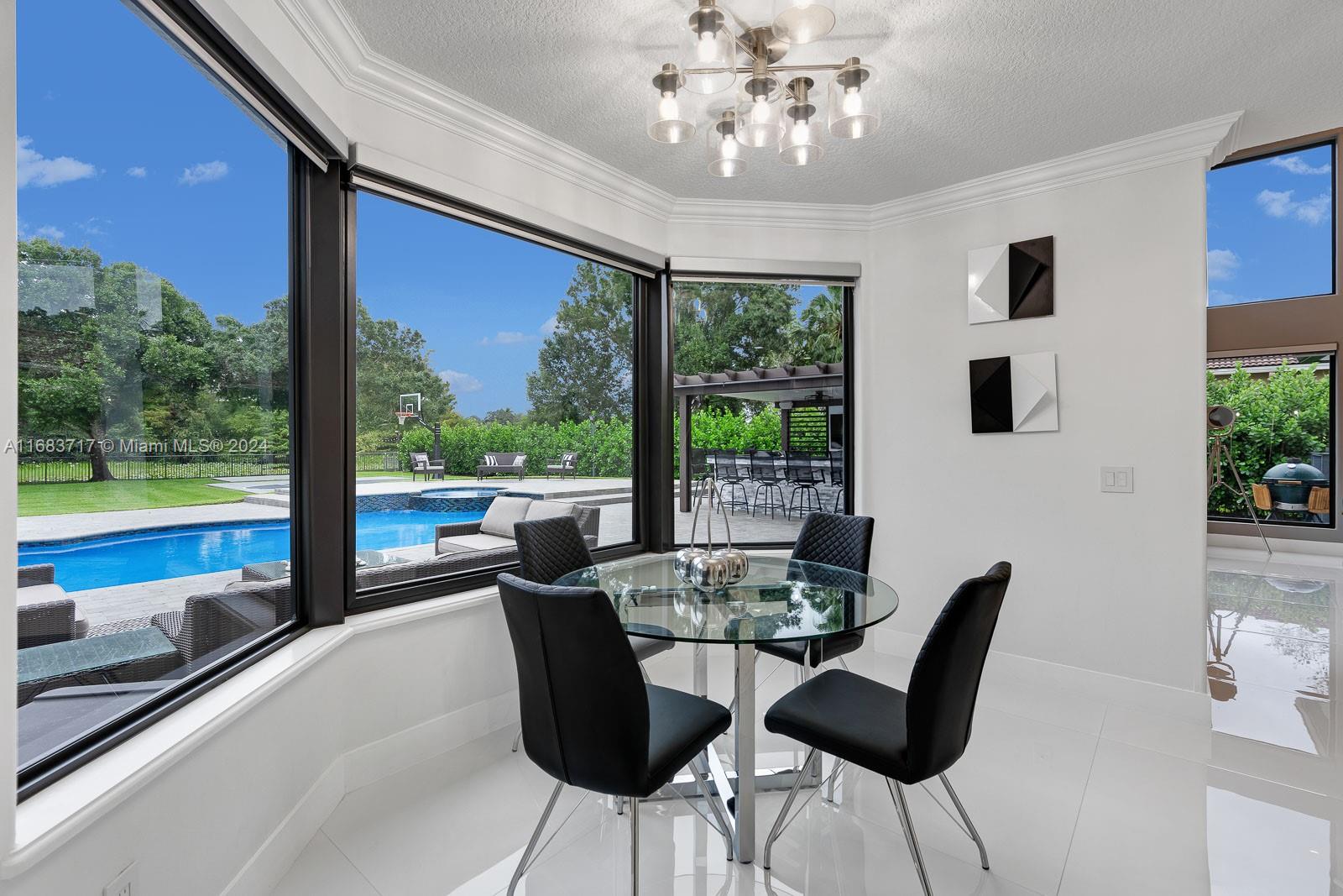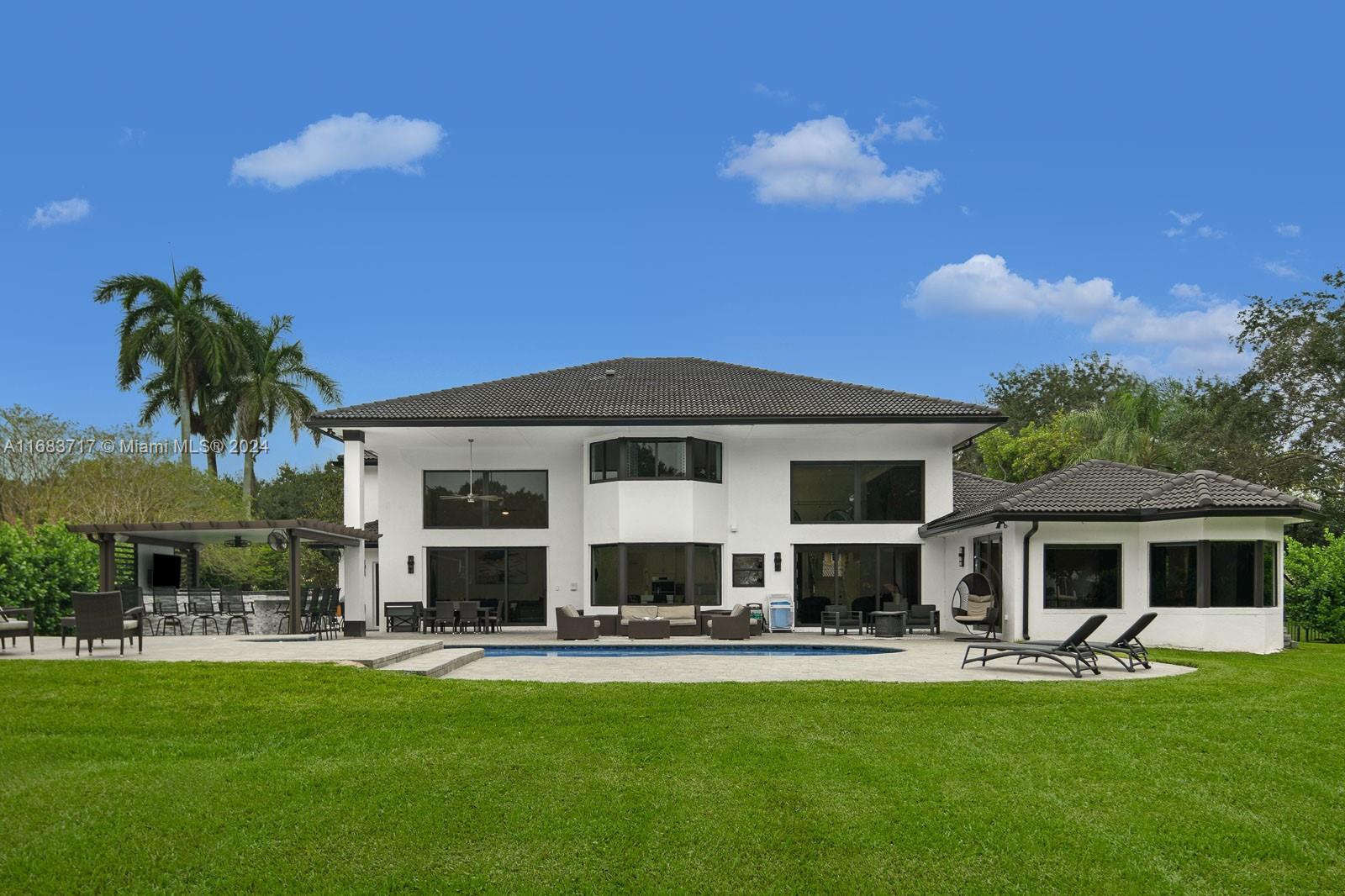 In Davie, this sprawling 7-bedroom, 4.5-bathroom estate spans 6,000+ sq. ft. with lake views, a newly remodeled saltwater pool, and outdoor kitchen. Features include high ceilings, white porcelain tile, and wood flooring on the second level. The home’s two kitchens are equipped with new appliances, while the first-floor master suite includes its own A/C and water heater. Enjoy a 10-seat theater room, generator, impact windows, and plantation shutters. Outdoors, a basketball court and mosquito system enhance the builder’s acre, perfect for luxurious entertaining and family living.