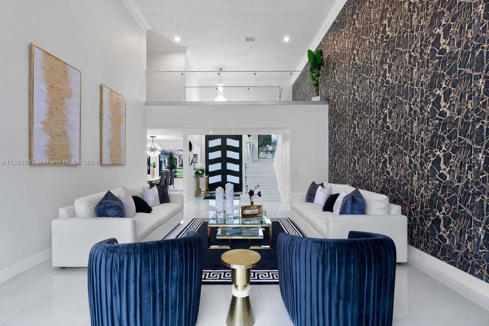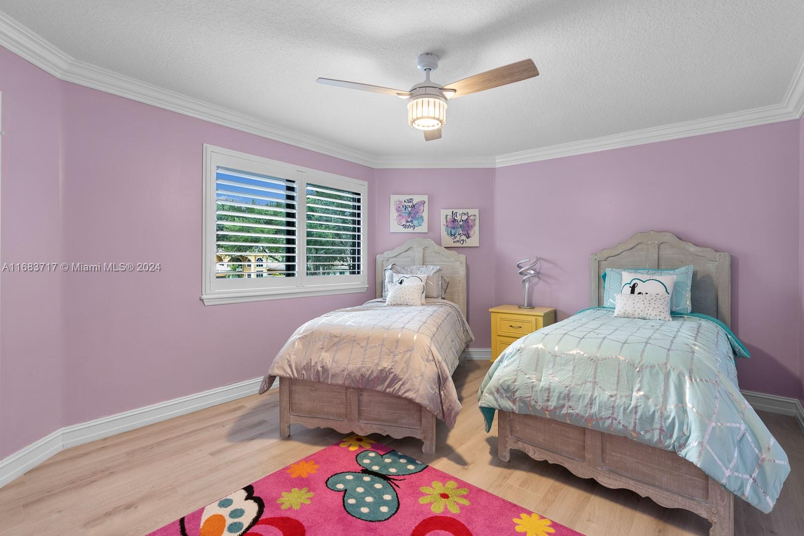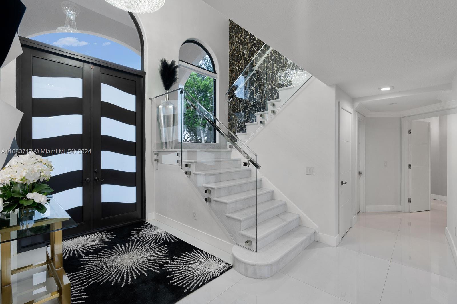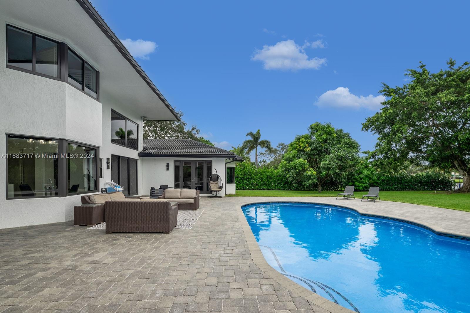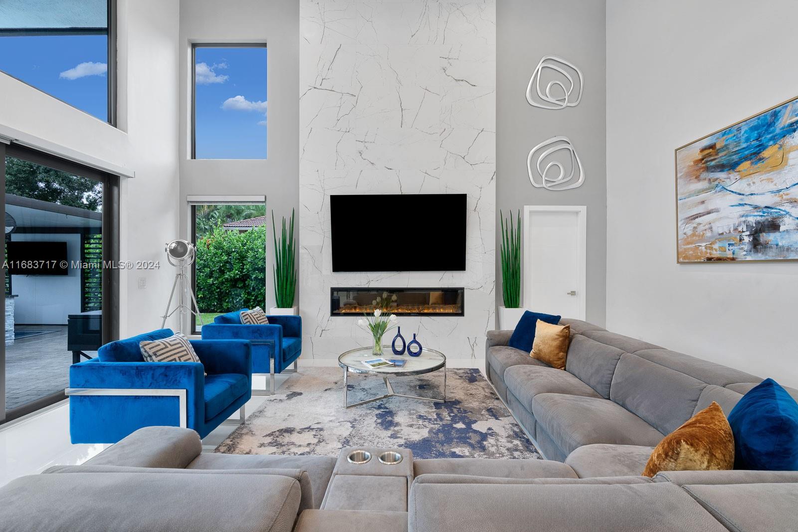 In Davie, this sprawling 7-bedroom, 4.5-bathroom estate spans 6,000+ sq. ft. with lake views, a newly remodeled saltwater pool, and outdoor kitchen. Features include high ceilings, white porcelain tile, and wood flooring on the second level. The home’s two kitchens are equipped with new appliances, while the first-floor master suite includes its own A/C and water heater. Enjoy a 10-seat theater room, generator, impact windows, and plantation shutters. Outdoors, a basketball court and mosquito system enhance the builder’s acre, perfect for luxurious entertaining and family living.