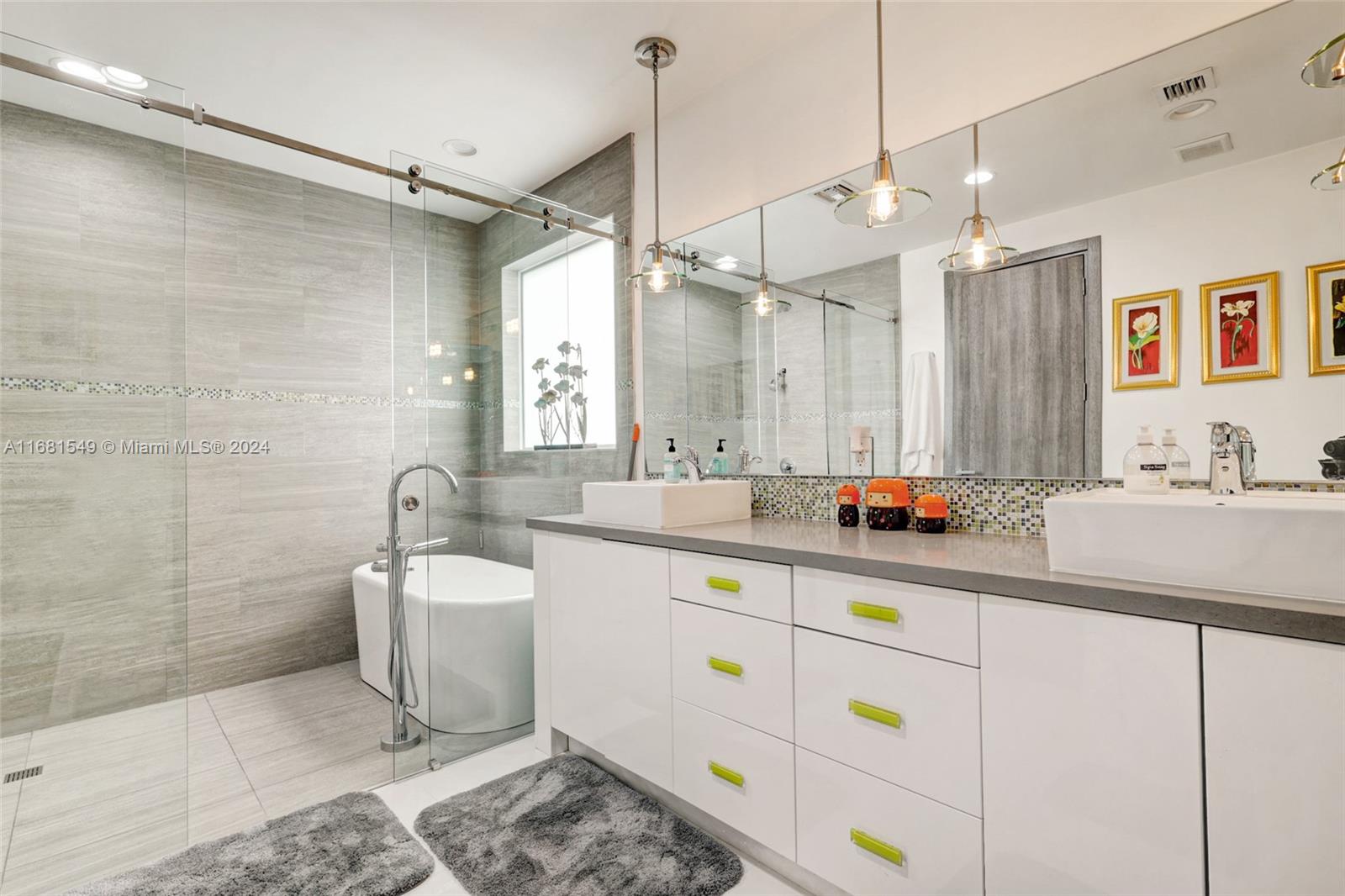 Experience luxury in this newly built, custom contemporary home, with 5 bedrooms (1 bed used as dedicated office) & 3.5 bathrooms. This stunning residence showcases unparalleled craftsmanship and design. Italian porcelain floors flow throughout, connecting an open living and formal dining area to a gourmet eat-in kitchen with quartz countertops, mosaic backsplash, and high-end stainless steel appliances. The master suite offers dual vanities, a glass-enclosed shower, and a freestanding tub. Secondary bedrooms feature a Jack-and-Jill bathroom. Impact-resistant windows and a custom front door provide security, elengace and style, while a backyard with lush fruit trees invites relaxation. Built with top-quality materials, this one-of-a-kind home blends elegance and comfort—a true masterpiece!