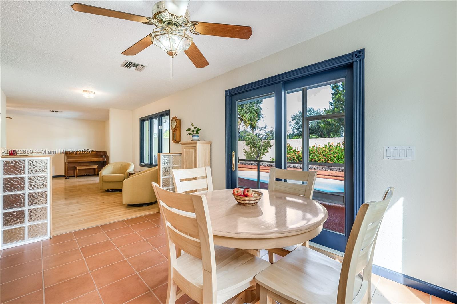 BACK ON MARKET, BUYER LOSING FINANCING, APPRAISED OVER LIST. Welcome home to this big 4 bedroom PLUS handy office with closet. Built in 98 this one has been kept in PRISTINE condition by the original owner. Large kitchen with wood cabinets & solid surface counters. Breakfast area, living area & quaint sitting area which can used for formal dining Textured ceilings & walls. Pretty laminate floors & open staircase. The primary suite is huge. Nice sized bedrooms. NEW ROOF! Hurricane shutters, accordions & rated garage door. Easy to maintain fiberglass pool with deck. Big screened & covered patio for entertaining. Private fenced lot w/no neighbors in the back. Terrific Plantation location within walking distance to elementary. Easy access to shopping, restaurants & highways. Low HOA.