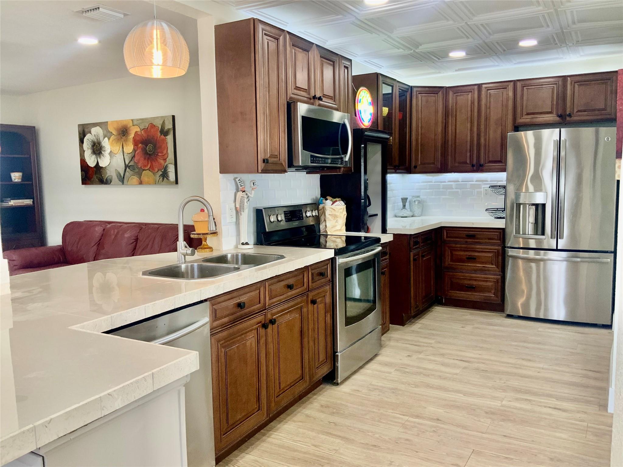Wow! A Must See! Lovely Upgraded 4 Bed 2 Bath Modern Spacious Home. With separate dining area. New Kitchen with seated island. With pantry and laundry room. Bedrooms have 3 large walk-in closets. Brand New Roof- 2024. Large private backyard, perfect for entertaining! Also has a brick concrete studio/hobby shed. Plenty of room for your boat. Great central location. Easy to show. Pl