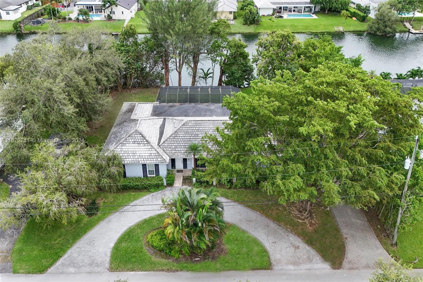 Discover the opportunity to own this exquisite one-story lakefront home in the highly sought-after Village of Pinecrest. This residence boasts elegant curb appeal and impact glass throughout and features a durable concrete tile roof that is just eight years old. Situated on a serene double-wide canal and nestled on over 15,000 square feet of lush tropical landscaping, this property offers the perfect canvas to customize to your style. Screened in a swimming pool area ideal for exercise and cooling off in Miami's sun. With an updated electrical panel and a spacious two-car garage, this home is practical and inviting. Just a few blocks from top-rated Pinecrest schools, this location is perfect for families seeking beauty and convenience.