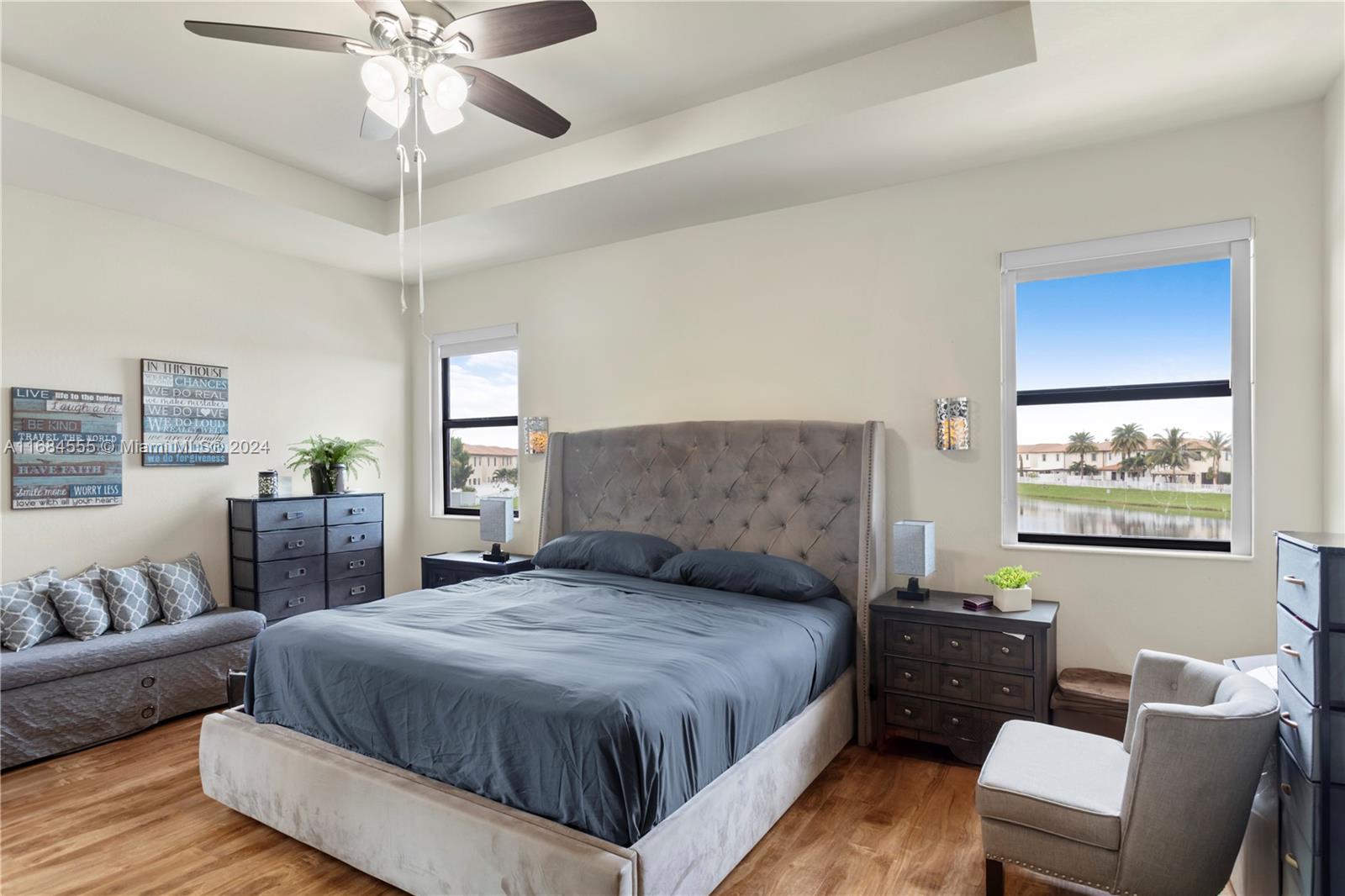 Prestigious family 4 Bedroom 3.5 Bathroom 2 Story home with a spectacular lake view! Nestled within this prestigious gated community of Bellagio. This home offers a sanctuary of comfort and style. Impact windows throughout the home and green solar panels. Ultra Large Master Bedroom with grand master walk-in closet. Master bath with dual sinks and Roman tub jacuzzi. Separate laundry room upstairs near bedrooms for your convenience. The kitchen has stainless steel appliances and granite countertops with a large pantry. Tile and wood flooring. 2 Car Garage. Gated Community with resort-style amenities including pool, spa, clubhouse, gym, and children's play area. Close to shopping, restaurants, major highways, Doral, and Miami Lakes.