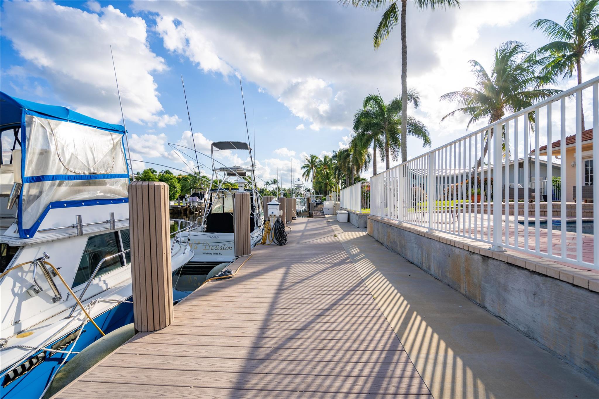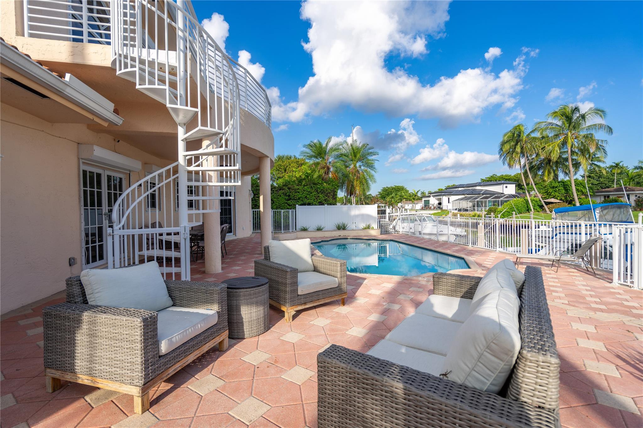 Almost 3,000 sq ft of air conditioned living space and the entire structure, which is over 3800 sq ft, is concrete block construction! This desirable N Pompano Beach location is within minutes of open ocean water via the Hillsboro Inlet. The seawall was rebuilt in 2017 with batter piles, a new cap, new retaining wall and polymer dock. New tile roof in 2020. There are 3 AC zones, 1 of these replaced in 2021 and the other 2 in 2019. Pool resurface and new tile 2024. Over-sized 2 car garage. The interior of the home is ready for your updates and includes a huge primary suite upstairs, high ceilings, and an interior laundry room. You will enjoy plenty of room in your waterfront backyard as the pool is set to one side of the yard leaving a ton of entertainment space.