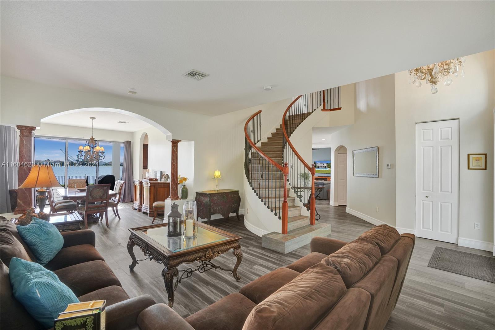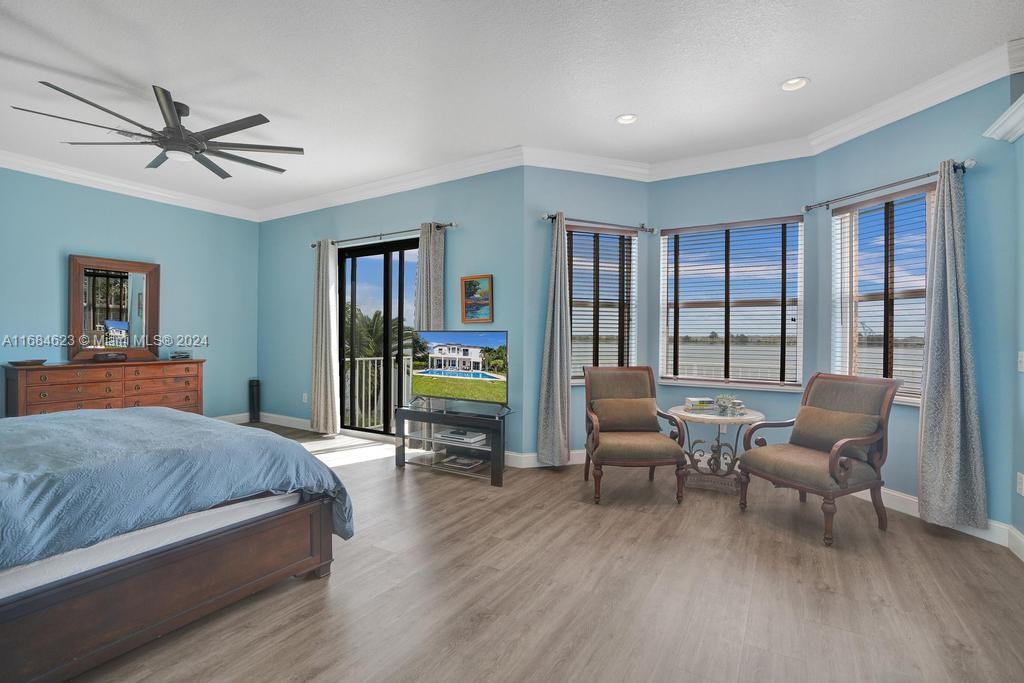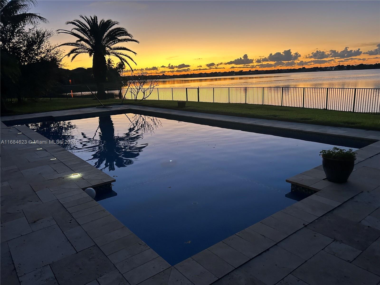Nestled in the exclusive Riviera Isles Portofino community, this meticulously maintained 5 bedroom, 3 bath luxury home offers breathtaking lake and pool views. Perfect for entertaining, home boasts an oversized kitchen, formal dining, family, and living rooms, ceramic tile on first floor and wood laminate on second floor. Oversized master suite is a private oasis featuring separate seating area, dual bathrooms (his & hers), large shower with LED lights, hot tub, walk-in closet and spacious balcony overlooking pool and lake. New roof (2022), PEX pipes (2024), 3 impact glass slider doors, impact window above front door, and reinforced steel tie rods enhance structural integrity. Additional highlights include a first-floor bedroom & full bath, 3-car garage, new pool pump and fruit trees.