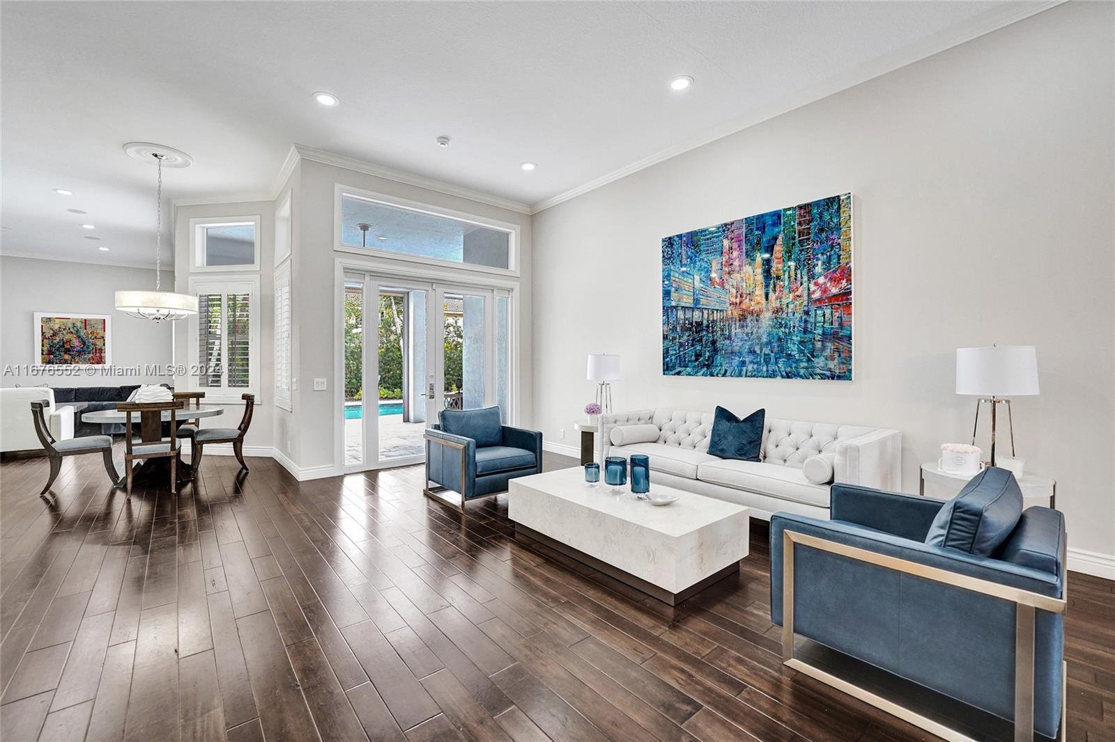 Welcome Home to this stunning 4-bed, office, 3.5-bath home in Weston Hills CC. Recently remodeled with open-concept design and soaring ceilings, this home features real wood floors, impact doors, new roof (currently being installed), and hurricane-protected Rolladen-enclosed patio. Primary suite is a luxurious retreat with custom-organized closet, vanity area, and spa-like remodeled bathroom. Chef’s kitchen with 80x40-in island, Thermador appliances, Jenn-Air wine cooler, pot filler, and Ever Pure water chiller. Outdoors, enjoy heated saltwater pool with marble-finished deck and summer kitchen on fully fenced, oversized 12,111 sq ft cul-de-sac lot. Luxurious touches include heated Toto toilets, new doors, and an epoxy-finished garage with custom cabinetry.(See attached full upgrade sheet)