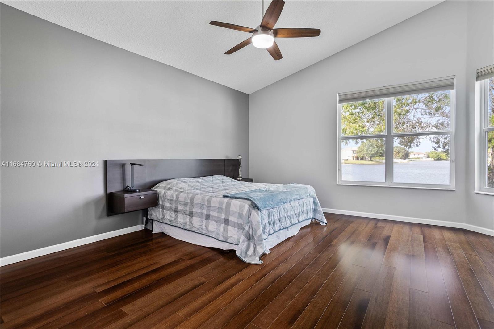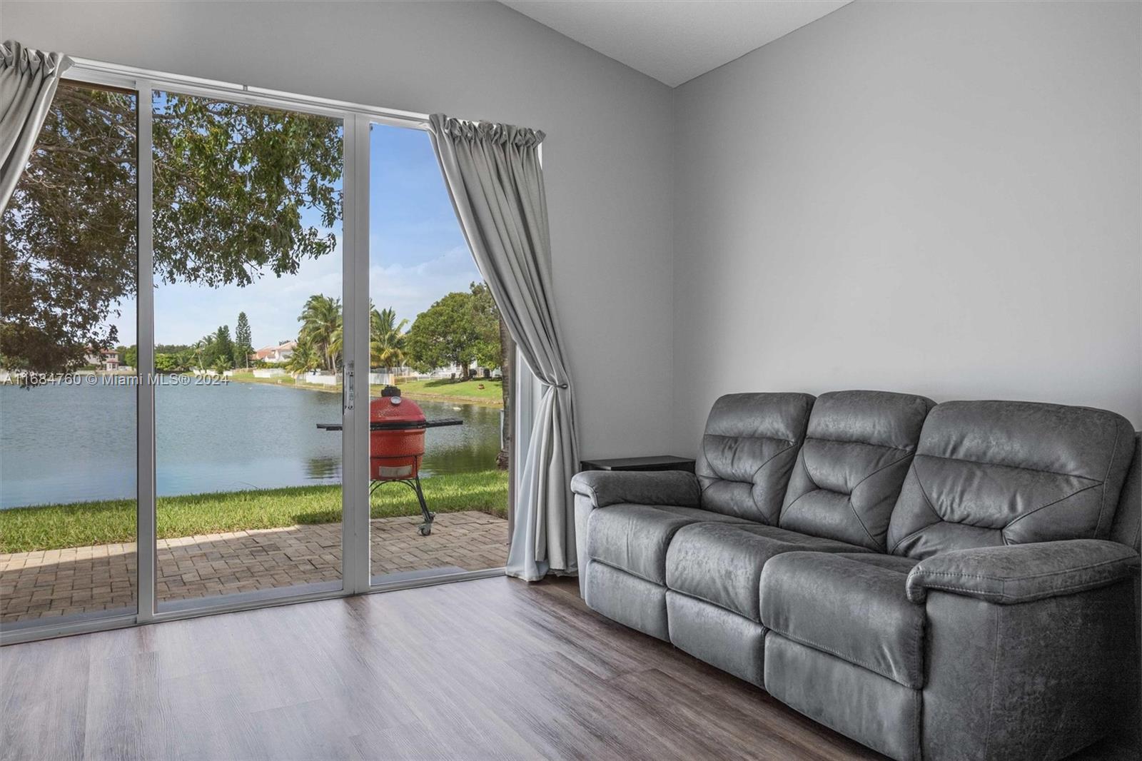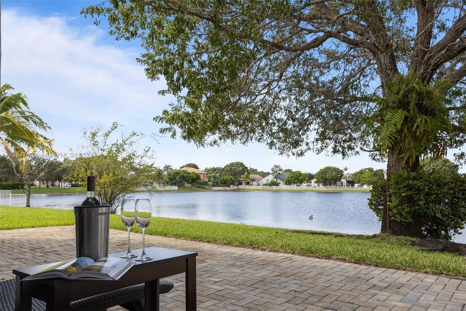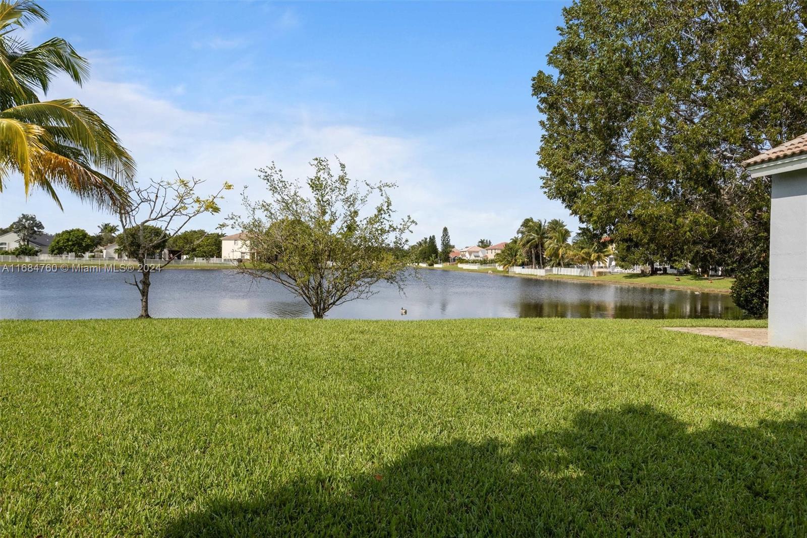 Beautiful single-story lakefront home in the quiet gated community of Monaco Cove in Sunset Lakes! This 4-bedroom, 3-bath home features a family room and has undergone extensive renovations, both inside and out, including upgraded flooring, master bathroom, impact windows, new painting, efficient AC / water heaters, and more. It features high-end finishes, stainless steel appliances, and spacious 13-foot ceilings. The fenced backyard offers stunning lake views and breathtaking sunsets, with ample space for a pool. Make this bright and spacious retreat your new home.
