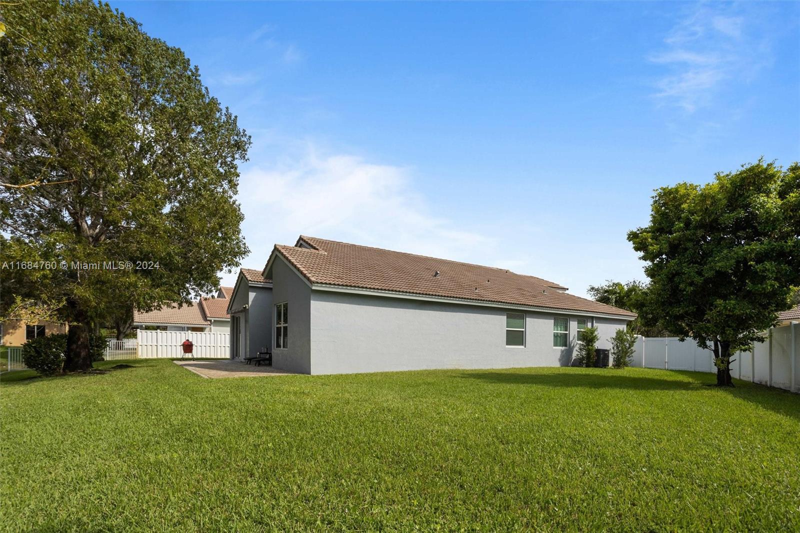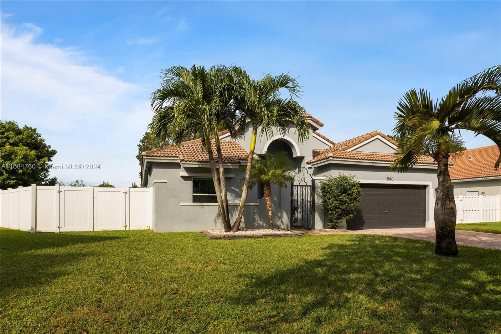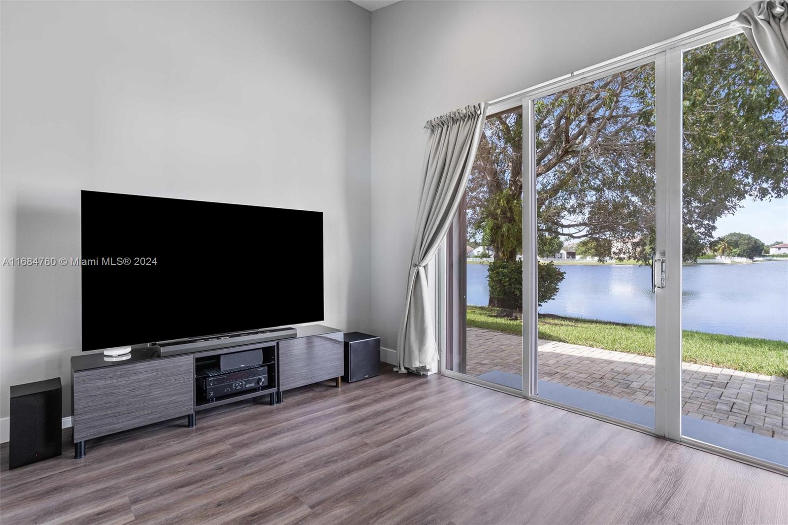 Beautiful single-story lakefront home in the quiet gated community of Monaco Cove in Sunset Lakes! This 4-bedroom, 3-bath home features a family room and has undergone extensive renovations, both inside and out, including upgraded flooring, master bathroom, impact windows, new painting, efficient AC / water heaters, and more. It features high-end finishes, stainless steel appliances, and spacious 13-foot ceilings. The fenced backyard offers stunning lake views and breathtaking sunsets, with ample space for a pool. Make this bright and spacious retreat your new home.