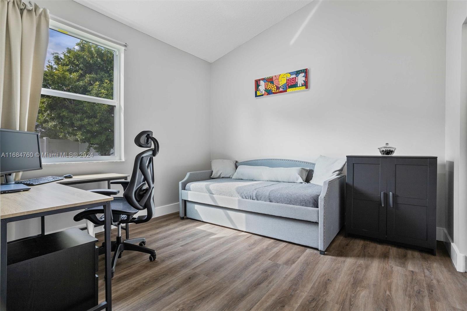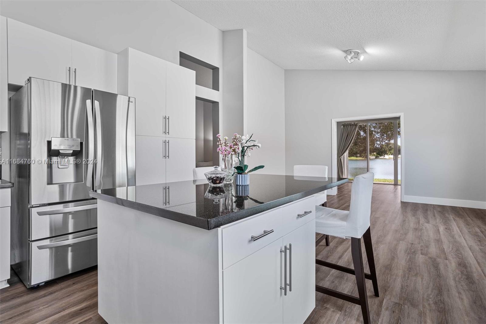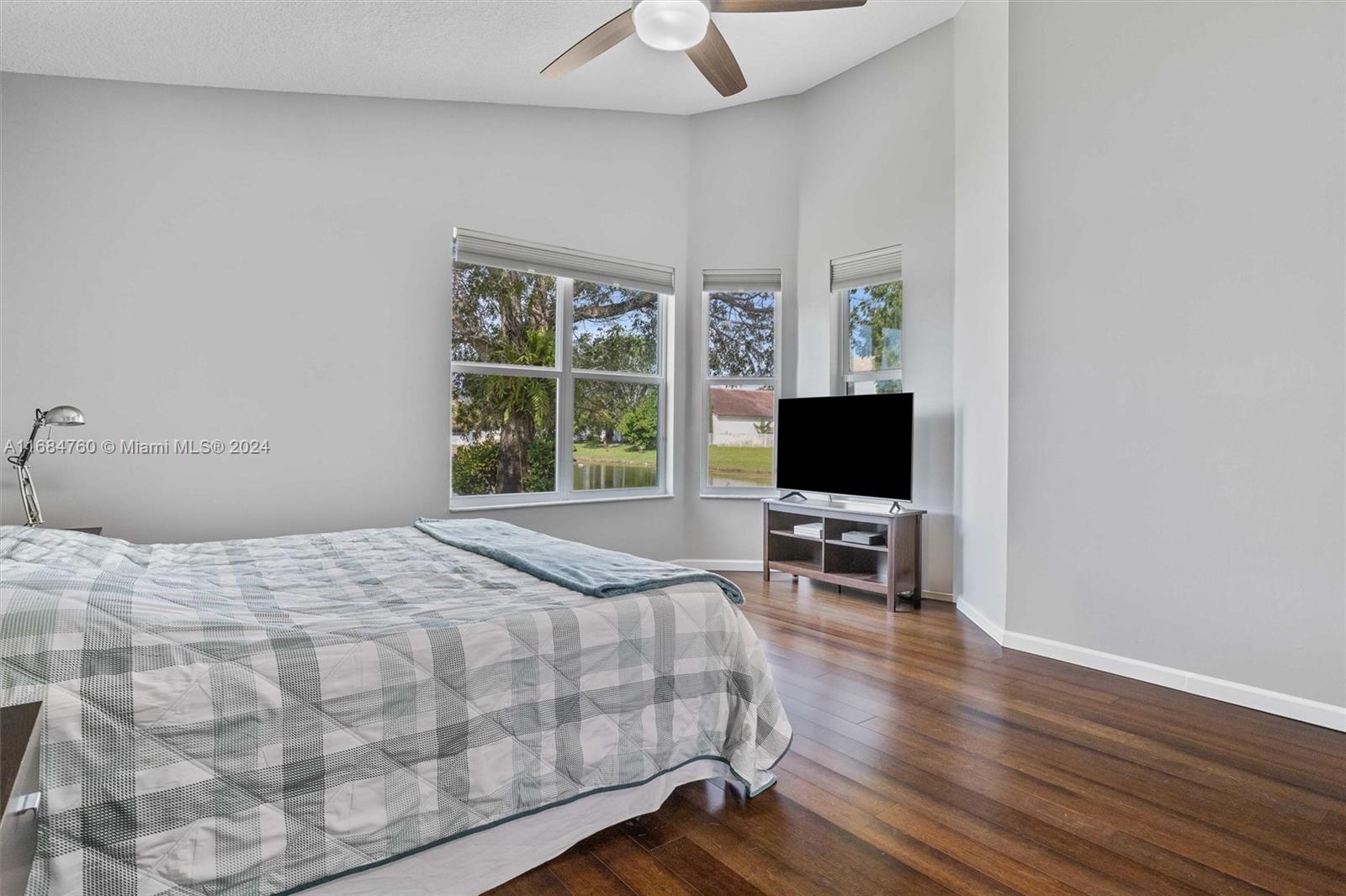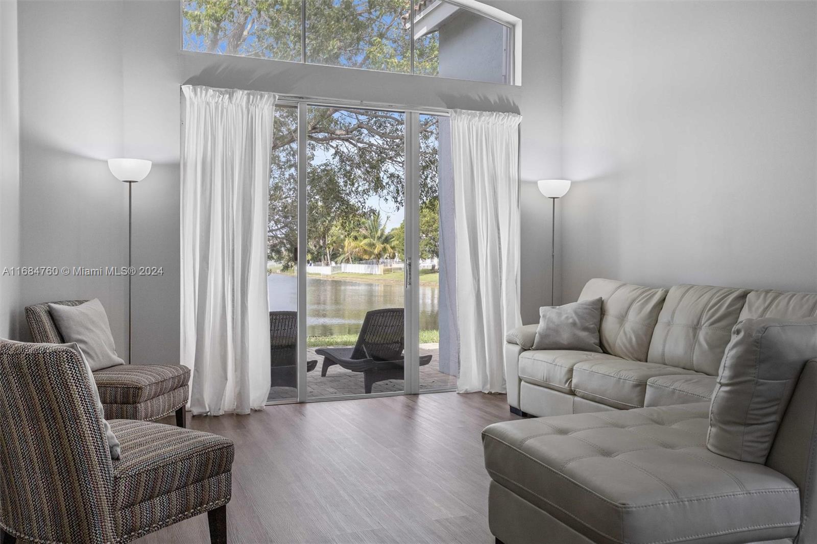 Beautiful single-story lakefront home in the quiet gated community of Monaco Cove in Sunset Lakes! This 4-bedroom, 3-bath home features a family room and has undergone extensive renovations, both inside and out, including upgraded flooring, master bathroom, impact windows, new painting, efficient AC / water heaters, and more. It features high-end finishes, stainless steel appliances, and spacious 13-foot ceilings. The fenced backyard offers stunning lake views and breathtaking sunsets, with ample space for a pool. Make this bright and spacious retreat your new home.