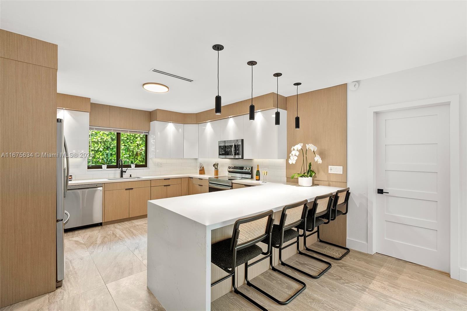 Welcome to this fully renovated home in coveted Miami Shores, on beautiful tree-lined Grand Concourse. This exquisite residence boasts 2,200 sq ft of living space on an expansive 10,745 sq. lot. A thoughtfully designed split floor-plan that offers both functionality & style. The heart of the home features a brand-new kitchen, complete with modern appliances & stylish finishes. Complete with impact windows/doors, 2-car garage, 2015 roof, and engineered hardwood floors. The bathrooms have been tastefully remodeled. The spacious layout provides ample room for both relaxation & entertainment, while the beautifully updated interiors embody modern elegance. Private large rear yard. Enjoy the tranquility of this prestigious neighborhood, w/ easy access to local amenities, schools, & parks.