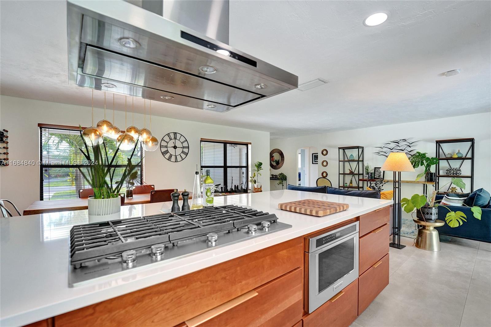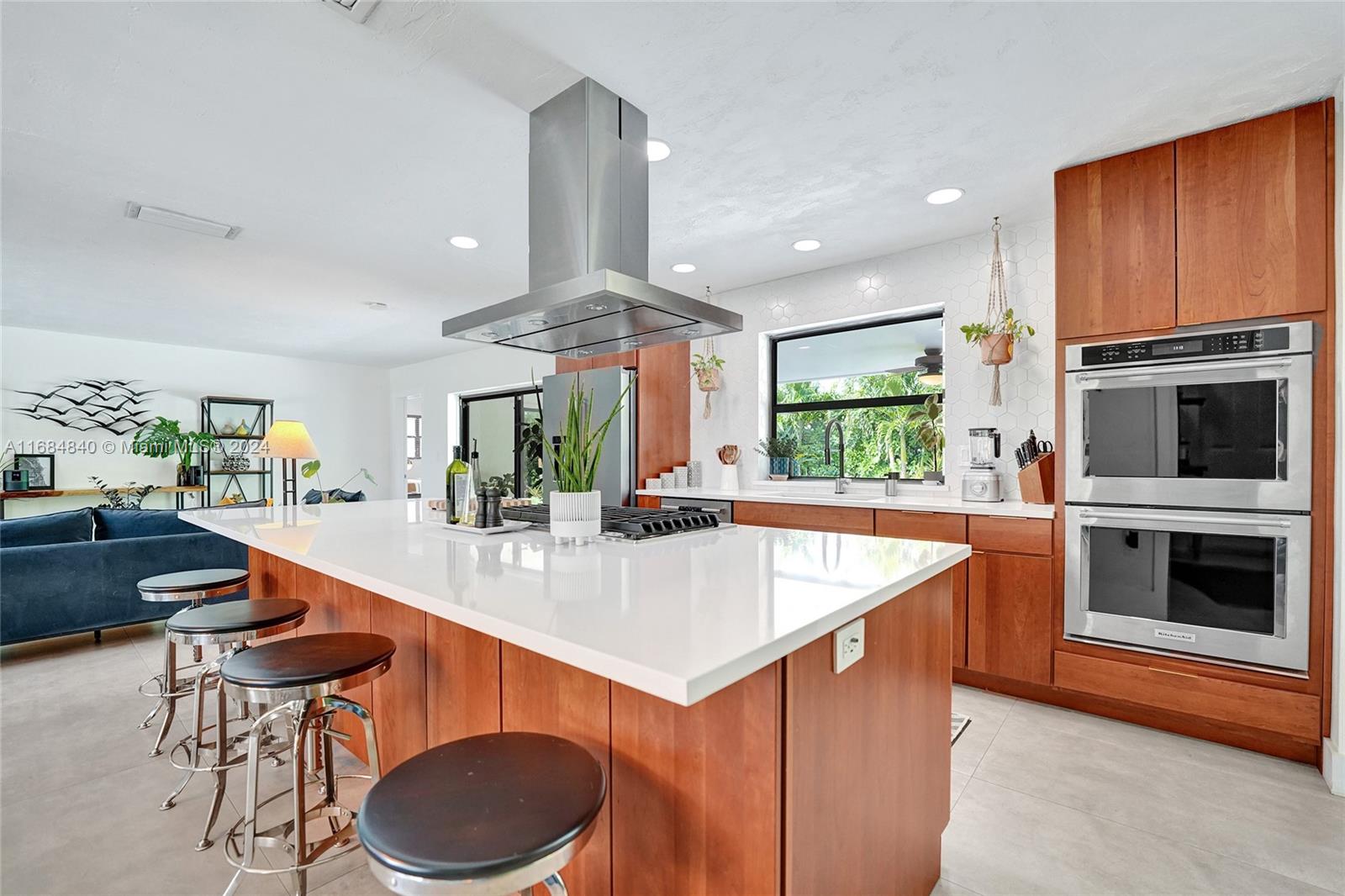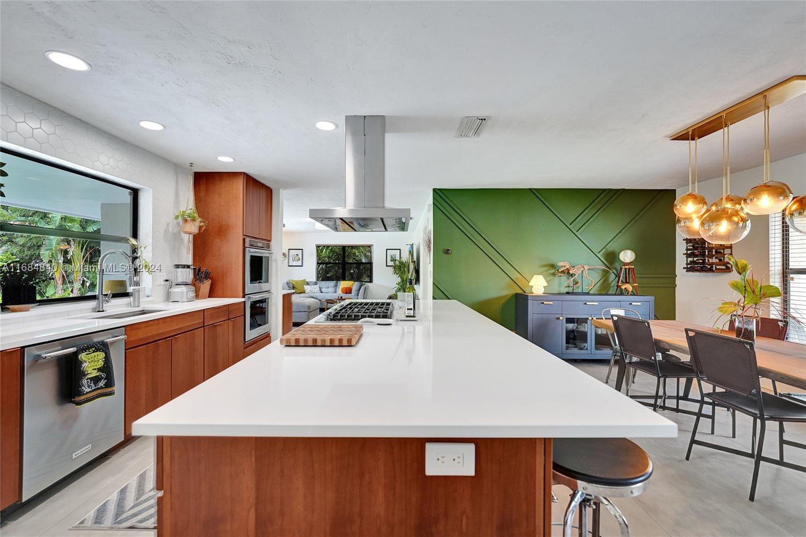 Welcome to this beautifully updated Pembroke Pines home! With a bright, open layout and high-end finishes, this home is a true gem. The chef’s kitchen showcases a large cooking island with a gas cooktop, stainless steel hood, and seating for four, along with a double wall oven, modern wood cabinets, and white stone countertops—perfect for entertaining. The spacious primary suite includes an updated en-suite bath, while additional bedrooms offer great space and storage. Outside, enjoy a private backyard ideal for gatherings. Conveniently located near top-rated schools, parks, shopping, and highways.
