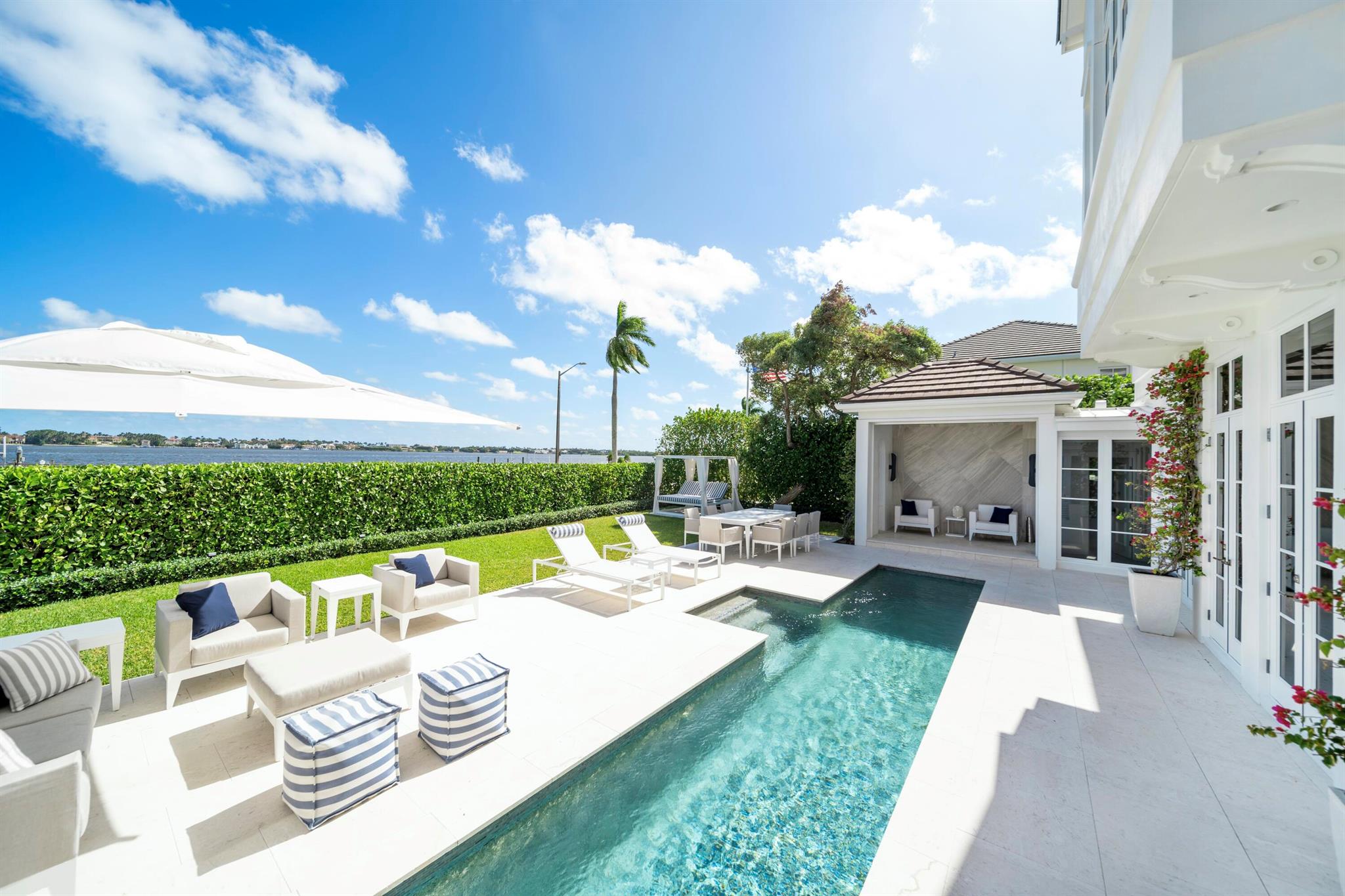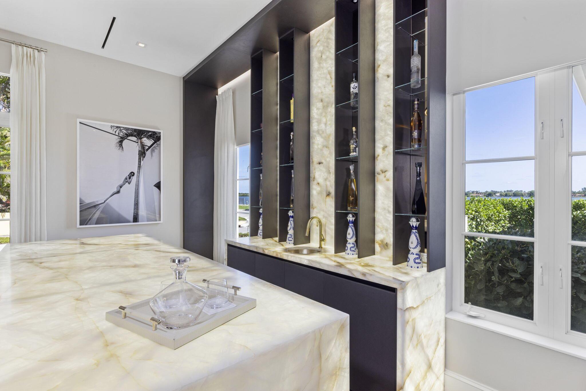 IMPRESSIVE 100-FT WATERFRONT ESTATE INCLUDING ITS OWN PRIVATE DOCK & BOAT LIFT. Newly renovated with every luxury for the discerning buyer, this 5-bed home offers breathtaking views of Billionaires Row, widest part of the Intracoastal Waterway, from all main rooms. Featuring 11-ft ceilings, 6,000 total square feet of meticulously redesigned living space, elevator, and a desirable semi-attached guest house. The very impressive waterfront bar/lounge features LED backlit crystalline quartzite a stunning brass sink, ice maker, and custom cabinetry, all inspired by the Bulgari Hotel in Paris. A sprawling primary suite complete with oversized dual dressing rooms with Italkraft closets and custom cabinetry. This home has an abundance of natural light, high-end finishes, and every...