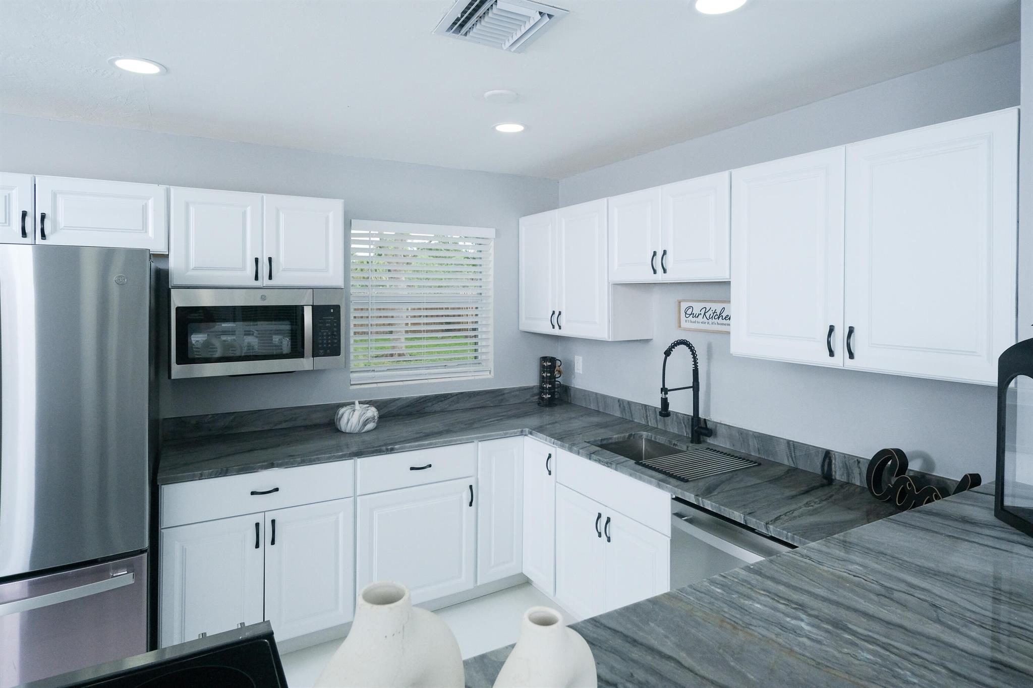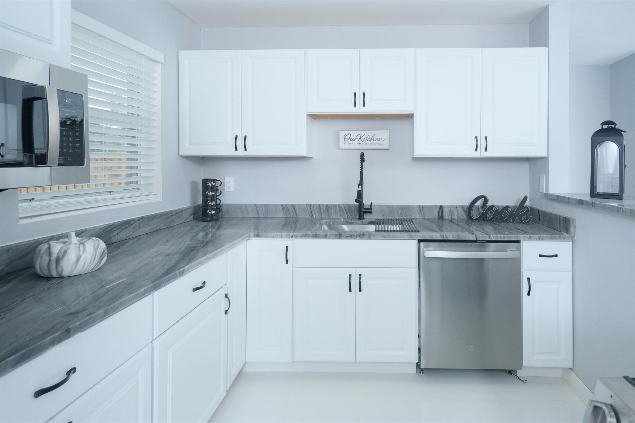 light and bright single family renovated home .4 bedrooms ,gleaming tile floors, natural stone kitchen with breakfast bar. New stainless steel appliances with touchless faucet. This home also features a stone driveway with a large back yard with a fish pond. Newer roof and ac about 5 years old. Nice quite street with no HOA .This is the one you have been looking for!!
