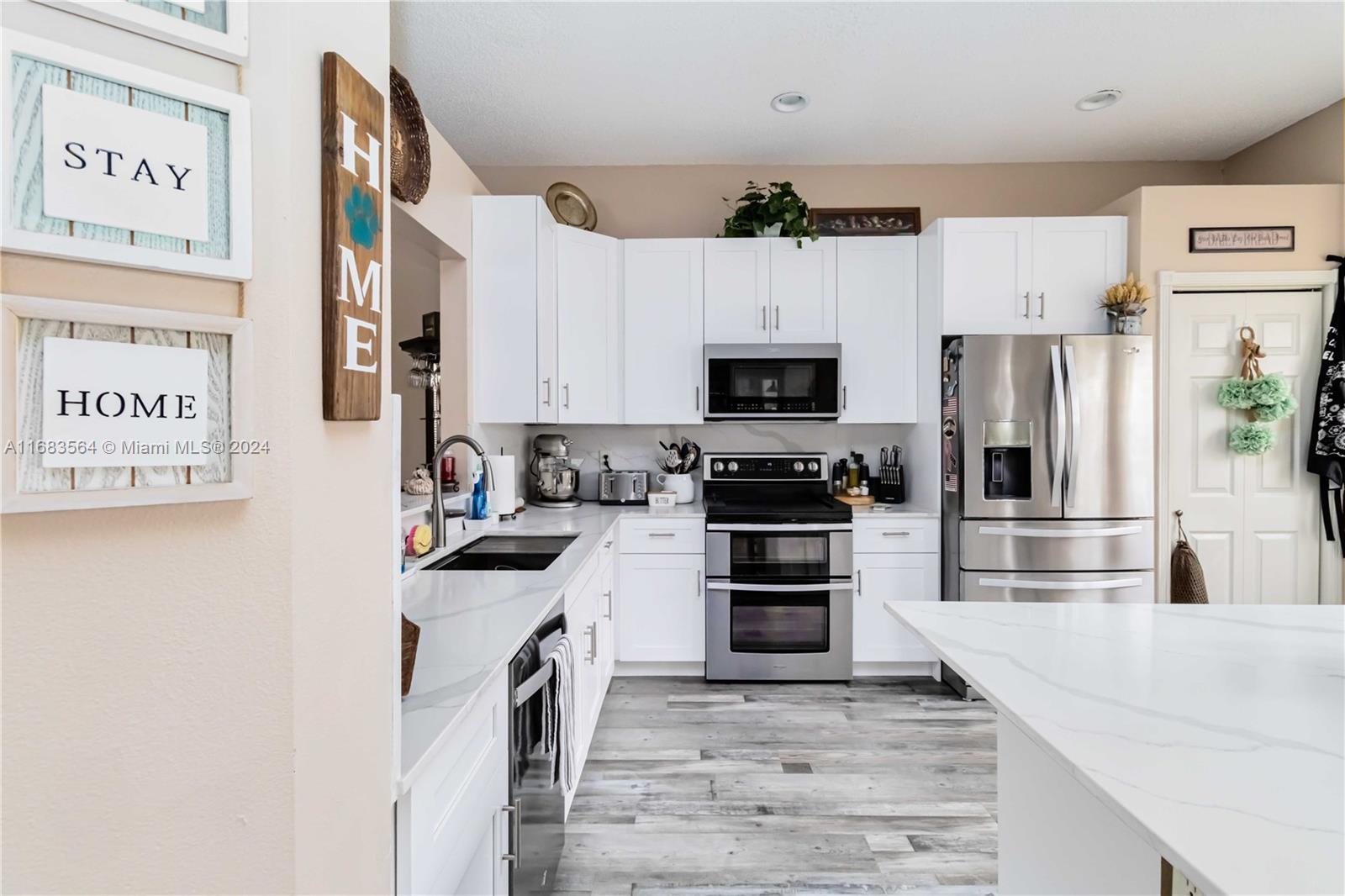 Welcome HOME! Single story house with tons of upgrades and add ups: paradise to entertain lake front patio, pool w/heater and saline system, travertine tiles, sun-setter roll out awning, weatherproof speakers, full 185 mph open view screen, accordion hurricane shutters, fenced in area for dogs, generator (whole house hard wire), 240 VAC EV charger, garage floor weather-tech & storage ceiling racks, ring cameras. Walking inside the kitchen with new waterproofs floors, new cabinets and state of the art stainless steal appliances, cozy living area with in walls speaker system, master and 2nd. bedroom with new floor, 5 years upgrade AC. LOW monthly association fee! Strategically located near highway and restaurants, shops and entertainment. Make your appointment ASAP before is gone!