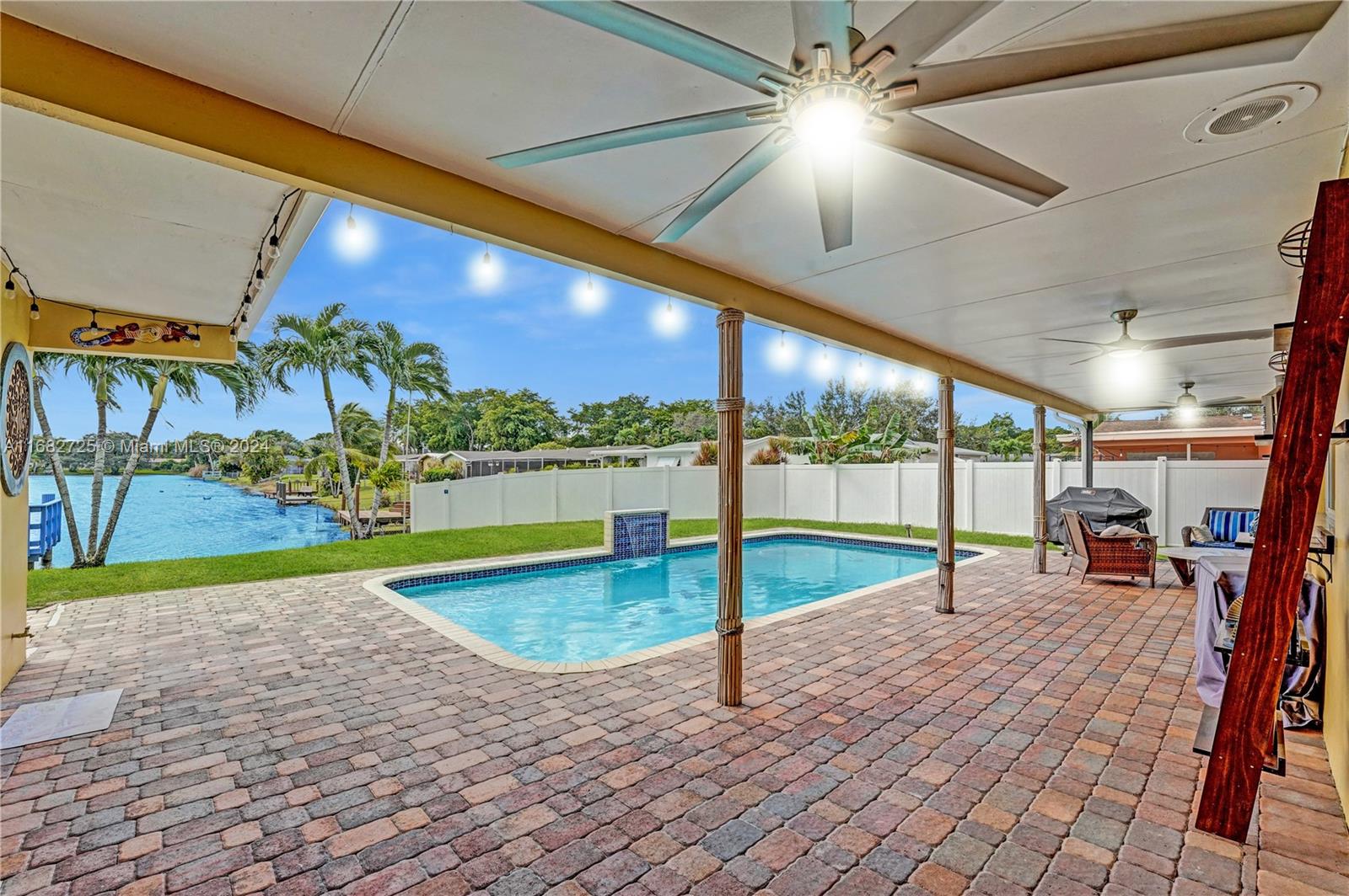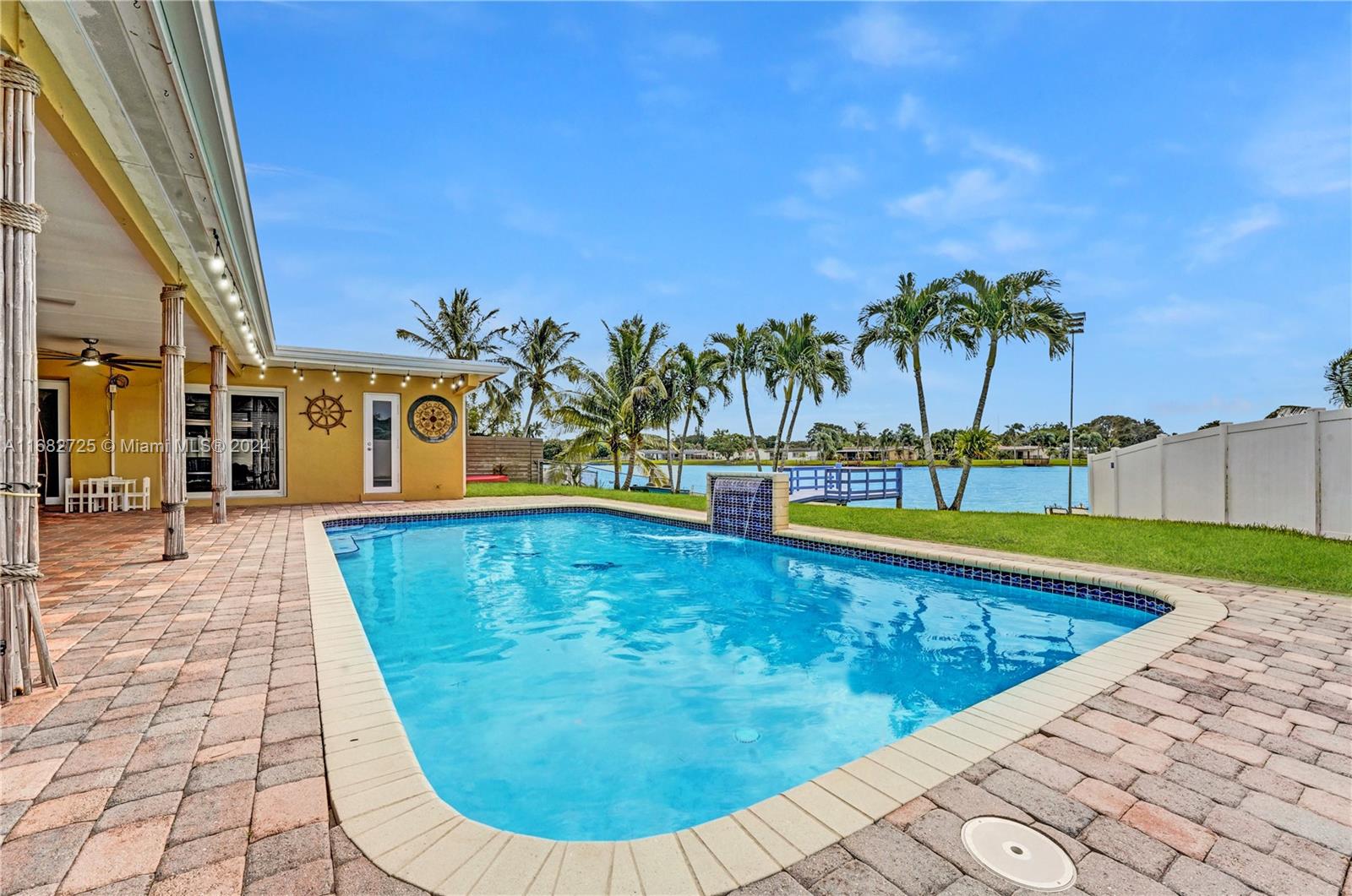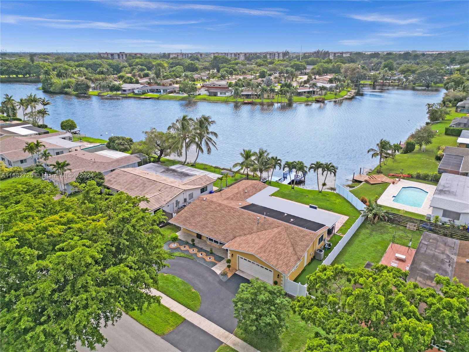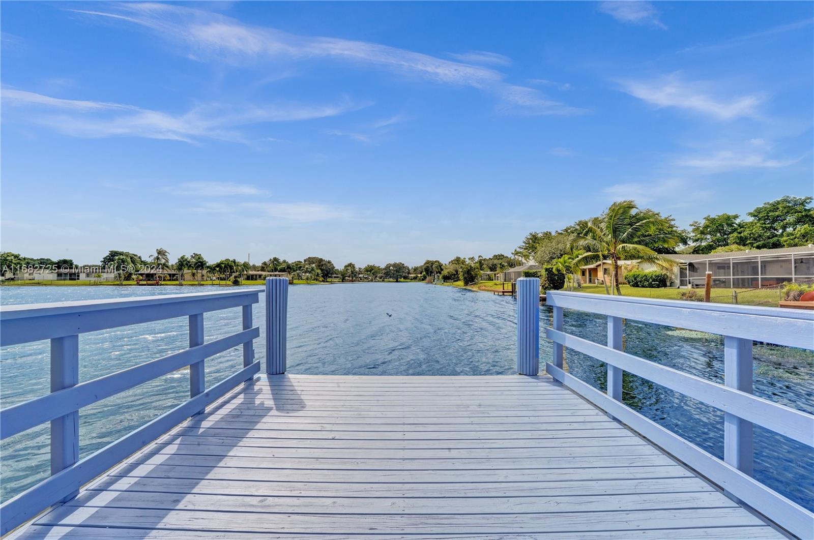If your heart longs for a gorgeously remodeled move-in ready home, your search ends here. Designer touches throughout create an enchanting ambiance, starting in the generously sized kitchen featuring gas appliances (range 2023, refrig 2022) and kitchen island. Enjoy a new roof (Dec 2020), fresh paint (2024), tastefully remodeled baths, impact windows & doors, new AC (2022) and sprinkler pump (2021). As you step outside, the true magic of this property unfolds & provides the serenity and space you've always envisioned while the saltwater pool w/new pump (2023) & dock overlooking the lake invite you to unwind. With an extended covered patio perfect for BBQ (w/natural gas hookup), large fenced (2020) yard & circular driveway (2022) for additional parking, this home is ready for entertaining!