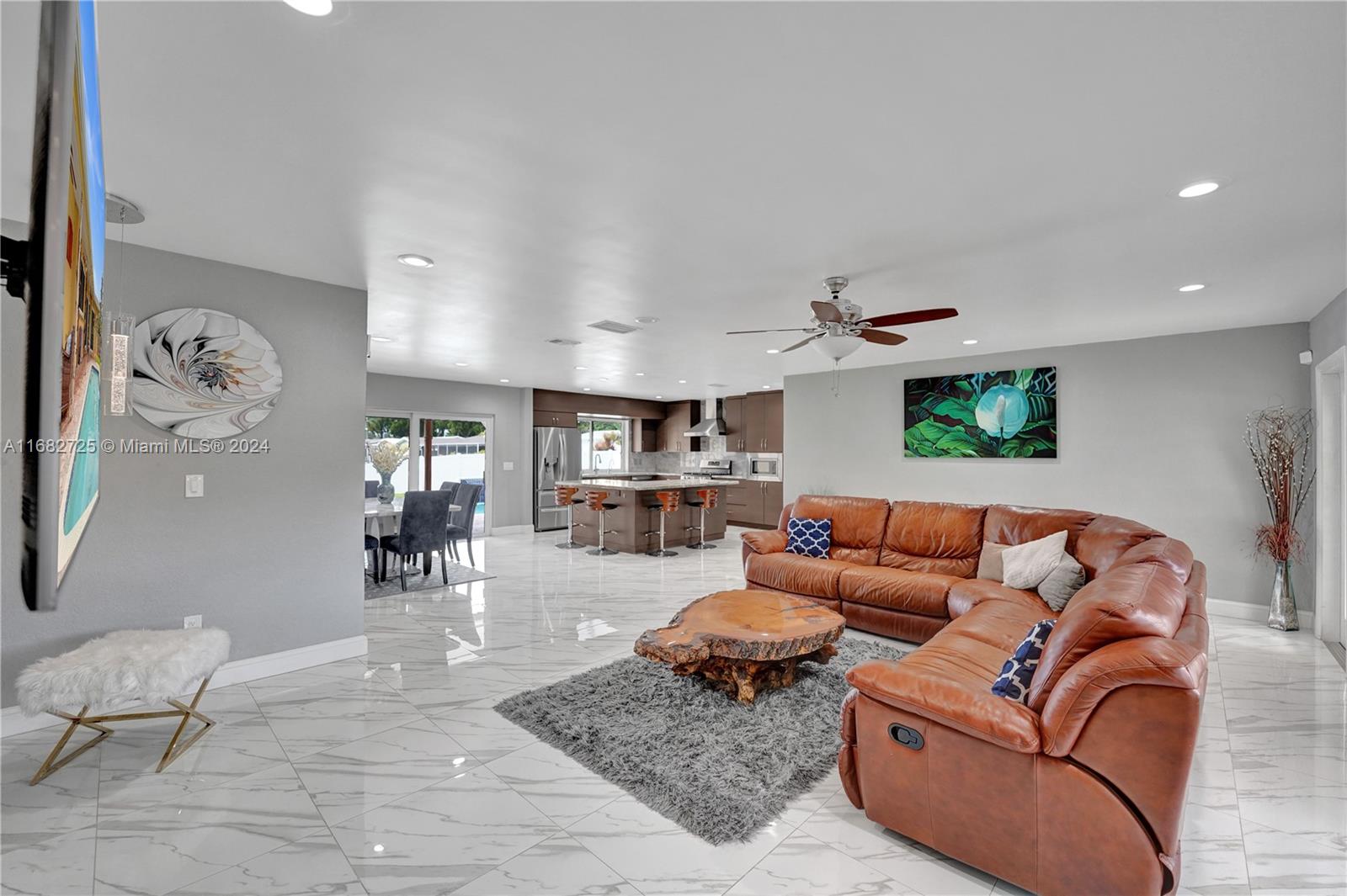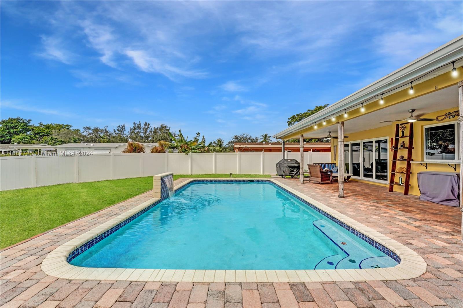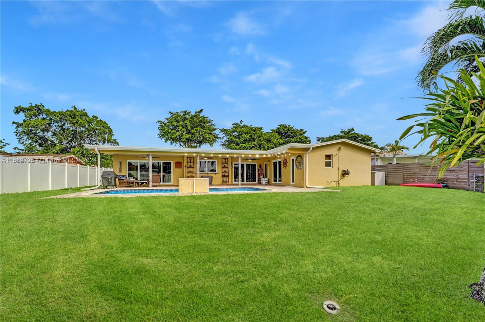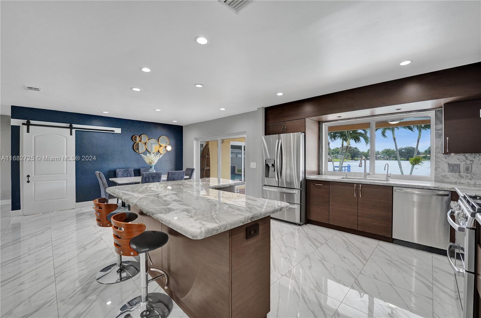 If your heart longs for a gorgeously remodeled move-in ready home, your search ends here. Designer touches throughout create an enchanting ambiance, starting in the generously sized kitchen featuring gas appliances (range 2023, refrig 2022) and kitchen island. Enjoy a new roof (Dec 2020), fresh paint (2024), tastefully remodeled baths, impact windows & doors, new AC (2022) and sprinkler pump (2021). As you step outside, the true magic of this property unfolds & provides the serenity and space you've always envisioned while the saltwater pool w/new pump (2023) & dock overlooking the lake invite you to unwind. With an extended covered patio perfect for BBQ (w/natural gas hookup), large fenced (2020) yard & circular driveway (2022) for additional parking, this home is ready for entertaining!