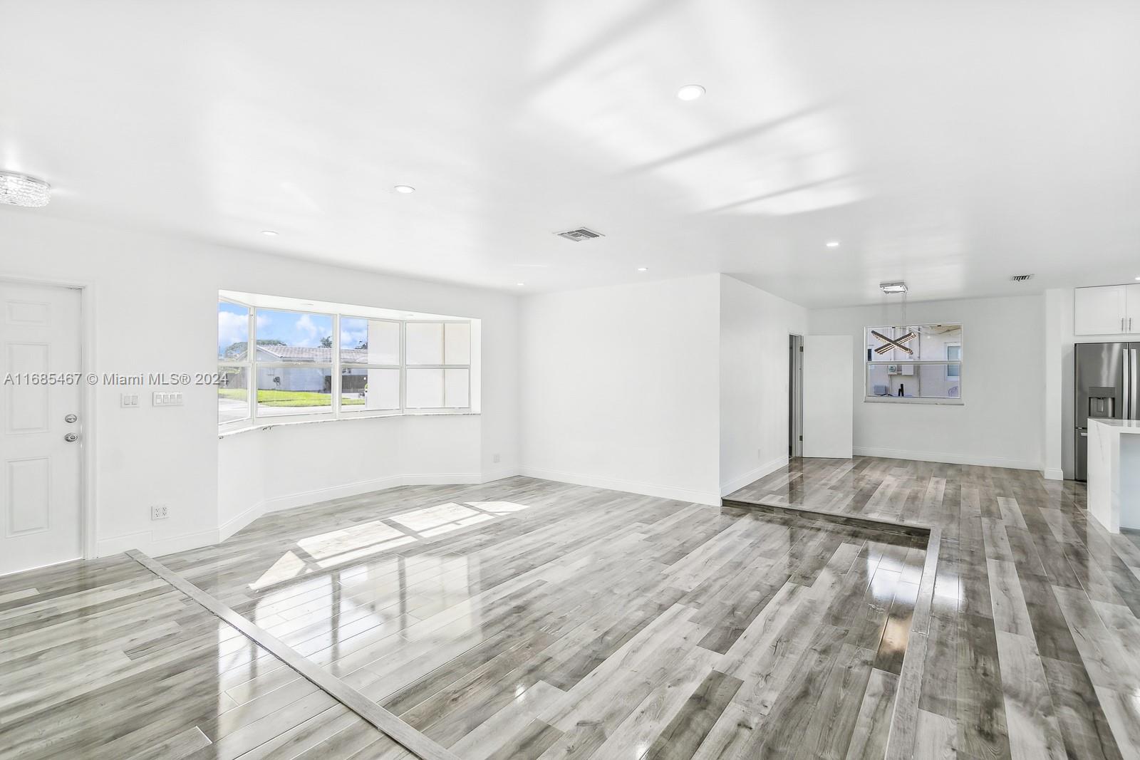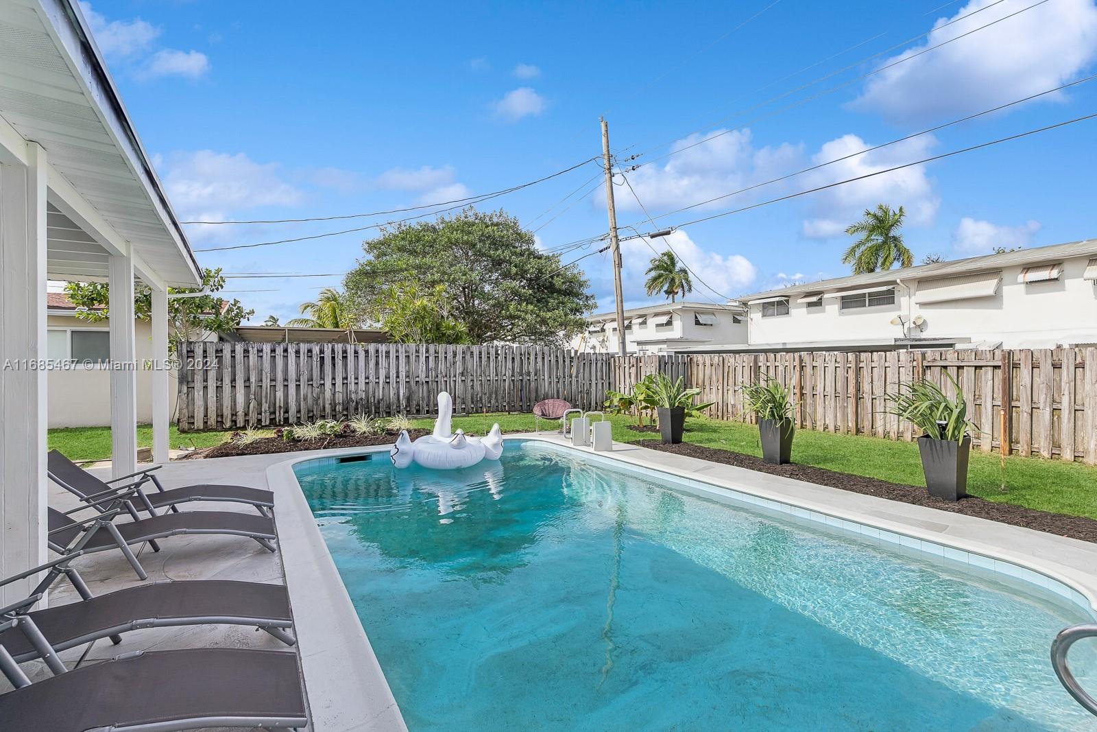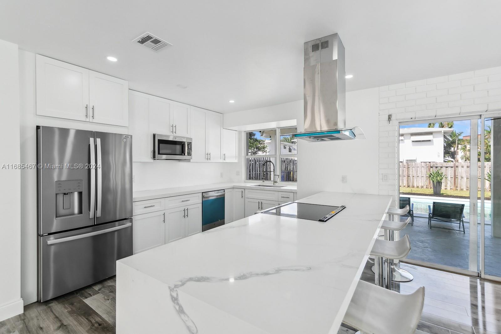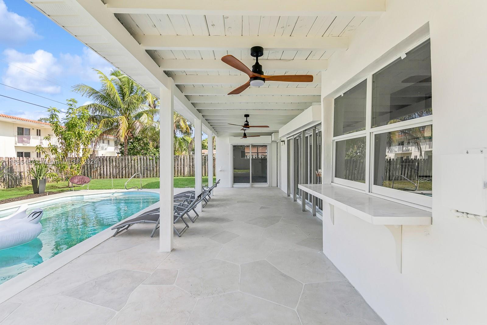 MAJOR PRICE IMPROVEMENT! Welcome to Paradise! This fully remodeled Hollywood Hills home offers prime luxury living. Highlights include recessed lighting, a stunning pool deck with European sculpted flooring, and a low-maintenance saltwater pool. Inside, enjoy new Australian piano-finish AC4 flooring, a 40-year tile roof, and impact windows and doors for security and efficiency. The open-concept kitchen features Calacatta quartz countertops, a 130" waterfall peninsula, and new stainless steel GE appliances. The updated two-car garage includes recessed lighting. The primary suite boasts an en suite bath and pool deck access. Bathrooms feature mood mirror lighting, a Jacuzzi tub, and Calacatta quartz vanities. Newer HVAC adds comfort. Your Hollywood Hills dream home awaits!