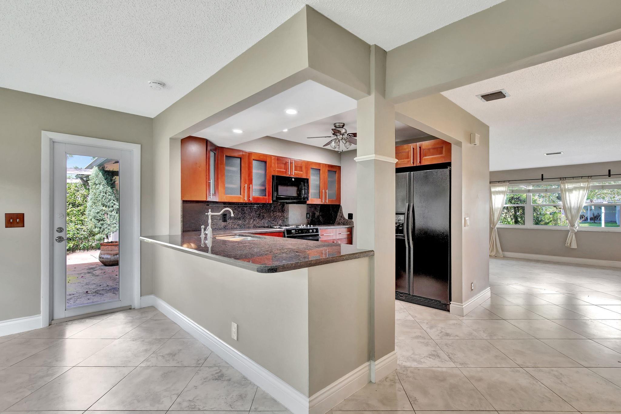 Discover this beautifully maintained family home featuring stunning tile floors throughout the living areas. The spacious family room offers a perfect retreat for relaxation, showcasing views of your private backyard oasis, complete with a charming garden and inviting patio. A beautifully upgraded kitchen boasts granite countertops, a new dishwasher, and a breakfast bar that overlooks the family room, enhanced by a custom-built wood shelf. The expansive master bedroom includes a stylishly upgraded ensuite bathroom. The property is nicely landscaped with exotic foliage. It is situated within a community known for its excellent schools and parks. Inside laundry room, Impact windows and doors. The seller is willing to contribute towards the cost of a new roof if necessary.