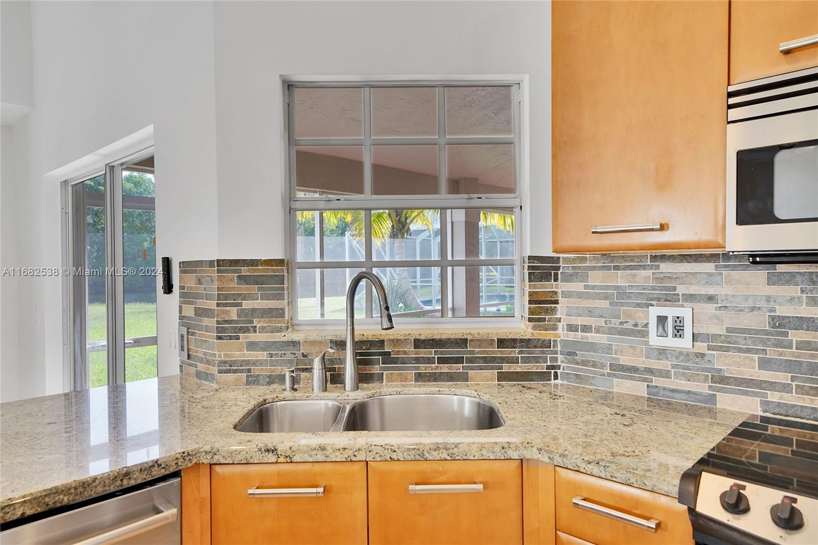 Amazing opportunity. Completely turnkey home on an oversized, waterfront lot in esteemed The Lakes in Weston. Very rarely available 4+2.5 spanning nearly 2,400 sf and nestled on a 12,000+ sf lot. The Lakes is fully gated w wonderful amenities including a sprawling pool deck & more. The home is perfectly located on a quiet cul-de-sac, ideal for riding bikes & playing outside, and sports a 2-car garage, brand new roof, A/C, washer & dryer. The floorplan is ideal, featuring a wide open granite & stainless steel kitchen & vaulted ceilings for a wonderful ambiance and the outside is incredible w an exquisite covered patio, tailor-made for bbq's, & a sprawling back yard w room for a pool overlooking the canal. Weston hits every note w A+ schools and world-class dining and shopping within minutes