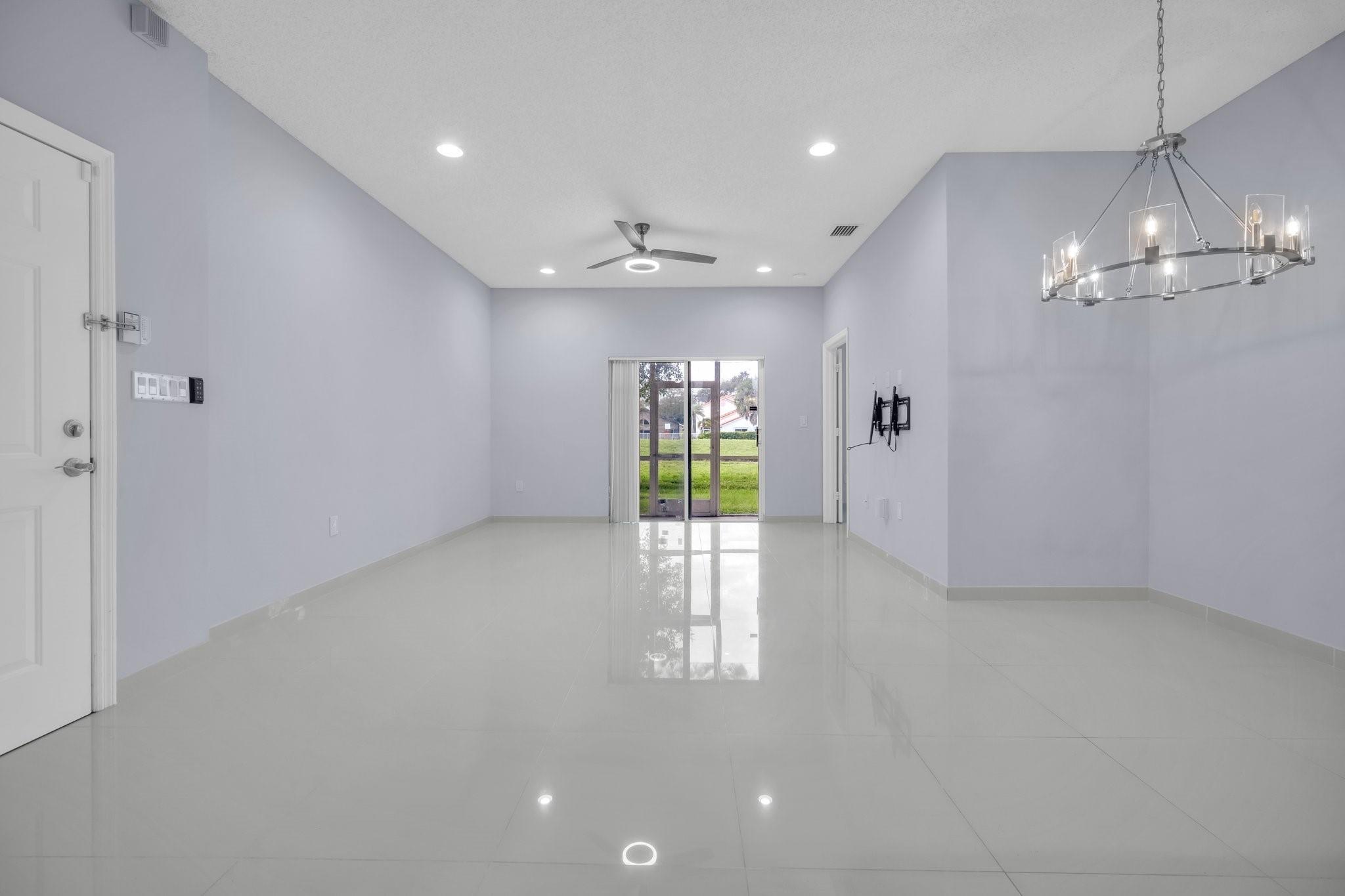 Updated 3 bedroom, 2 bath, 1 car garage, corner unit in the private gated community of Crestwood at Carolina. Completely repainted with new tile flooring throughout the open-concept living space. The refinished kitchen has new countertops, white cabinets, and new stainless steel appliances. This home is modern with Wifi enabled Nest thermostat and Ring security camera/doorbell with wireless mobile chime. Spacious primary bedroom with his and hers closets. Full size washer and dryer in the unit. Covered and screened rear patio overlooking the golf course area. Nice pool is only steps away. Low HOA and NO APPROVAL PROCESS.