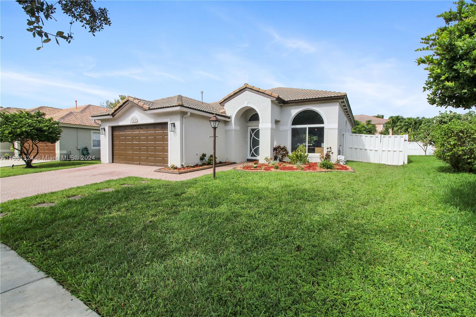 Highly desirable Pembroke Falls 3-bedroom, 2.5-bath home with a 2-car garage. Features stacked bedrooms with high ceilings throughout. Remodel in 2021, Tile floors and a beautiful kitchen/family room area, stainless steel appliances. Recently updated A/C 2023. **Impact windows 2022.** Enjoy a spacious backyard, PVC fence and lush landscaping. Community amenities include a pool, clubhouse, tennis courts, 24/7 security, and fully manned gates. HOA fee covers high-speed internet, cable, and security. Nearby are excellent Pembroke Pines schools, Pembroke Gardens, and convenient access to I-75 and Flamingo Road. SELLER MOTIVATED...