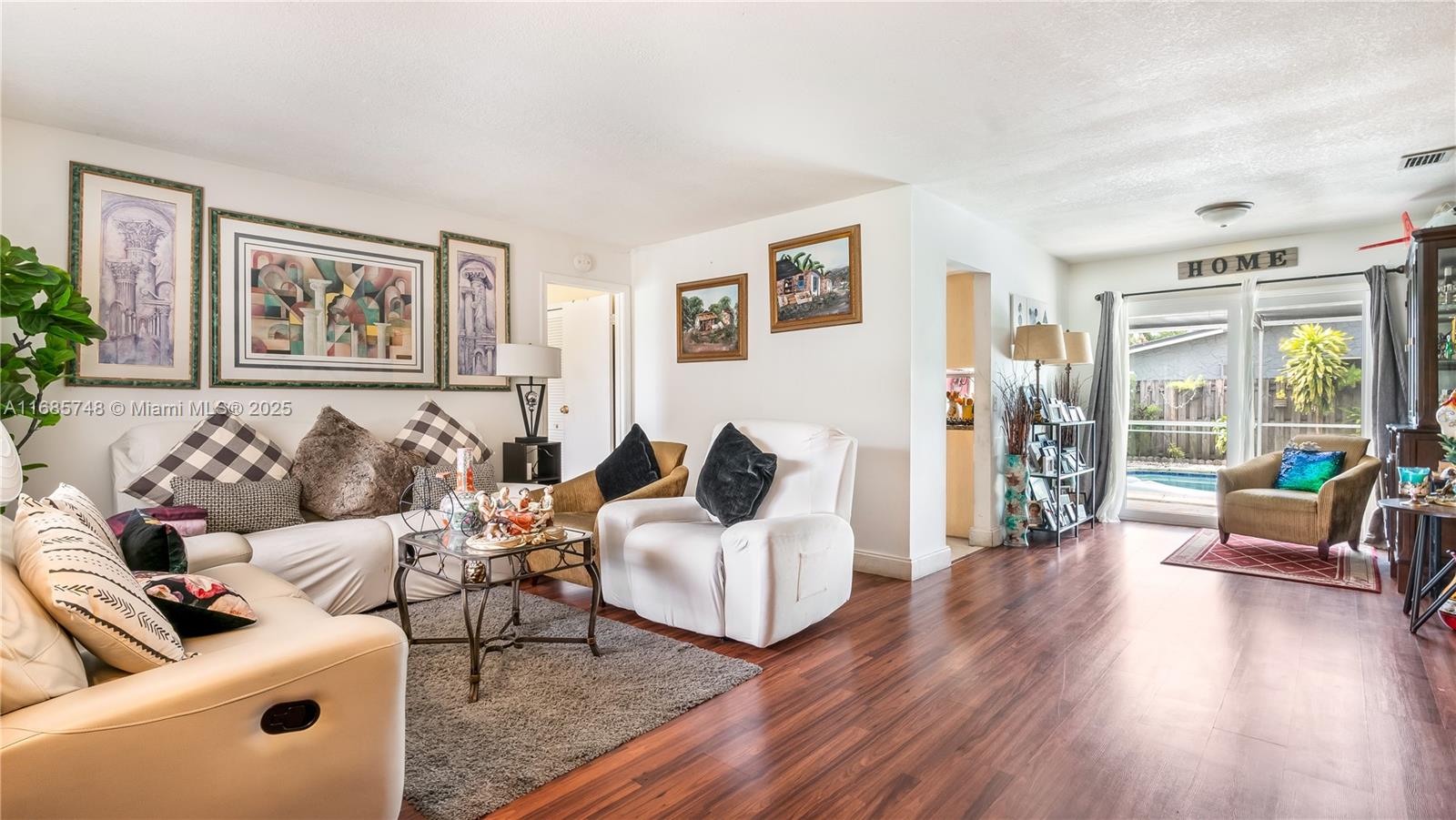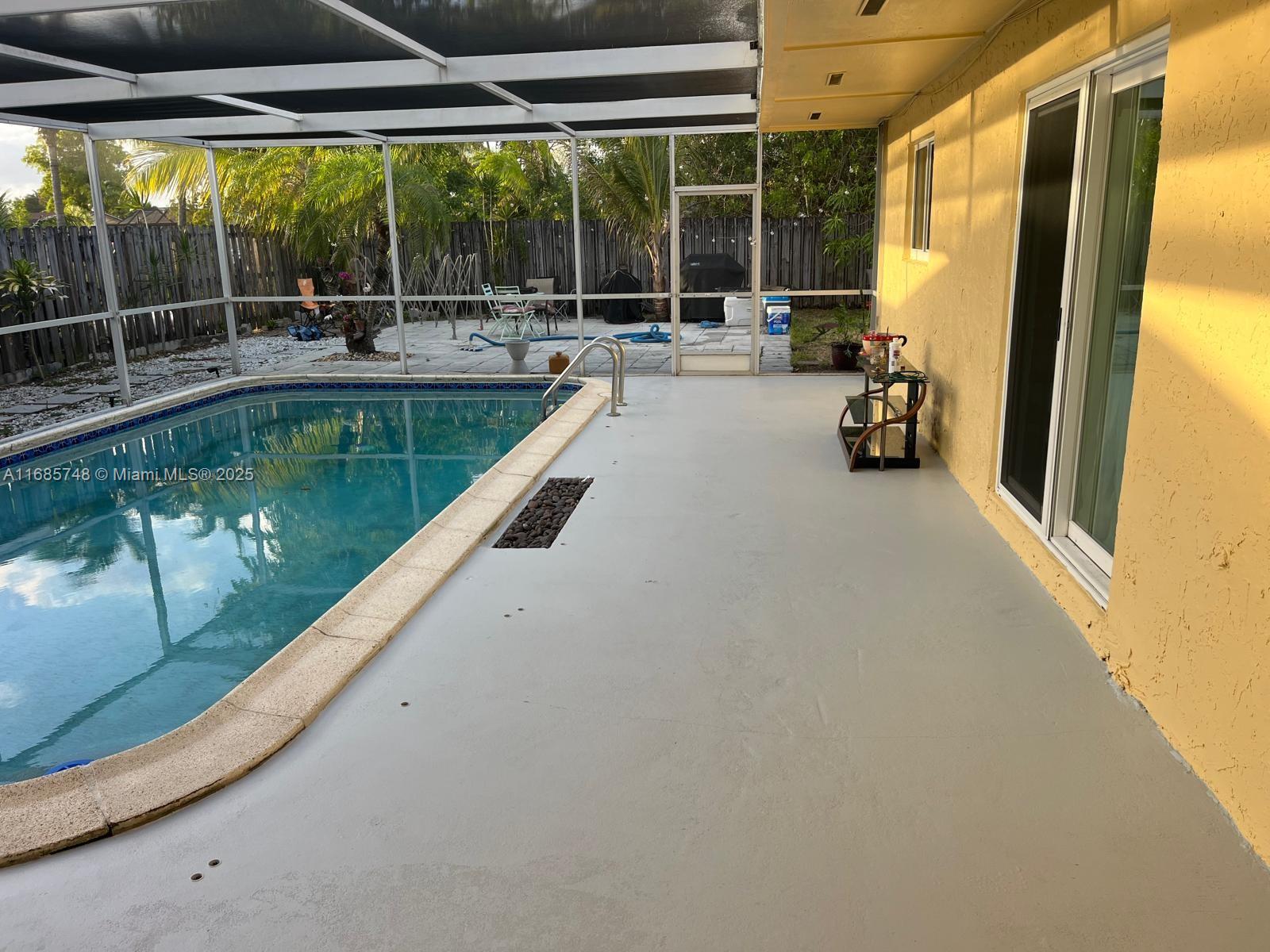 This charming 3-bedroom, 2-bathroom home offers a unique bonus with a converted garage, complete with AC, perfect for an extra room or office space. offers ample outdoor space, and boasts a refreshing pool, all fully enclosed with a privacy fence. This home combines spacious living with practical upgrades, making it a rare find for those seeking style and functionality. The house has a gas stove and water heater—split plan for more privacy. THE SELLER HAS AN FHA LOAN WITH A VERY LOW INTEREST RATE OF 3.9% WHICH CAN BE ASSUMED BY THE BUYER. CALL ME DETAILS IMPACT WINDOWS. ROOF IS ONLY 5 YEARS OLD. HUGE CORNER LOT!