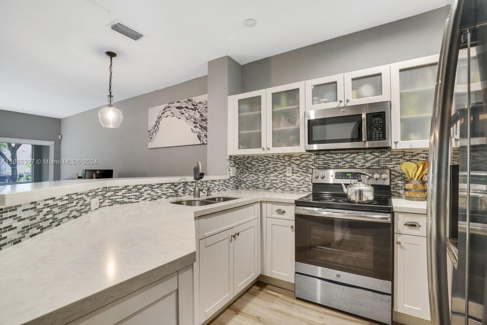 Welcome to the Gem of the GATED community of Pelican Pointe! All 2.5 bathrooms are 2024 Stunning remodels with Five Star Resort Styles. NEWER Flooring. Kitchen upgrades in 2017 include SS Appliances, Quartz Countertops, Frosted Glass Cupboards SS Sink and Tile Backsplash. 2Bd/2.5 bath and a 1 Car GARAGE! IMPACT windows on the second floor. In addition, this townhome is near EVERYTHING Pembroke Pines has to offer. Close by to shopping, restaurants, schools and hospital. Don't miss out!