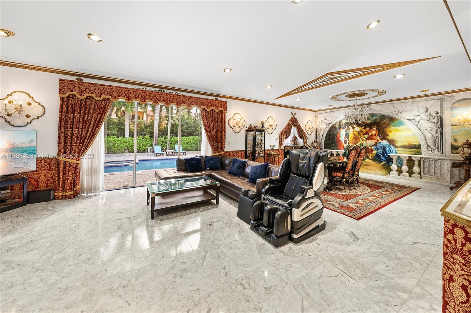 Welcome to Golden Beach, an exclusive, police-guarded community offering residents a private beach, parks, and tennis courts. This 11,250 sq ft estate is perfectly positioned across from a serene private park and charming palm tree-lined sidewalks. Inside, the home greets you with a grand foyer, impressive ceiling heights, and spacious rooms designed with an ideal family-friendly floor plan. The stunning backyard boasts a massive private pool, perfect for relaxation and entertaining. Experience the best of luxury living in prime Golden Beach.