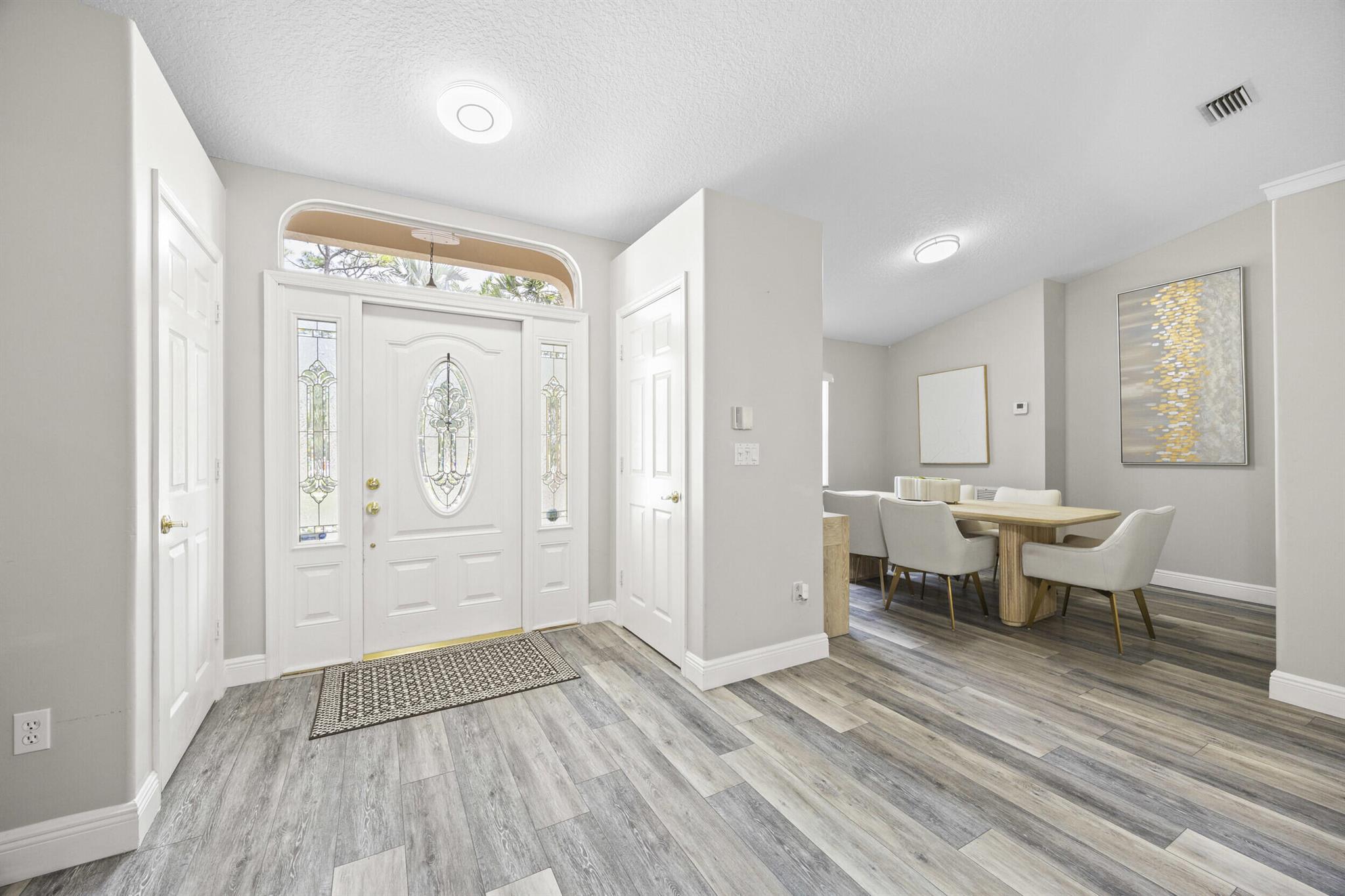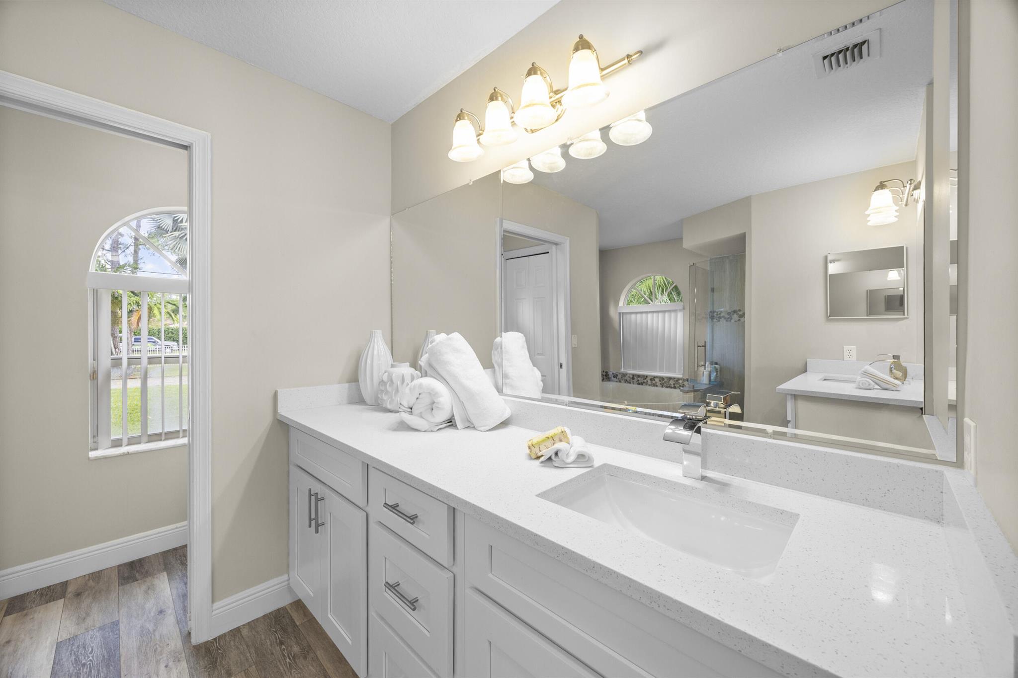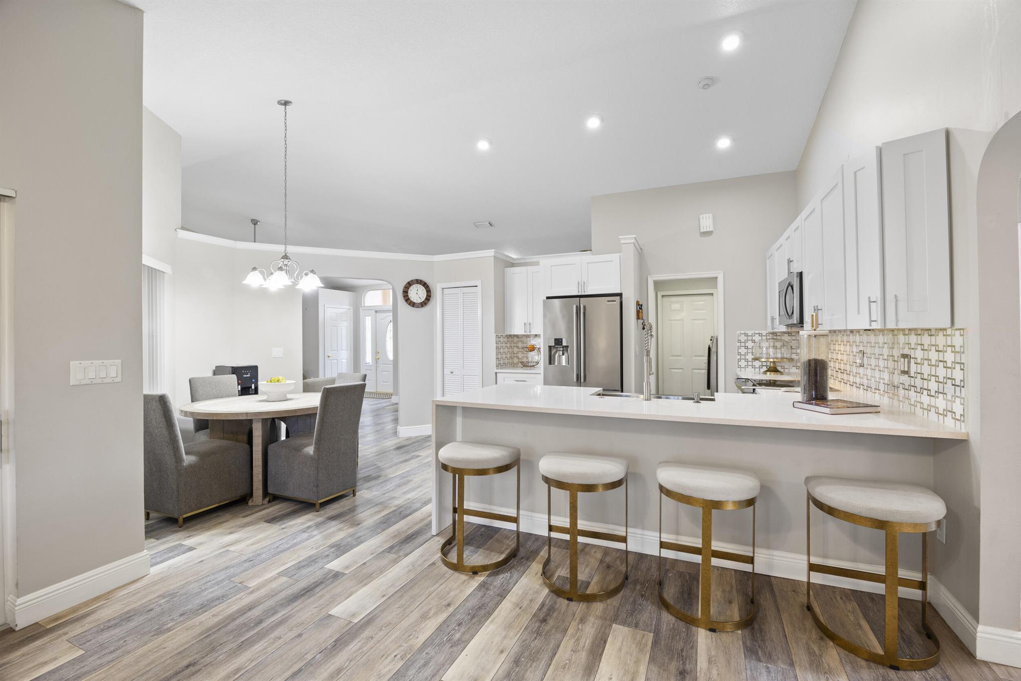 Florida Paradise! Corner lot with three driveways and three gates for easy access. Fully updated, beautiful kitchen and bathrooms. Features countertops, beautiful, backsplash, and luxury vinyl throughout the house. Stainless steel appliances, all white cabinets. Oversized patio fully permitted converted into an additional living space with AC. Fully fenced and lots of privacy! Perfect for you to park your RV, boat, camper trailer or machinery, equipped with 30 amp outlet for your RV. vaulted ceilings here shutters for all the windows and doors. Additional workshop/garage in the back of the property, it could be used as a utility shed as well.