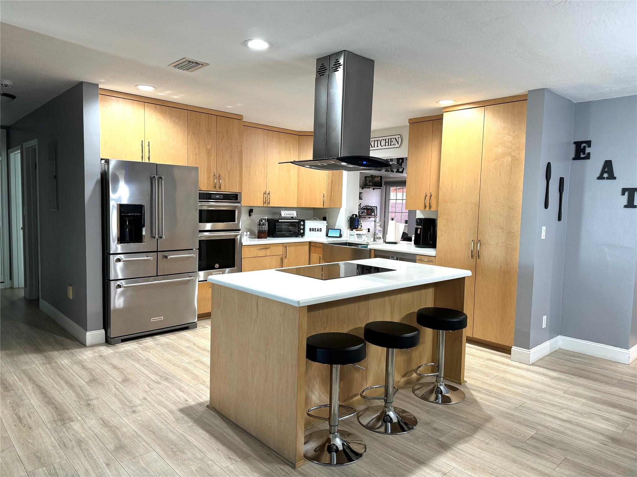 Look no further, you've found Paradise in Pembroke Pines...This 5 bedroom **NEWLY REMODELED HOME** is located on a quiet cul-de-sac in sought after "Pasadena Lakes". You'll notice the attention to detail in this open & inviting floorplan! Featuring a modern chef's kitchen, custom cabinetry, upgraded appliances, induction stove top, & large island. Spa-style bathrooms w/ sleek cabinets, multi shower jets, modern tile & LED lighting. Split bedroom plan, living room plus oversized family room, Zebra window treatments, & beautiful wood plank vinyl floors.**Tile ROOF, A/C & IMPACT WINDOWS (all in 2021)** Full 2 car garage plus a workshop. Enjoy your TURF BACKYARD w/ HEATED POOL, hot tub, large pergola, & built in BBQ/bar. Fenced yard, circular driveway & NO HOA!
