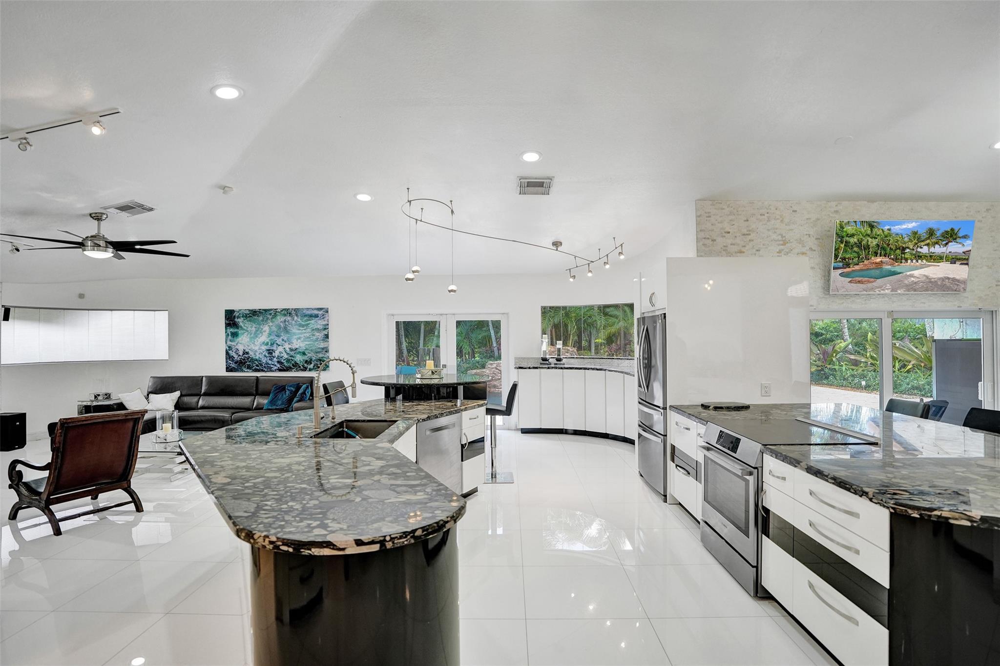 Located on one of the best cul de sac streets in the prestigious community of Plantation Acres. This updated home has High ceilings and a bright, open layout, creating a welcoming atmosphere. Walking through the front door, you can see the beautiful pool immediately. The open-concept living area seamlessly flows into a gourmet kitchen. The bedrooms and common areas have built-in closets, providing ample storage space. Outside, enjoy a private 38,768-square-foot lot with a lush backyard featuring fruit trees. The heated, saltwater pool includes a sun shelf and waterfall, is perfect for relaxation or entertaining. The driveway leads to a gated backyard with additional parking space, ideal for a boat or RV—impact doors. Don’t miss the opportunity to make this Plantation gem your own!