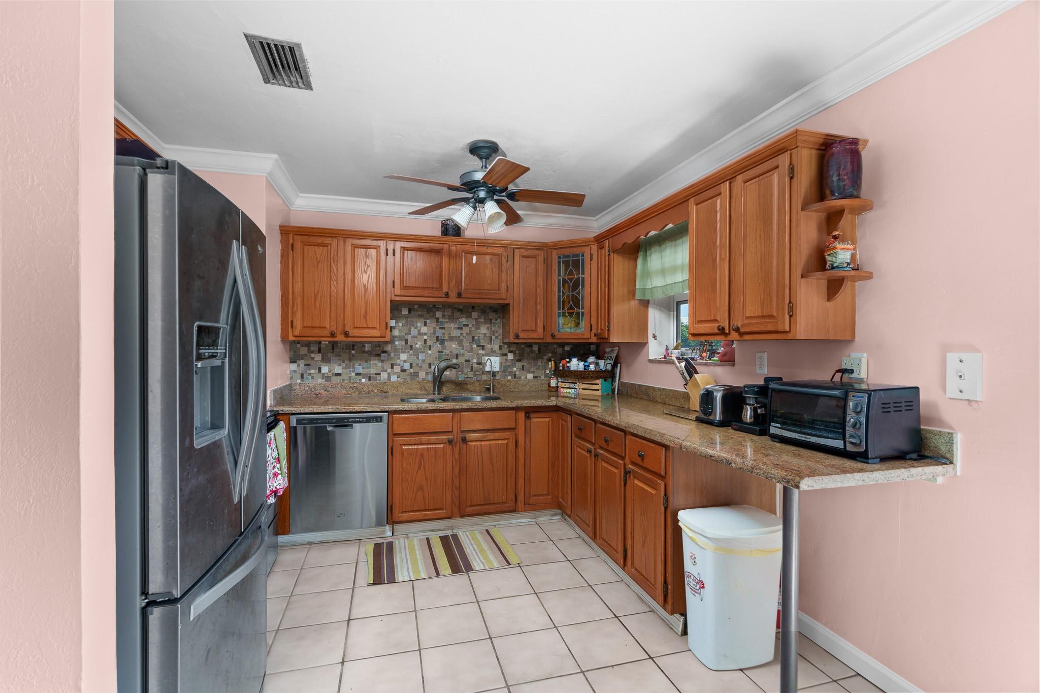Less than a mile to the beach! Affordable 3 bedroom 2 bathroom + office/den, + huge laundry/utility room + carport on a corner lot = YOUR HOME! Updated kitchen with s/s appliances, remodeled bathrooms, hurricane/impact windows, crown moulding, wood flooring in bedrooms, tile throughout living areas. Located east of Federal Hwy 1 near Atlantic AVE. Convenient to beach, shopping, and entertainment. Mango and Avocado trees. Tropical landscaping. Circle driveway. Attached carport. So much potential and lots of options to make this house your own. Easy to show with a little notice.