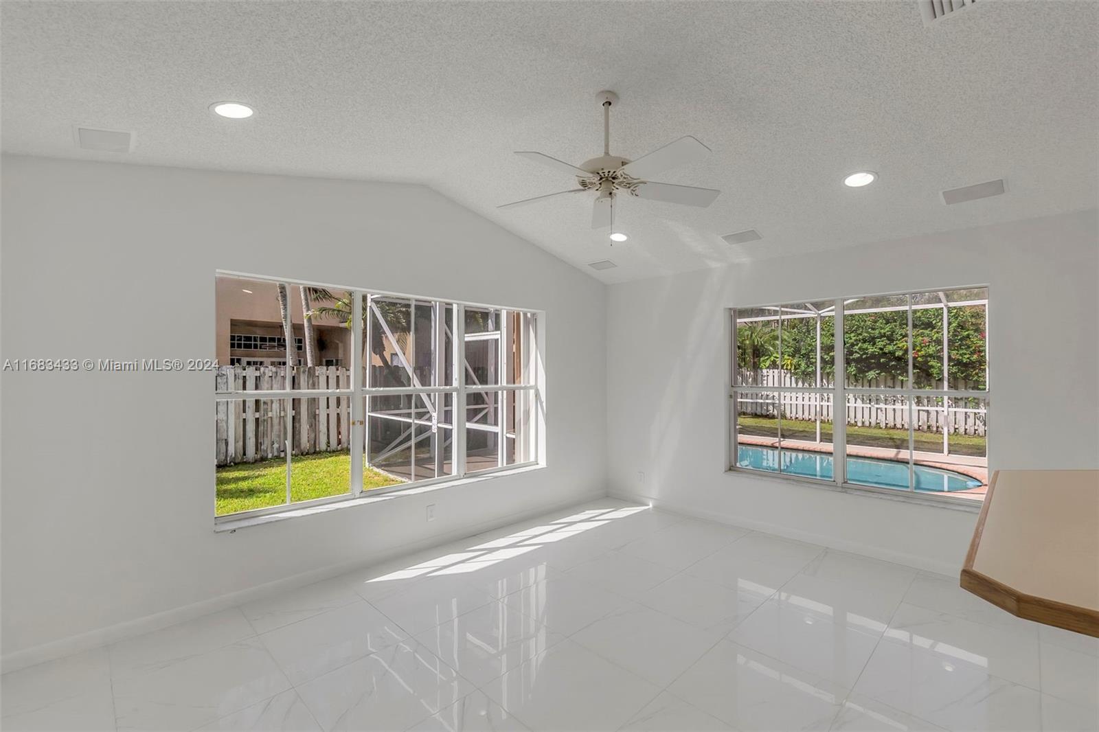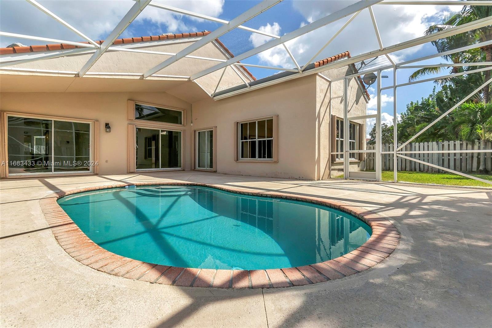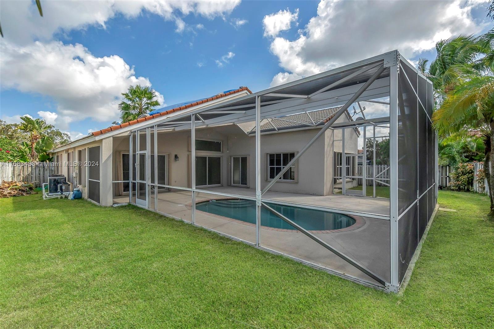 Come see the lowest priced pool home in the sought after gated North Lake community of Weston! This home features 4 ample bedrooms, 2.5 bathrooms, 2 car garage, beautiful high ceilings, modern tile flooring in the main living space with new vinyl wood flooring in the bedrooms and an open island kitchen. Showcasing a brand new black tile roof that is being installed this month! Completely storm protected with accordion shutters. Outdoors enjoy the screened-in pool in the fully enclosed private patio with tons of room for entertainment and family gatherings. Low HOA. Centrally located near major highways and lots of shopping and dining options.