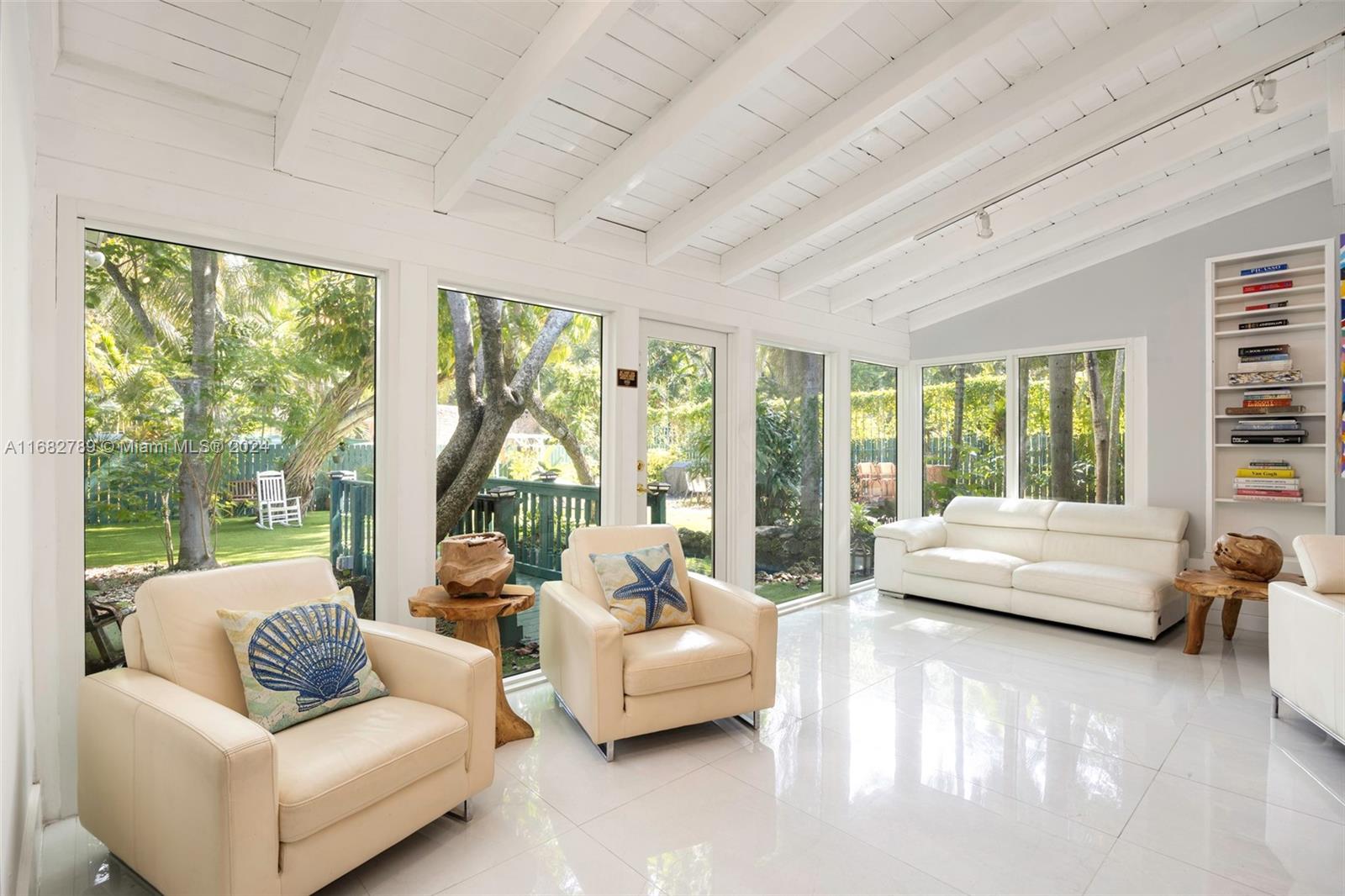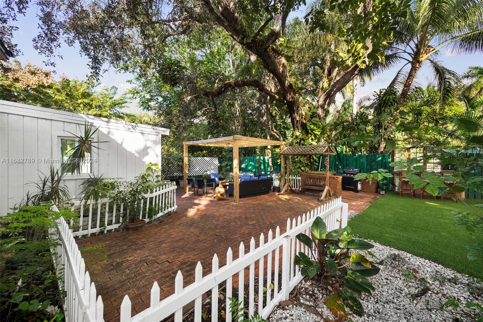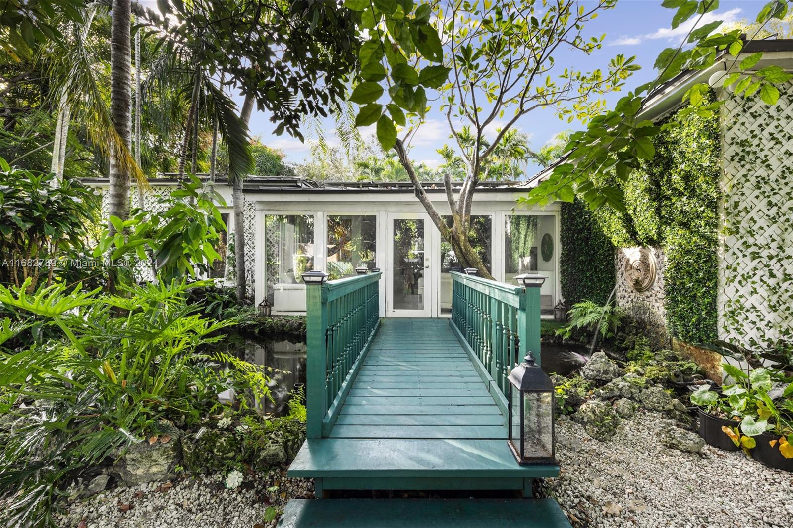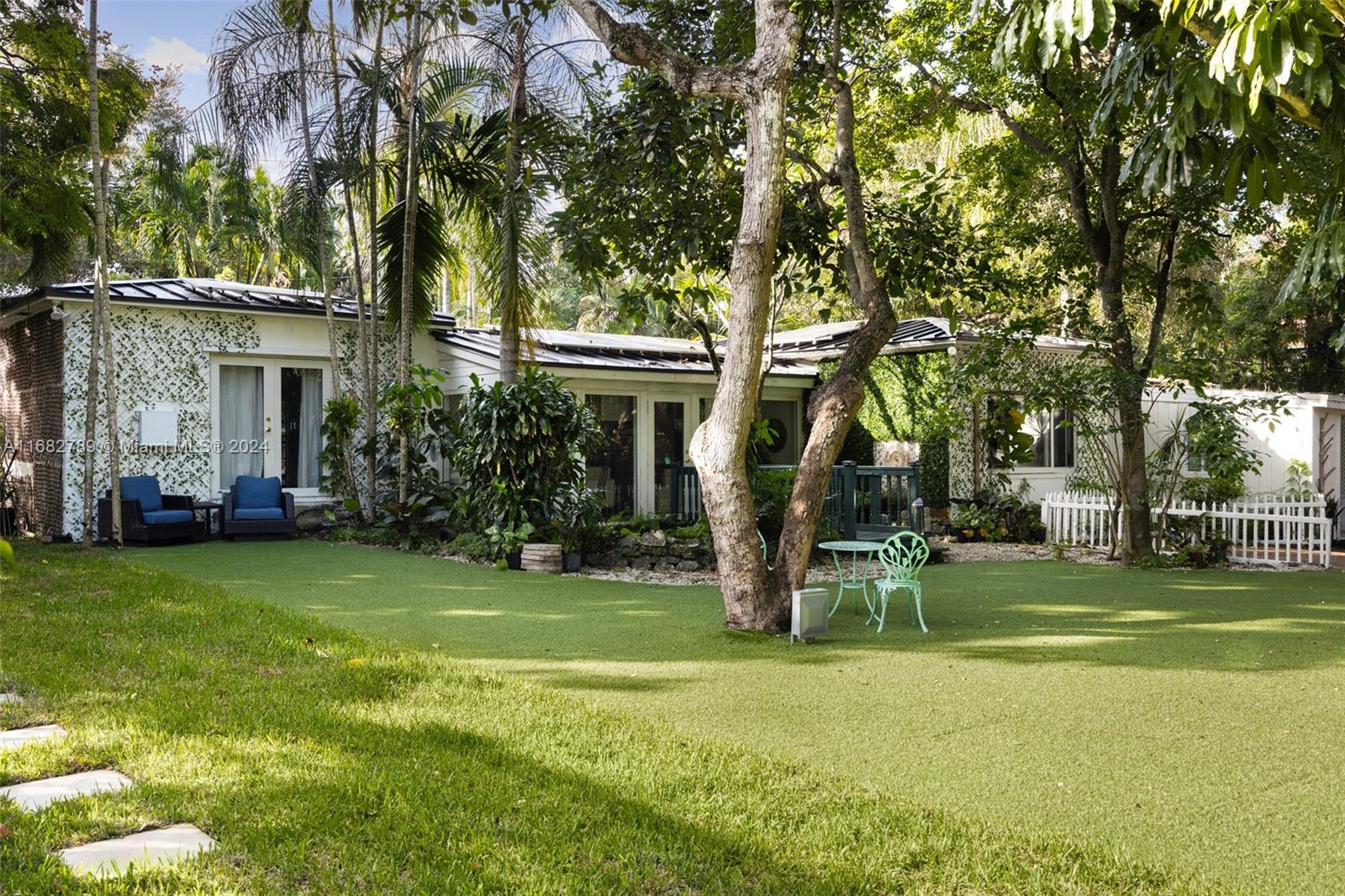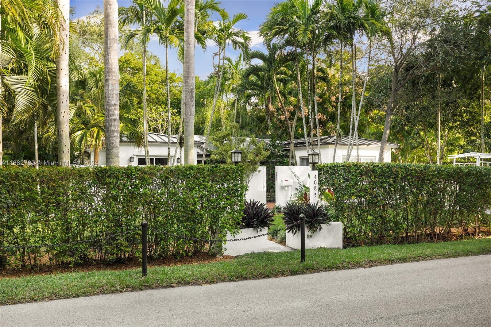 Lovely home secluded behind a tall privacy hedge in prestigious South Coconut Grove. Light-filled living spaces w/ vaulted, wood-beamed ceilings & floor-to-ceiling windows overlooking the lush, tropical garden. Updates include new roof & solar panels, impact windows/doors & renovated baths. Stunning new kitchen has quartz countertops, stainless appliances, cooking island & separate breakfast area. Expansive back yard is a lush oasis w/brick terrace, gazebo, captivating koi pond & ample space to add a pool. Close to shopping, dining & bayfront parks in the historic Grove village and just minutes to downtown, MIA & the Beaches.