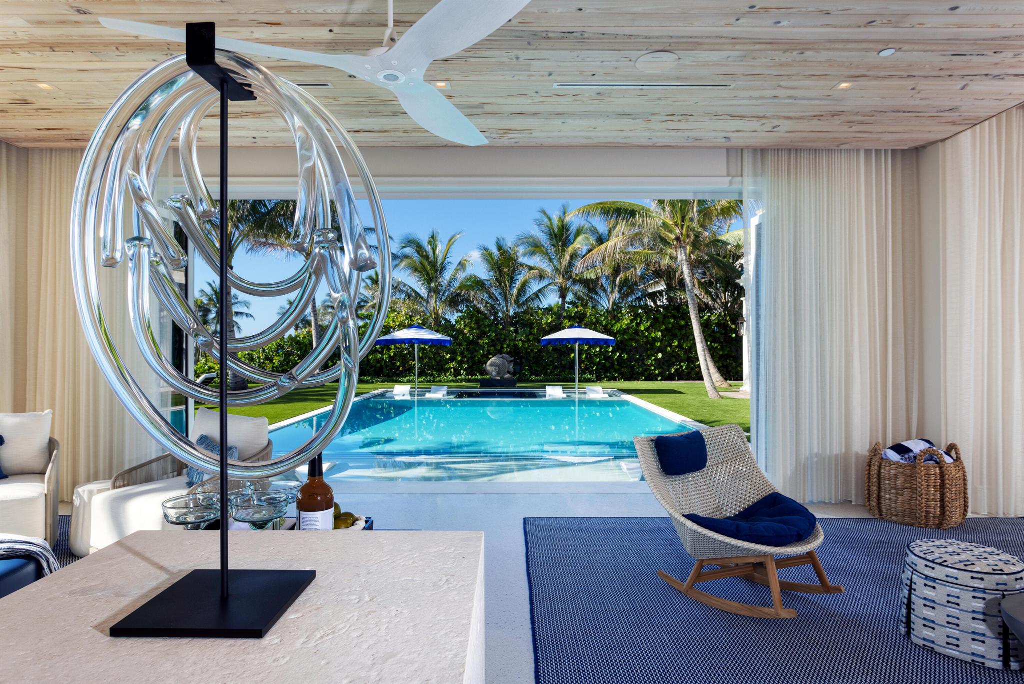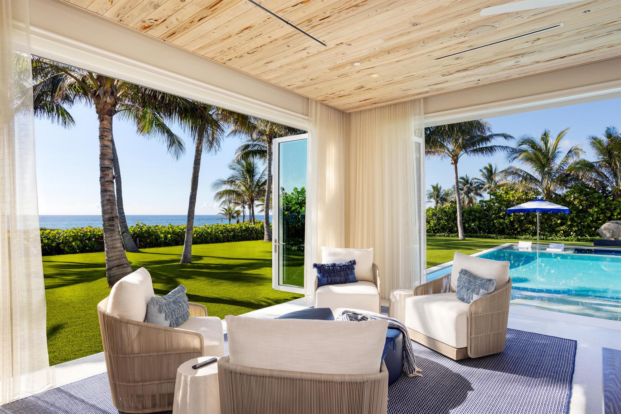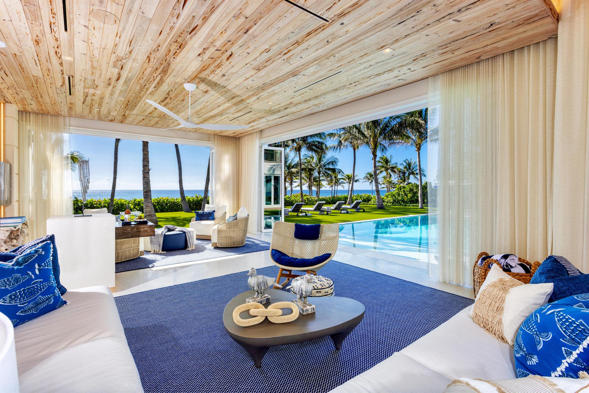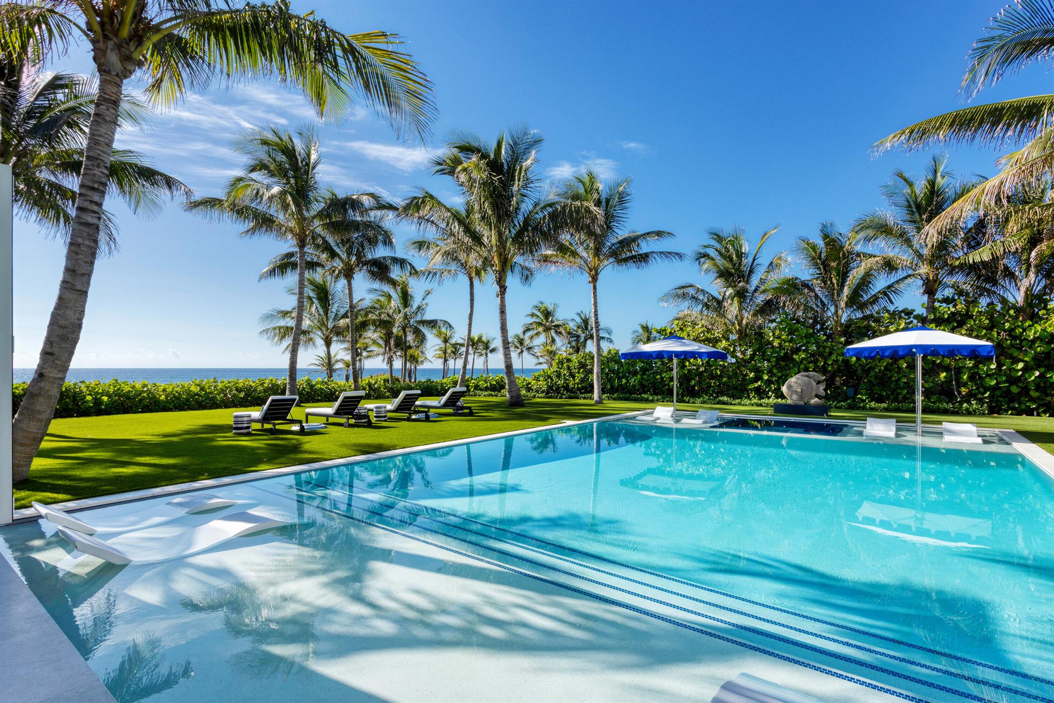Ideally situated on 120'+/- feet of direct oceanfront in the exclusive Estate District of Delray Beach, this magnificent new residence redefines ultraluxury living, gracious entertaining. Masterfully crafted by renowned builder Mark Timothy Luxury Homes, with stunning interiors by Jeffrey Strasser, this residence sets a new standard for living beautifully, with a plan that ensures personal privacy, craftsmanship and materials that assure peace of mind, amenities that provide the perfect beachfront lifestyle.