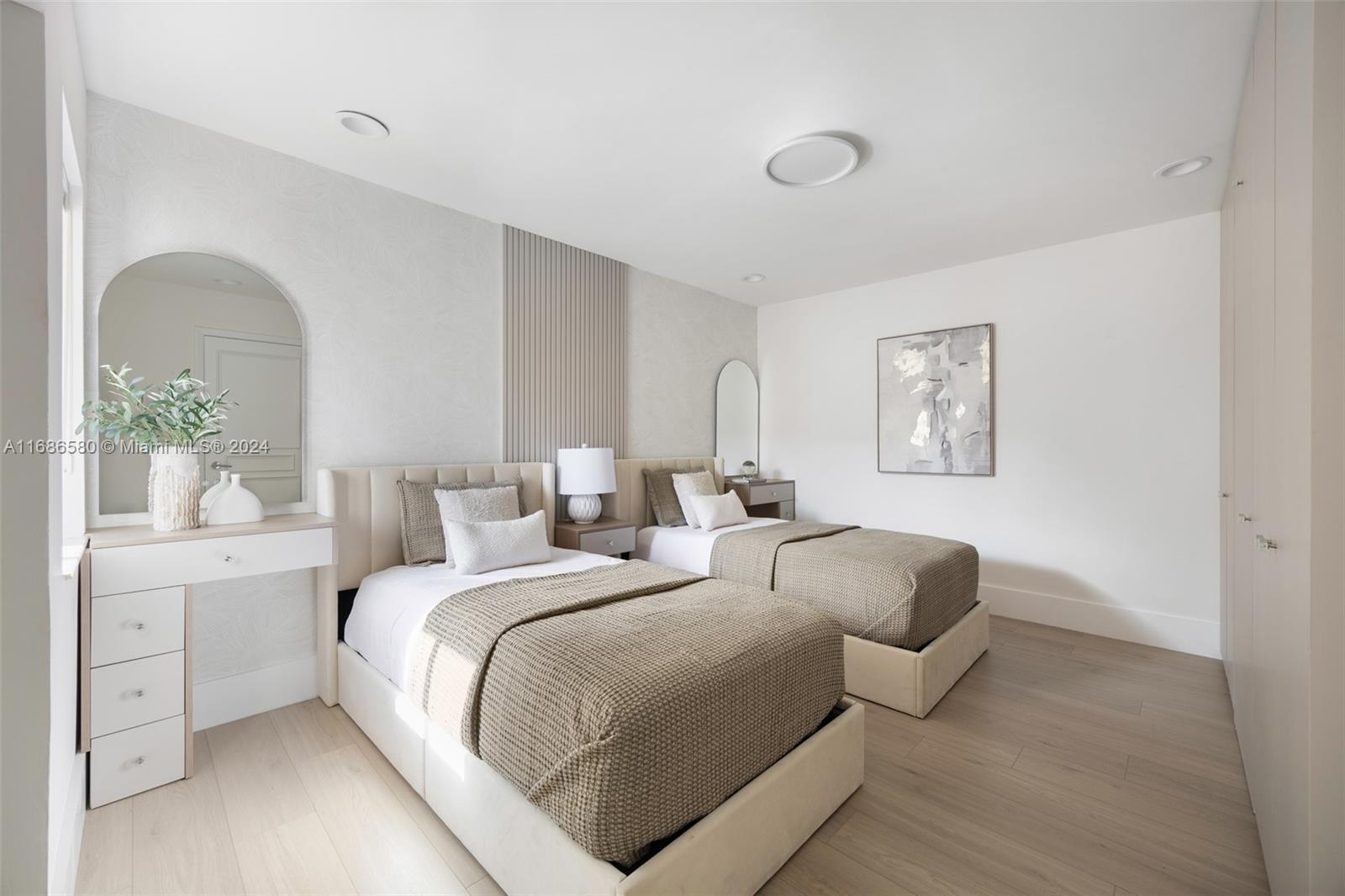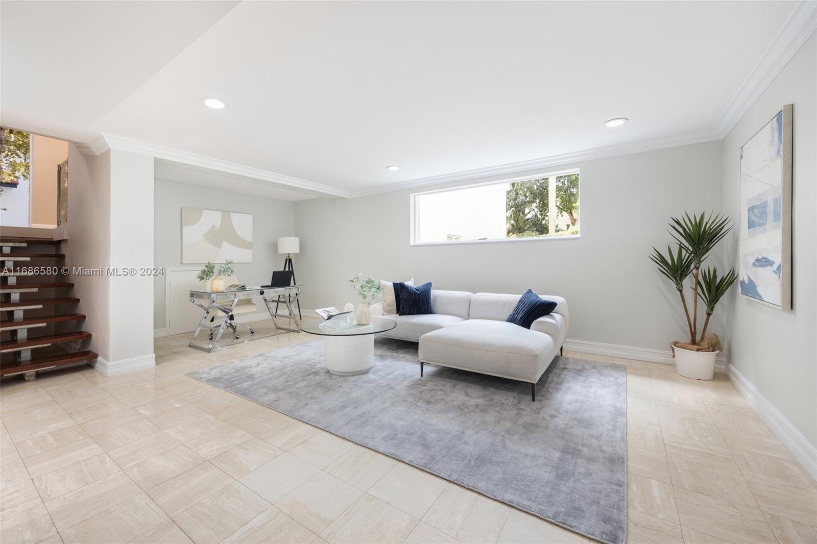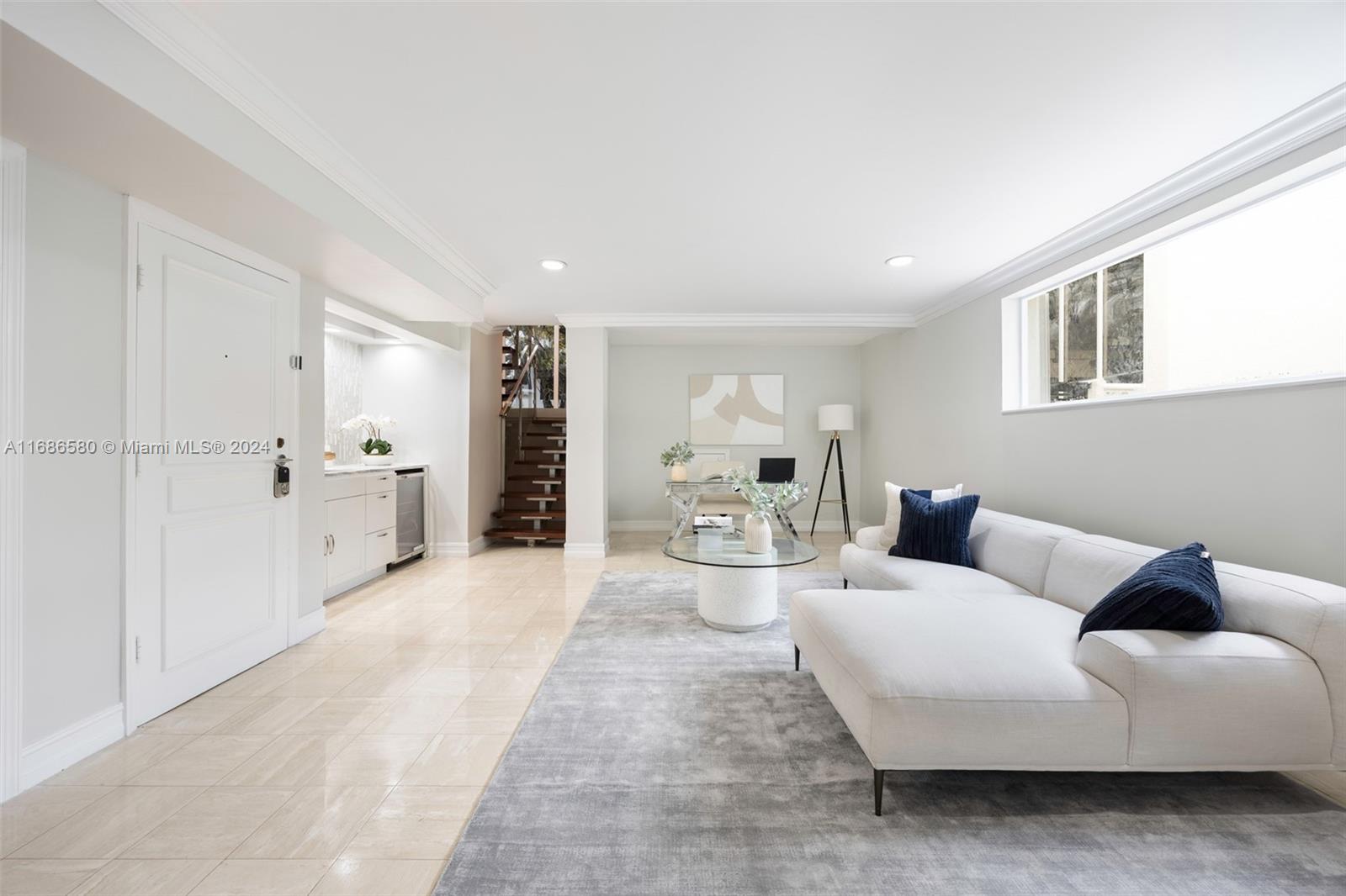 Magnificent tri-level villa in the private community of L ‘Hermitage, a guard-gated enclave w/lush tropical landscaping & a winding road leading to Biscayne Bay. Experience expansive, light-filled living spaces w/dramatic vaulted ceilings & a modern vibe throughout. Major updates include: stunning kitchen featuring sleek European cabinetry & high-end appliances. Ideal floorplan includes 1st level guest suite w/separate living area. Oversized primary suite w/ floor-to-ceiling glass - offers 2 large walk-in closets & a spa-like bath w/ soaking tub & glass enclosed shower. Enjoy resort style amenities: heated bayfront pool, 2 clay tennis courts, on-site manager, 24/7 security & available community dock w/ocean access. Close to the Grove village, Brickell & the Beaches.