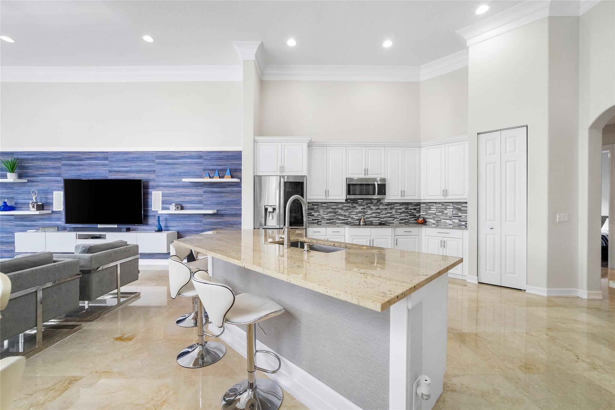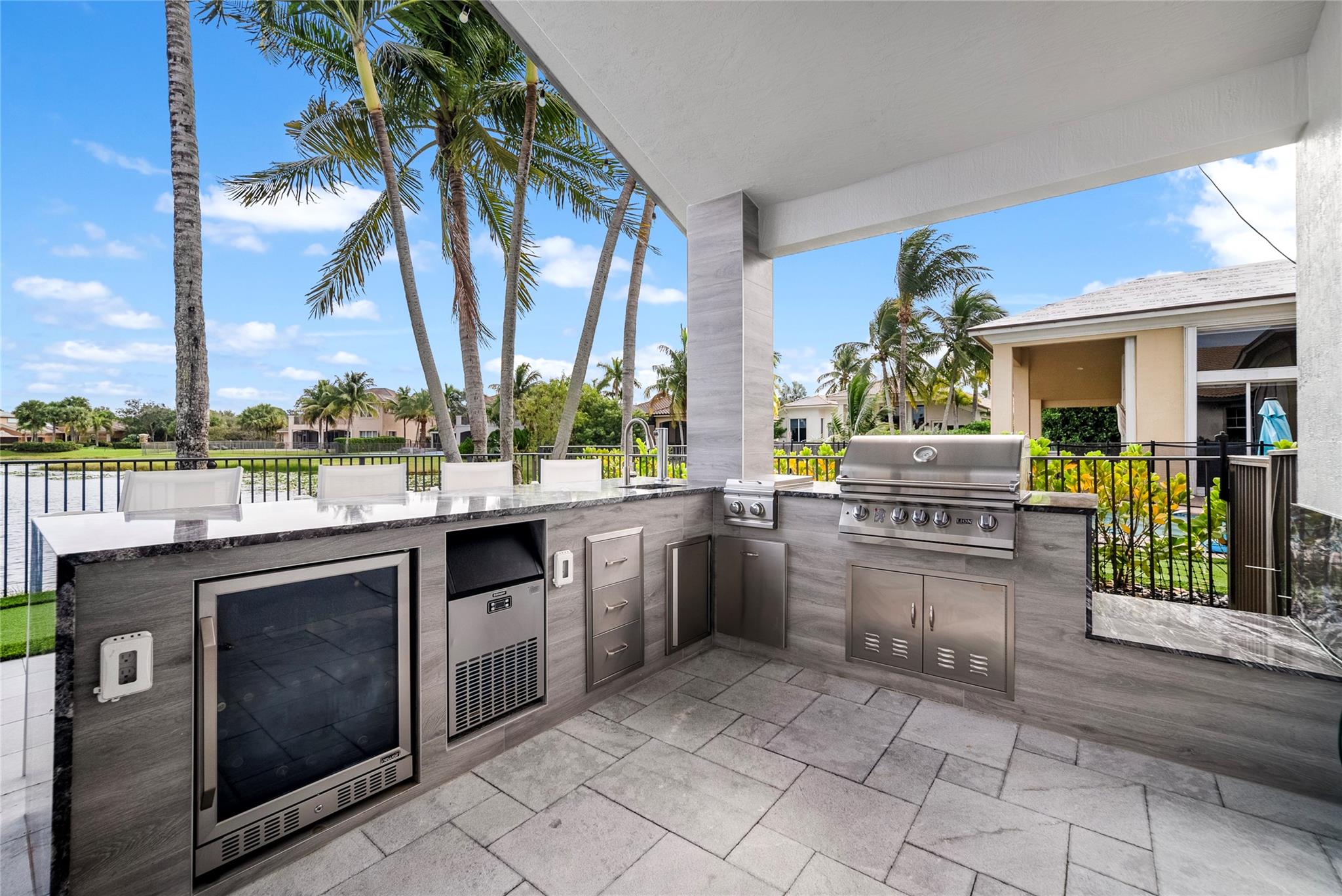 Over $150K In Upgrades! Turnkey One-Story 5 Full Beds, 3 Baths Waterfront Pool Home w/3-Car Garage In Popular Carmel Model Home In Heron Bay's The Highlands Community! Must See Back Patio Oasis Which Boasts Gray Blue Tahoe Sandblasted Marble Pavers w/Updated Full Summer Kitchen, Updated Turf w/Mini Golf Area, New Fence, & Accordion Hurricane Shutters. All Baths Have Been Renovated, Newer Kitchen w/Custom Jenn-Air Appliances, Island, New Countertops, Sink & Backsplash, Fitted Closets, & Stylish Window Treatments. The Home Combines Elegance & Functionality, Custom Wallpaper, Epoxy Floors In The Garage w/Extra Storage. Freshly Painted Exterior, Low HOA Fee, Resort-Style Amenities Including Clubhouse w/Tennis Courts, Fitness Center, Heated Pool & Spa, & More, 24-Hour Guard Gated, & A+ Schools.