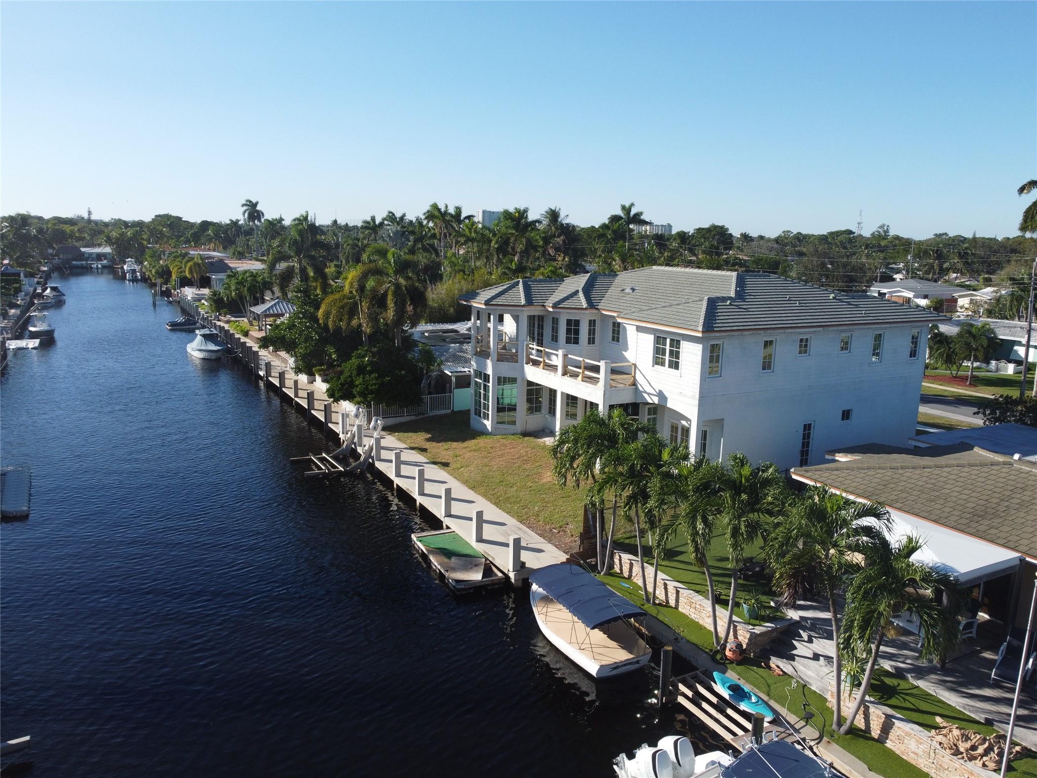 Rare Opportunity to Own a Waterfront Home at Unmatched Value! Located in the desirable Garden Isles neighborhood of Pompano Beach, this partially completed 4 bed, 4.5 bath home with an office offers a blank canvas for your vision. The home is built to the studs inside, with a primed exterior and a newly completed concrete dock, seawall, and new boat lift, all ready for you to make it your own. Sold as-is, this property presents one of the best values for new construction on the water.