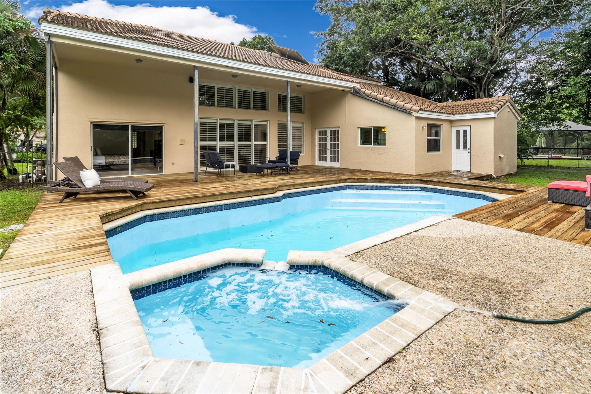 BEAUTIFUL TWO-STORY HOME FOR SALE WITH POOL! THIS HOME BOASTS GORGEOUS FINISHES THROUGH OUT! BEAUTIFUL TILE FLOORS THROUGH OUT! PLENTY OF NATURAL LIGHT, FRESHLY PAINTED! KITCHEN FEATURES ALL SS APPLIANCES, BEAUTIFUL ALL WHITE CABINETRY AND GRANITE WITH OVERSIZED WATERFALL ISLAND! MASTER EQUIPPED WITH HUGE WALK-IN CLOSET, HIS AND HER SINKS, SHOWER + JET TUB AND POOL VIEW! SECOND FLOOR FEATURES ADDITIONAL SPACIOUS BEDROOMS, HUGE BATHS AND LAUNDRY ROOM! HUGE BACKYARD WITH POOL AND DECK, FULLY FENCED WITH LARGE GRASS AREA. ONE OF THE BIGGEST LOTS IN THE NEIGHBORHOOD! CLOSE TO MAJOR HIGHWAYS, SHOPPING, PLACES OF WORSHIP, A-RATED SCHOOLS, AND SO MUCH MORE!