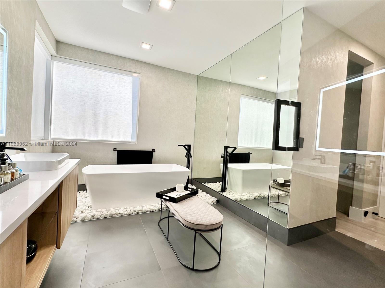 For sale in the exclusive Modern Doral 45 community. This fully renovated 5-bedroom, 5-bathroom home blends elegance and functionality. Fully remodeled, it features Italian porcelain floors, a new heated pool, and modern bathrooms and kitchen. The property boasts impact windows, a glass balcony and staircase, and motorized blackout curtains. Enjoy advanced amenities such as a gas-powered kitchen, LED lighting, electric car charging, and a high-tech camera system. With a 4-car driveway and 2-car garage, it accommodates up to 6 vehicles. A unique opportunity for luxury living in Doral, surrounded by a wealth of amenities, shopping centers, restaurants, highly rated A+ public and private schools, and much more. Enjoy the convenience of quick access to Miami's most important highways.