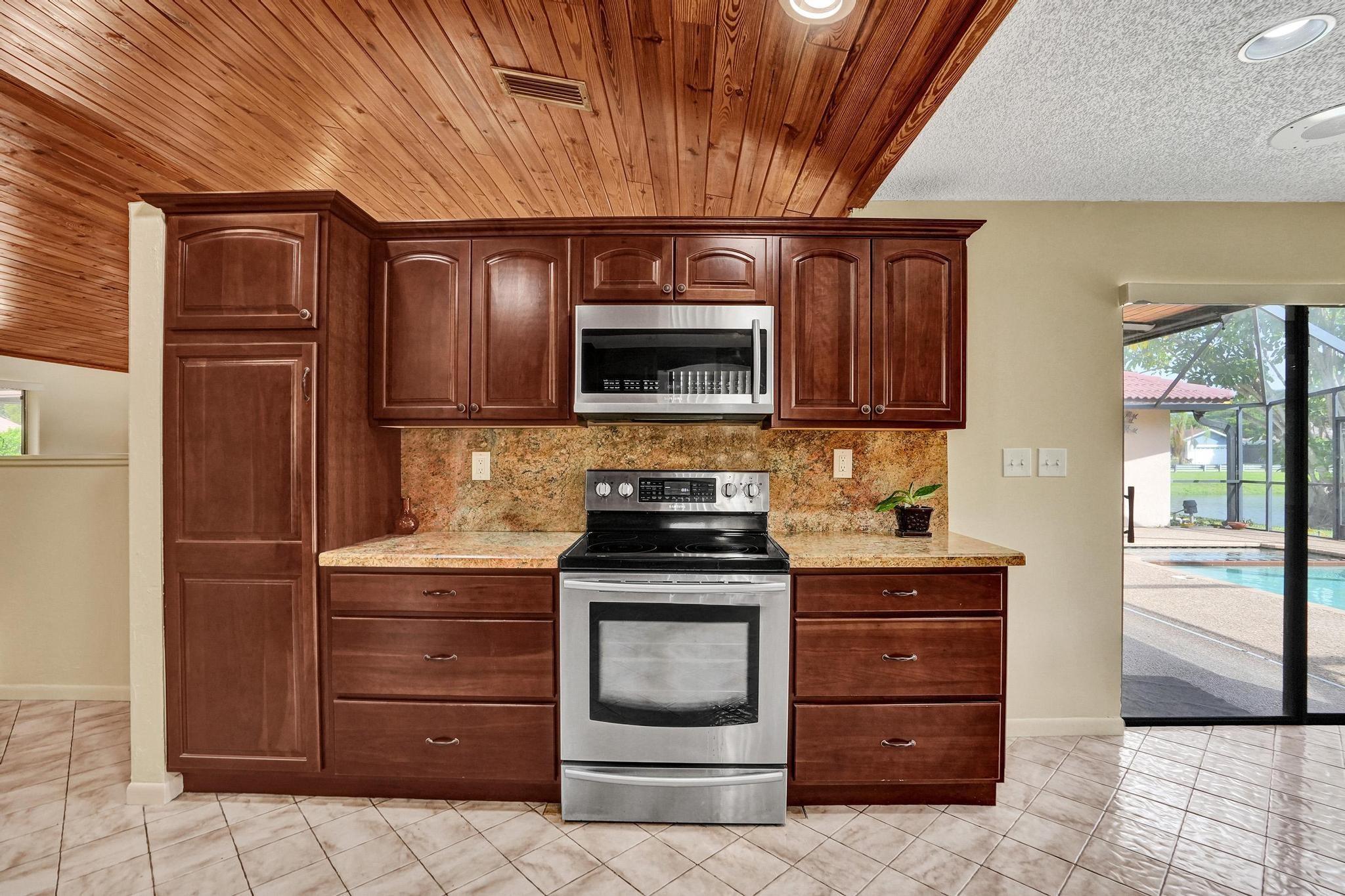Bring your finishing touches to the best deal in the Cypress Run neighborhood of Coral Springs - NO HOA! Beautiful waterfront lot with long & wide water views. Kitchen has been updated with cherry wood cabinets, granite counter tops, & stainless steel appliances. Vaulted tongue & groove ceilings make the home feel much larger than its already 2600+ sq ft size! 4 generous sized bedrooms with ample closet space. Master bedroom features XL cedar-lined closet. Both bathrooms updated with new vanities & countertops. 2nd bathroom is cabana bath leading out to the covered patio w/ hot tub & screened in pool. This is an amazing deal in a neighborhood with homes selling for significantly more money. Put in your own custom upgrades and walk into instant equity!