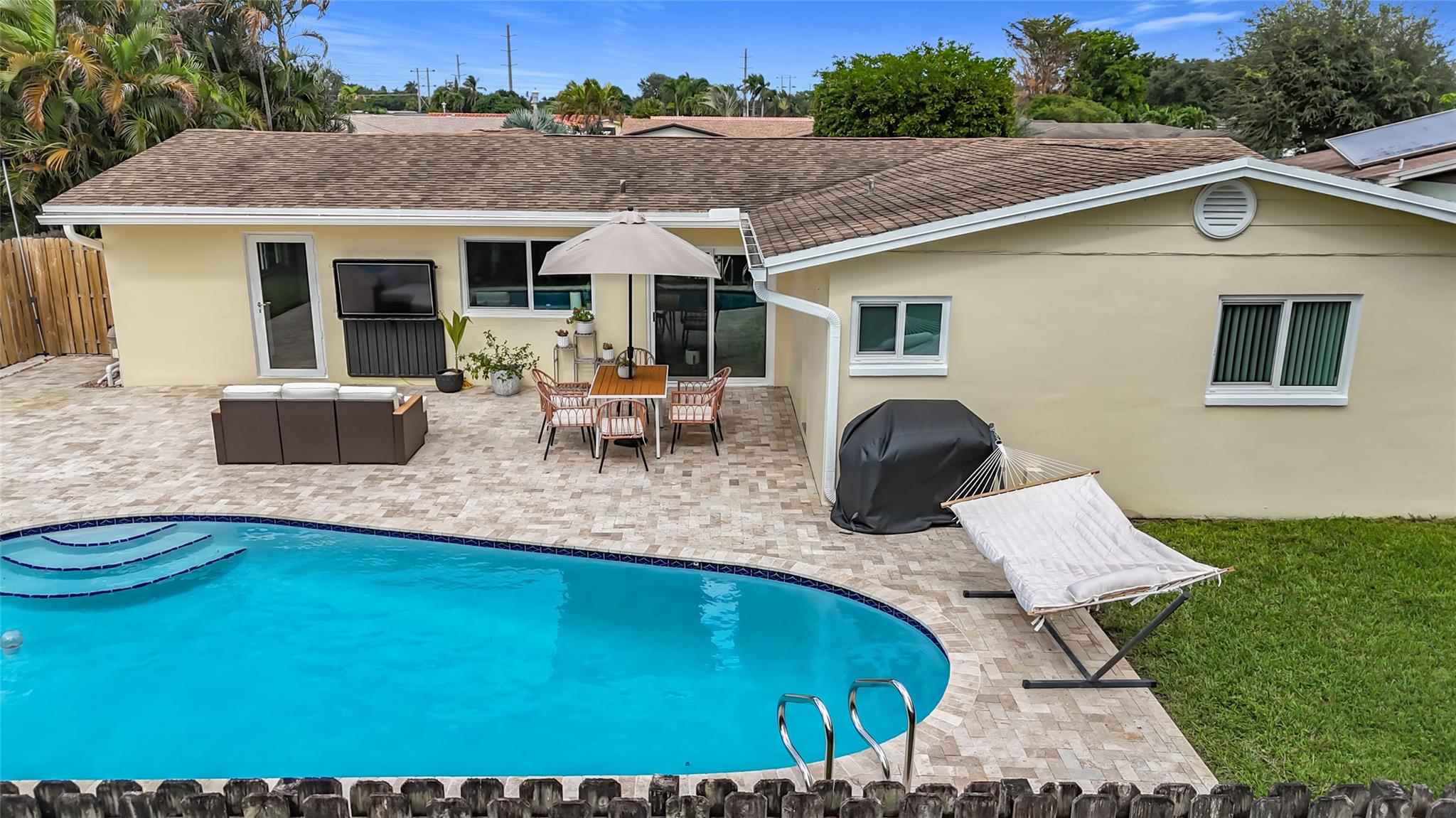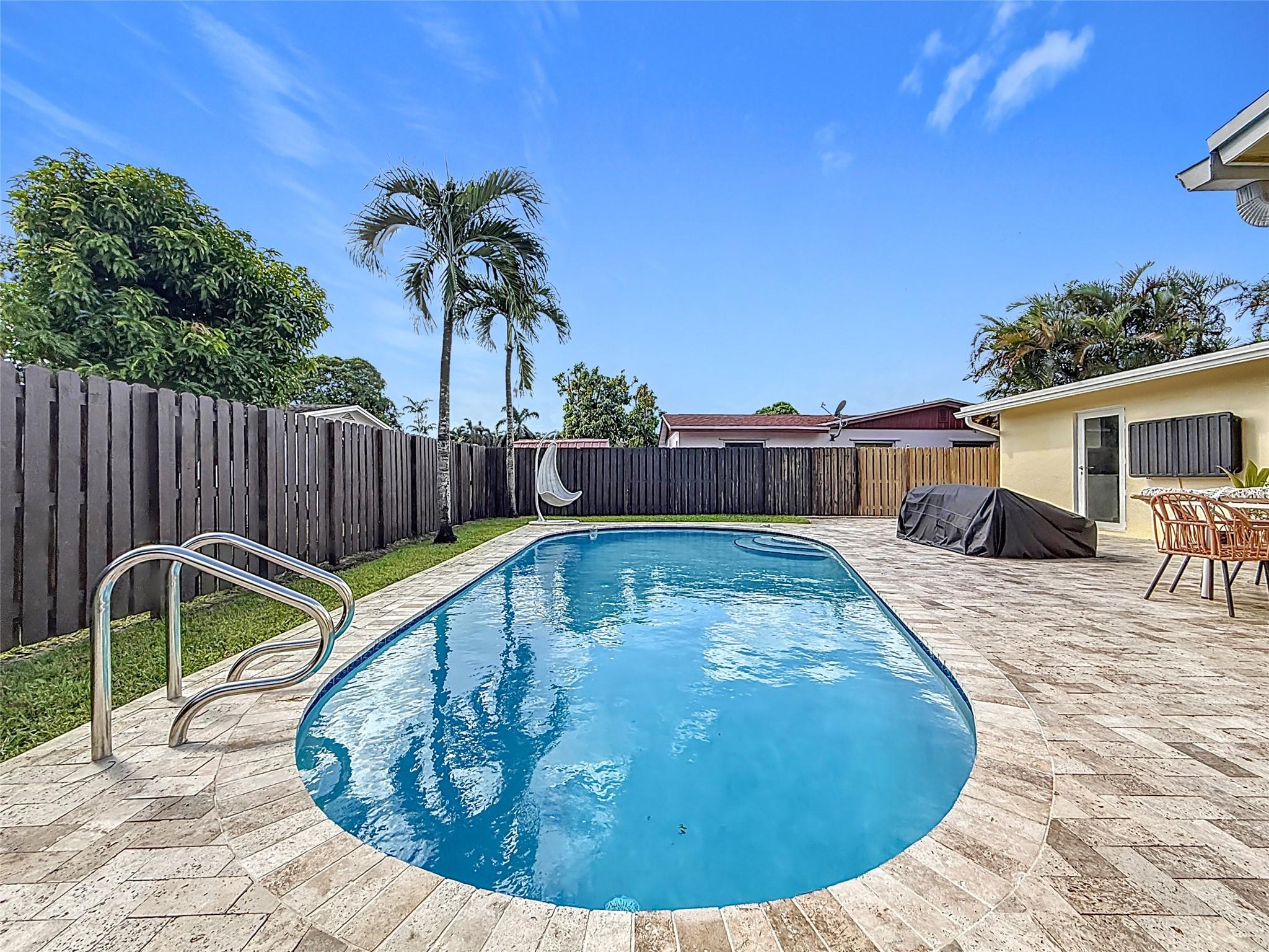 Get Ready to fall in Love at First Sight! This beautiful Home features 4 bedrooms, 2 baths, a pool, 2 car garage & a large entrance porch. Step inside to a fully open floor plan with an inviting living area, fully remodeled kitchen & spacious dining. All Impact Doors & Windows! with tons of natural light & a gorgeous view of the pool. Excellent layout, with the first 3 beds & bath separated from the private primary bedroom. The main bath can also be accessed from the patio. High quality travertine pavers large pool & patio area, to fully enjoy South Florida outdoor living. Smart Wi-Fi voice activated LED lighting in the backyard, Wi-Fi smart Activated LG Dishwasher & Oven. New Variable Speed pool pump, ceramic floors, no Flood Zone, No HOA and so much more. Come see this Beauty right away.