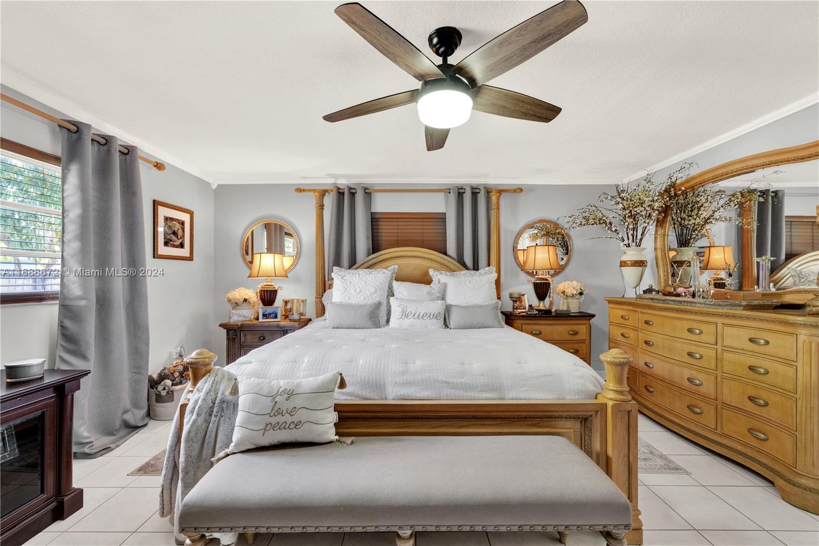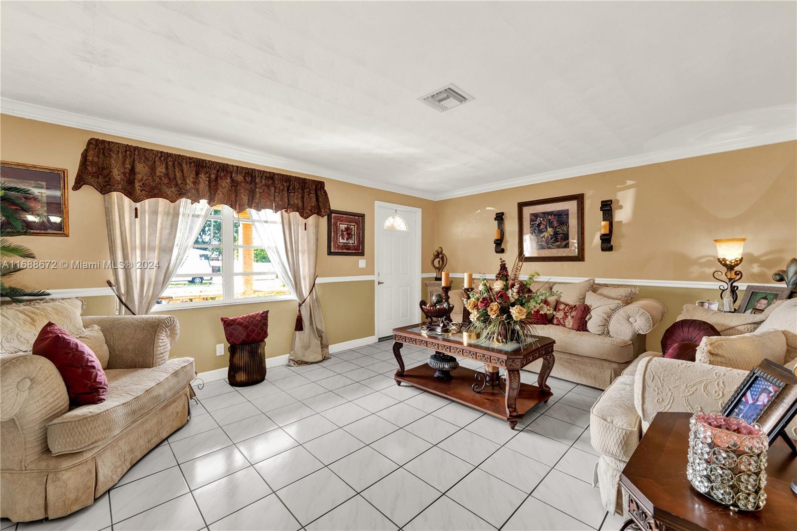 This lovely single-family home in Hialeah features 4 bedrooms and 3 bathrooms on an oversized, fenced lot. It includes a formal living and dining room, a Florida room, and a breakfast nook. The home has tiled flooring throughout, with laminate wood flooring in two bedrooms. The spacious master bedroom has a recently renovated bathroom. This home features a secondary master bedroom with its own bathroom. The roof was completely replaced in 2018. The rear yard includes fruit trees, a large shed with lighting, and grassy areas perfect for entertaining. The front circular driveway can accommodate multiple vehicles, making this a spacious home in a desirable Hialeah location.