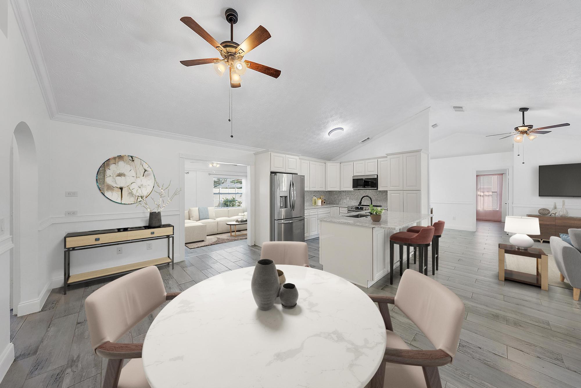 Nestled in a serene, sought-after neighborhood, this beautifully renovated 3 bed, 2 bath home is a true gem! With new standing seam metal roof, this home combines timeless elegance with modern updates. Step inside to find soaring ceilings with exquisite crown molding, gourmet kitchen with top-of-the-line finishes and ample counter space for meal prep and entertaining. Warm, wood-look tile floors throughout, luxurious primary bathroom offers a spa-like retreat, spacious backyard is a private oasis with lush landscaping and screened-in porch to relax and unwind. Conveniently located off Becker Rd. near I-95 with easy access to shopping, dining, local attractions and perfect for commuters.