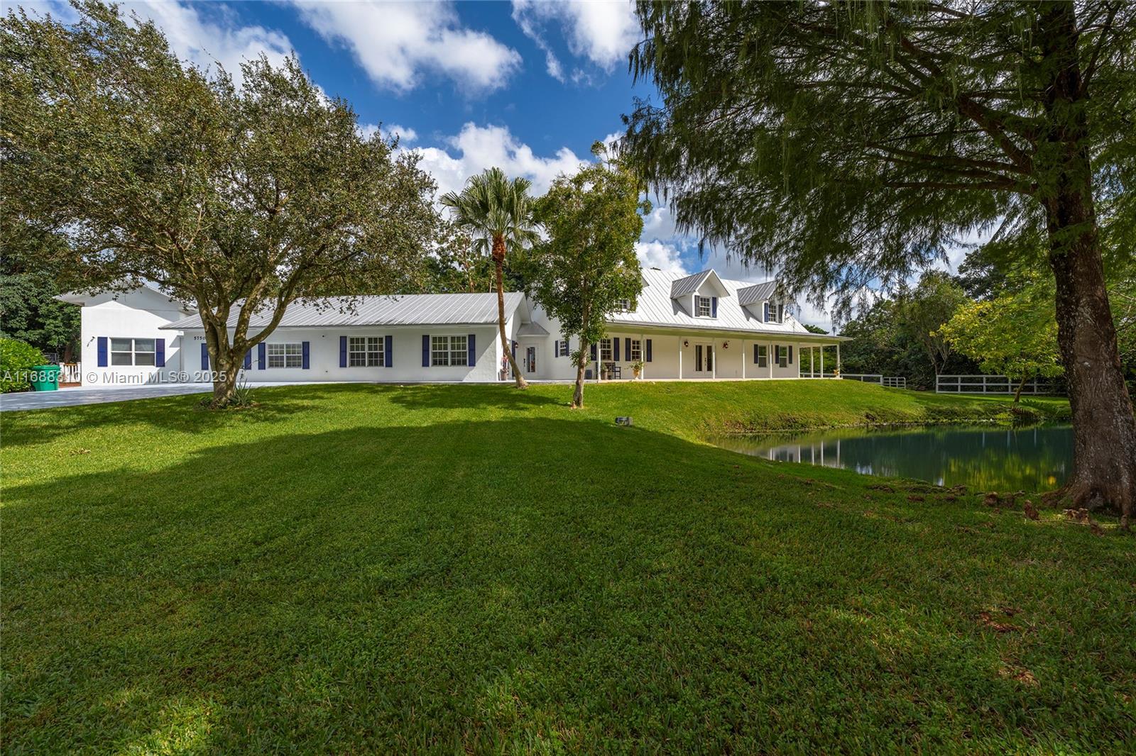 An equestrian dream in Southwest Ranches, this 4,400-sf ranch-style estate sits at the end of a private cul-de-sac on 2.5 serene acres with mature oak trees, lily ponds, & sweeping lawns. Oversized decks designed for entertaining overlook the grounds. Inside, an 18-ft vaulted cedar great room with loft serves as the heart of the home, opening seamlessly to the family room, Florida room, and spacious kitchen anchored by an oversized island. Two suites are thoughtfully positioned on opposite wings for privacy. The primary features a spa-inspired bath with wet room, soaking tub, steam shower, & integrated audio. The second serves as an attached guest or in-law suite, complete with its own private entrance and deck. This property offers a rare sense of sanctuary just minutes from city life.
