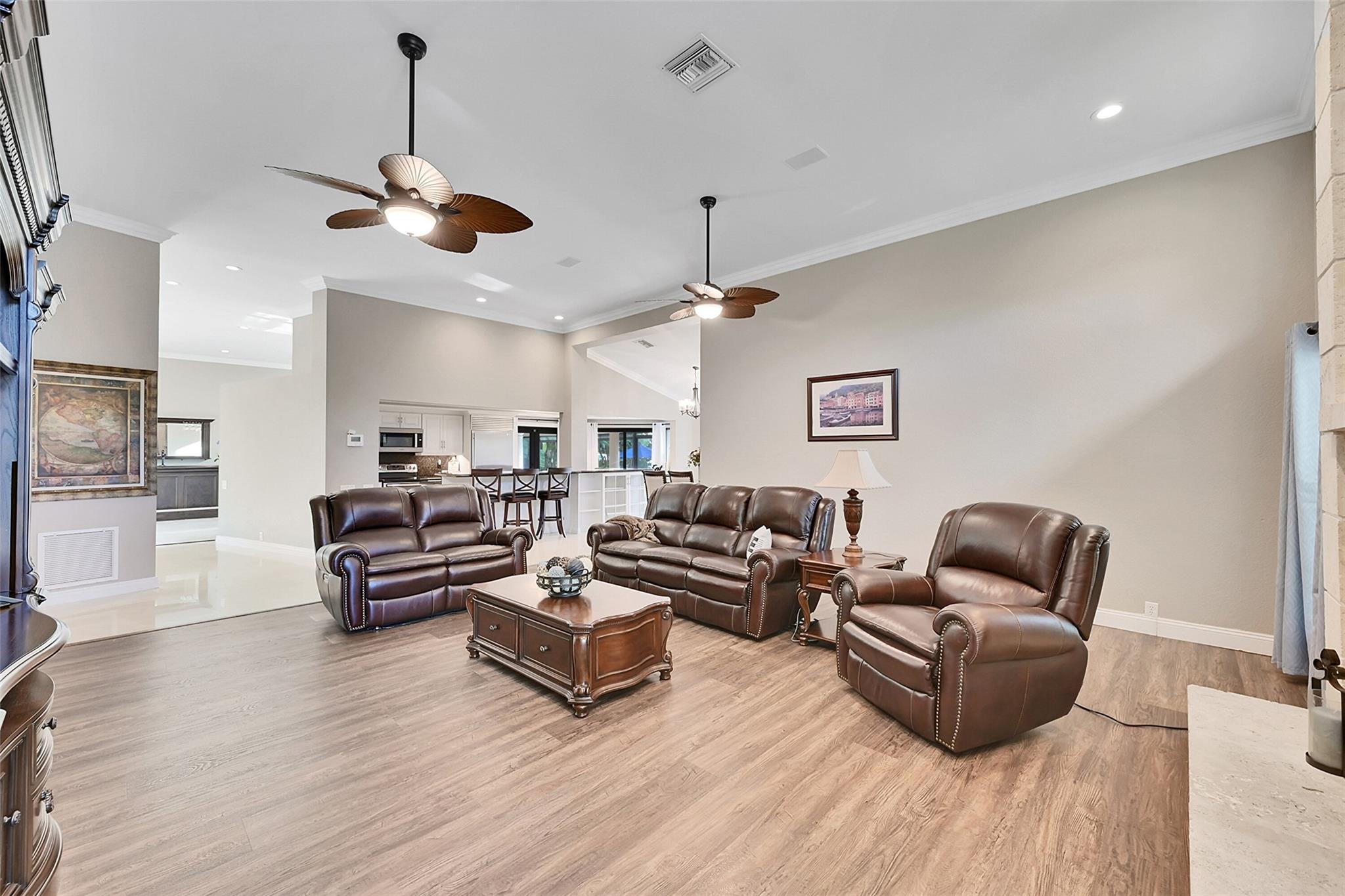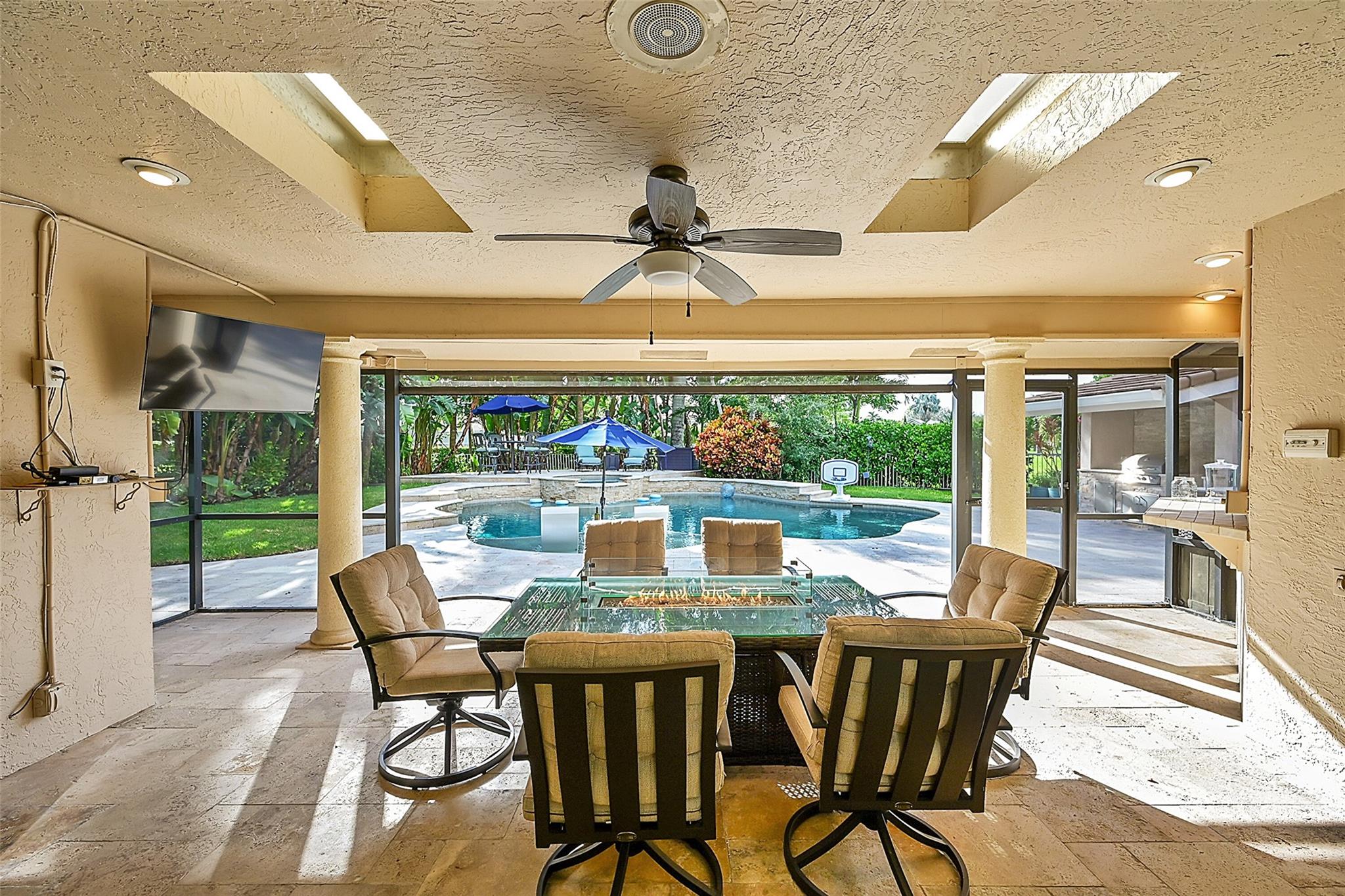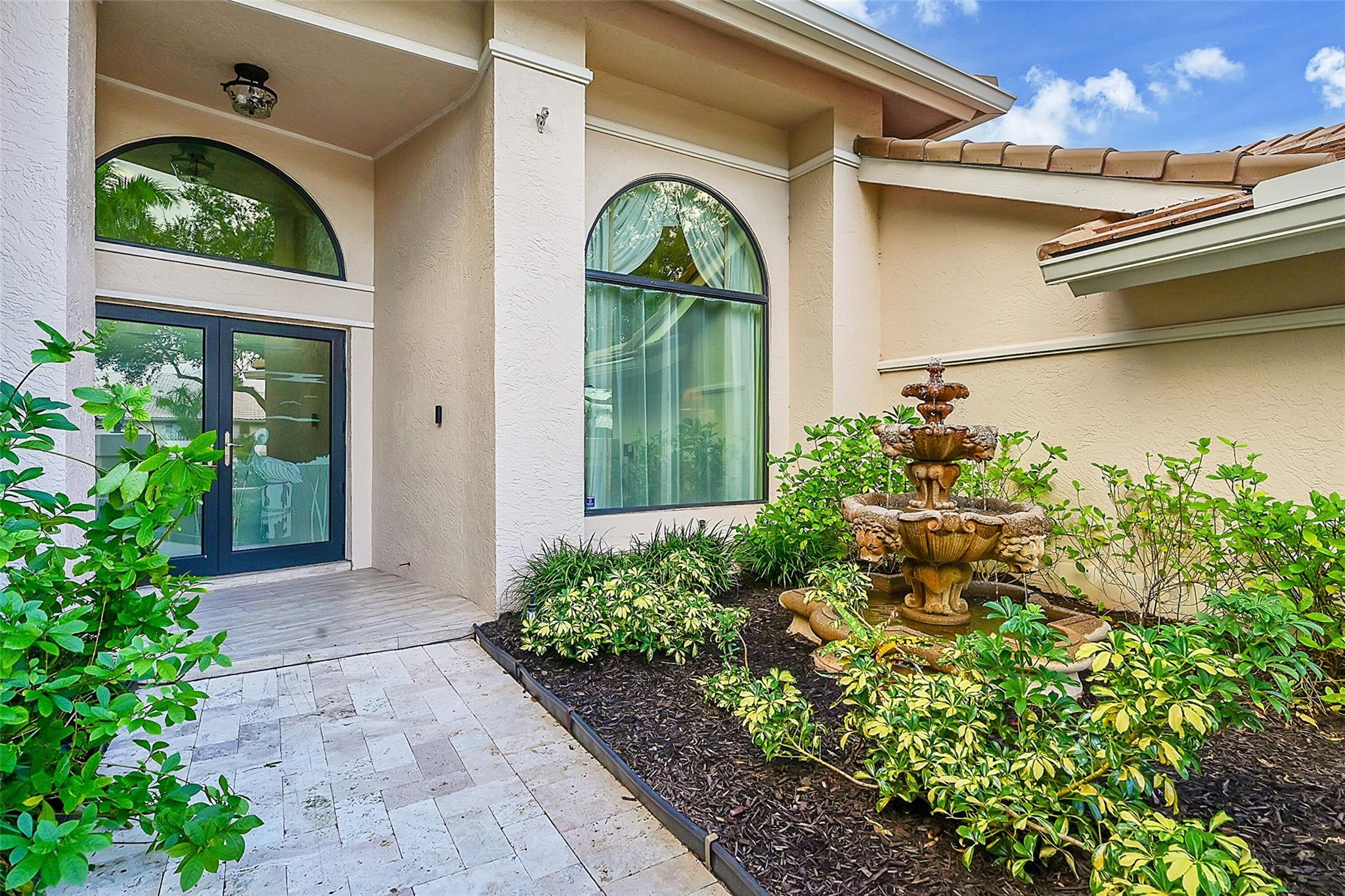 This stunning corner lot in the heart of Cypress Head offers a unique blend of elegance and functionality. Impressive travertine circular driveway. Private gated entrance with a working fountain adds a touch of luxury. Upon entering, you'll be greeted by soaring ceilings that lead your gaze straight to the beautiful oasis-style backyard. The spacious dining room & expansive family room are ideal for gatherings. The open-concept kitchen seamlessly flows into the family room. The primary suite is a luxurious retreat. An automatic screened-in lanai extends the living space outdoors; perfect setting for alfresco dining w/views of the lush, private backyard, offering an idyllic setting for outdoor entertainment or serenity. Truly one-of-a-kind, blending style, luxury, & comfort in every detail.