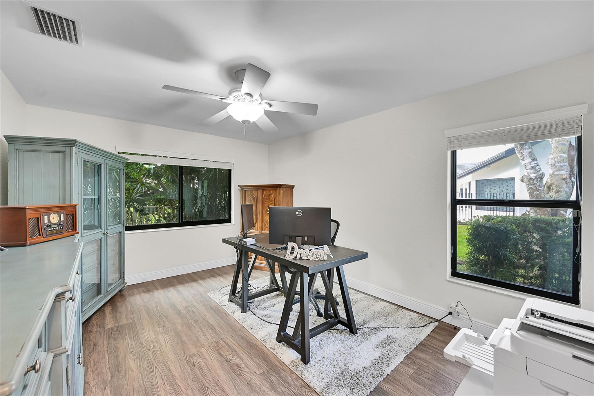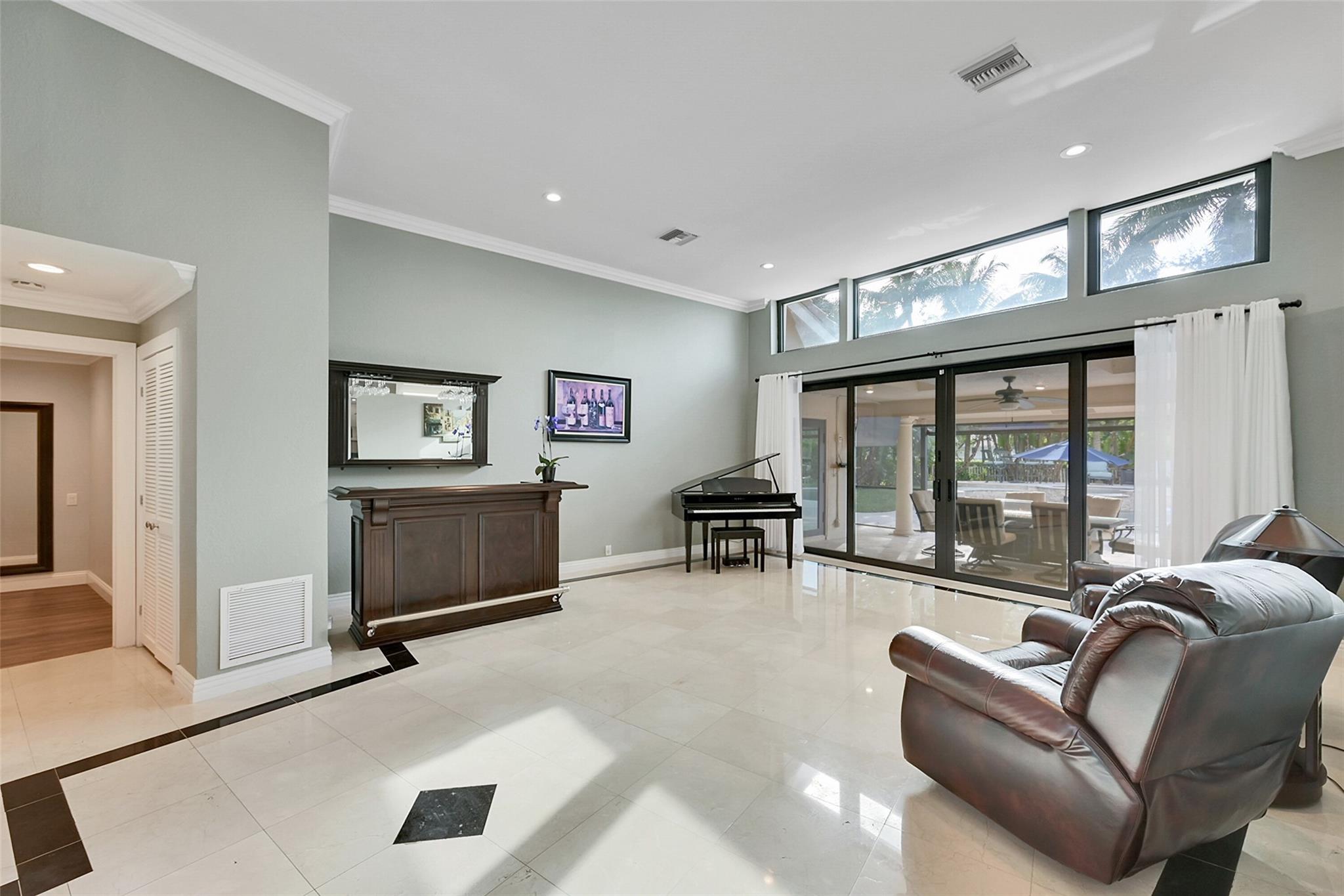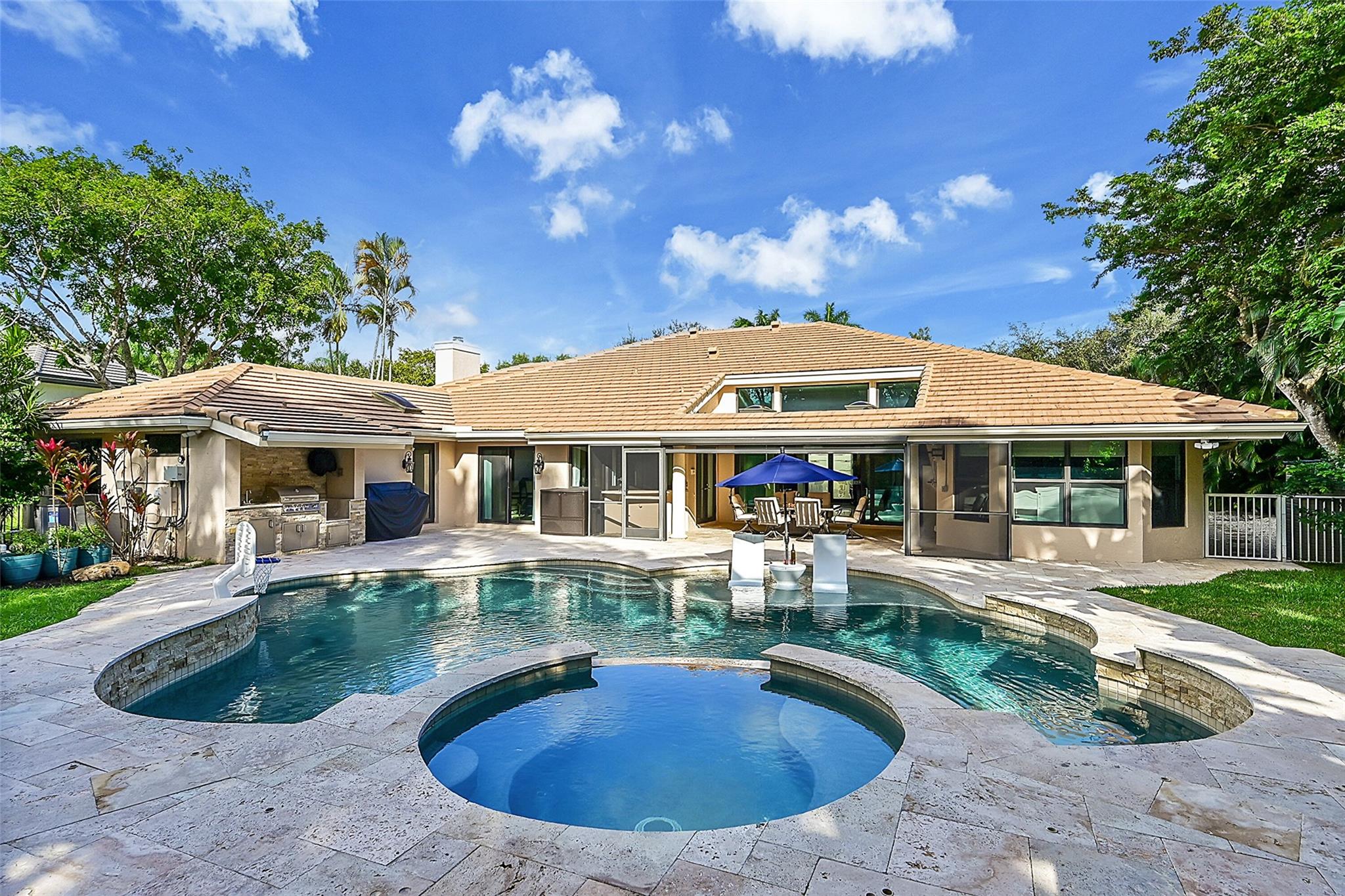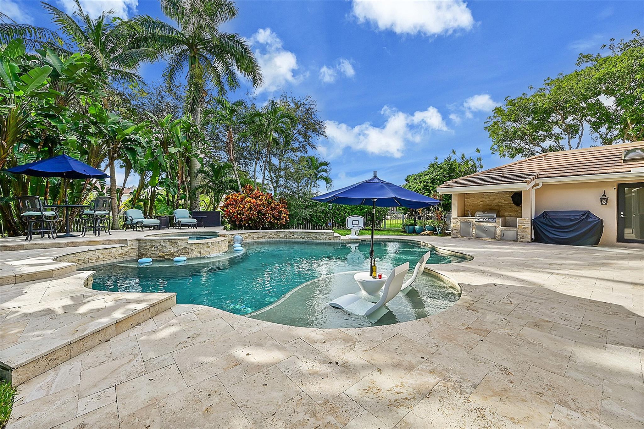 This stunning corner lot in the heart of Cypress Head offers a unique blend of elegance and functionality. Impressive travertine circular driveway. Private gated entrance with a working fountain adds a touch of luxury. Upon entering, you'll be greeted by soaring ceilings that lead your gaze straight to the beautiful oasis-style backyard. The spacious dining room & expansive family room are ideal for gatherings. The open-concept kitchen seamlessly flows into the family room. The primary suite is a luxurious retreat. An automatic screened-in lanai extends the living space outdoors; perfect setting for alfresco dining w/views of the lush, private backyard, offering an idyllic setting for outdoor entertainment or serenity. Truly one-of-a-kind, blending style, luxury, & comfort in every detail.