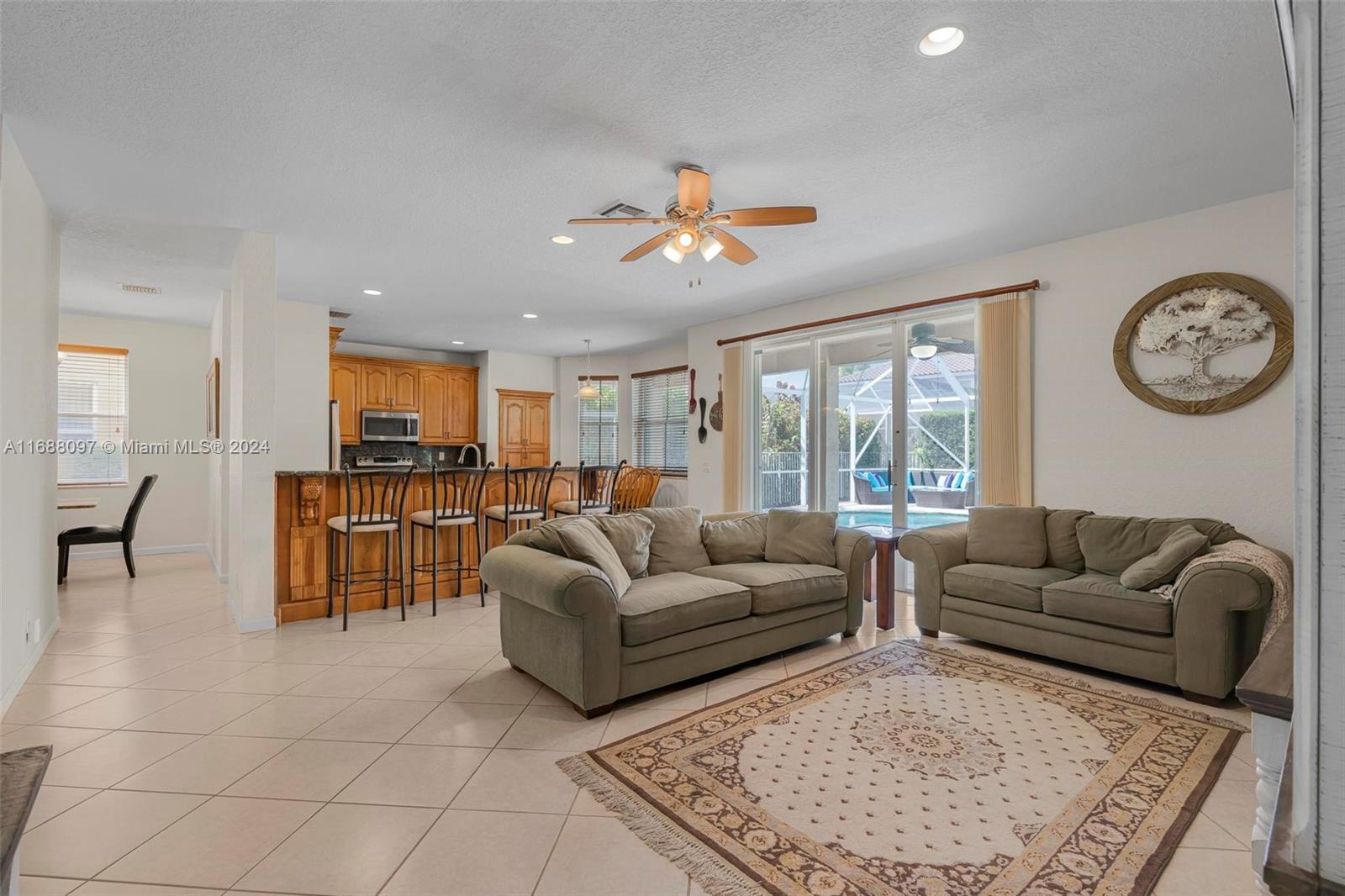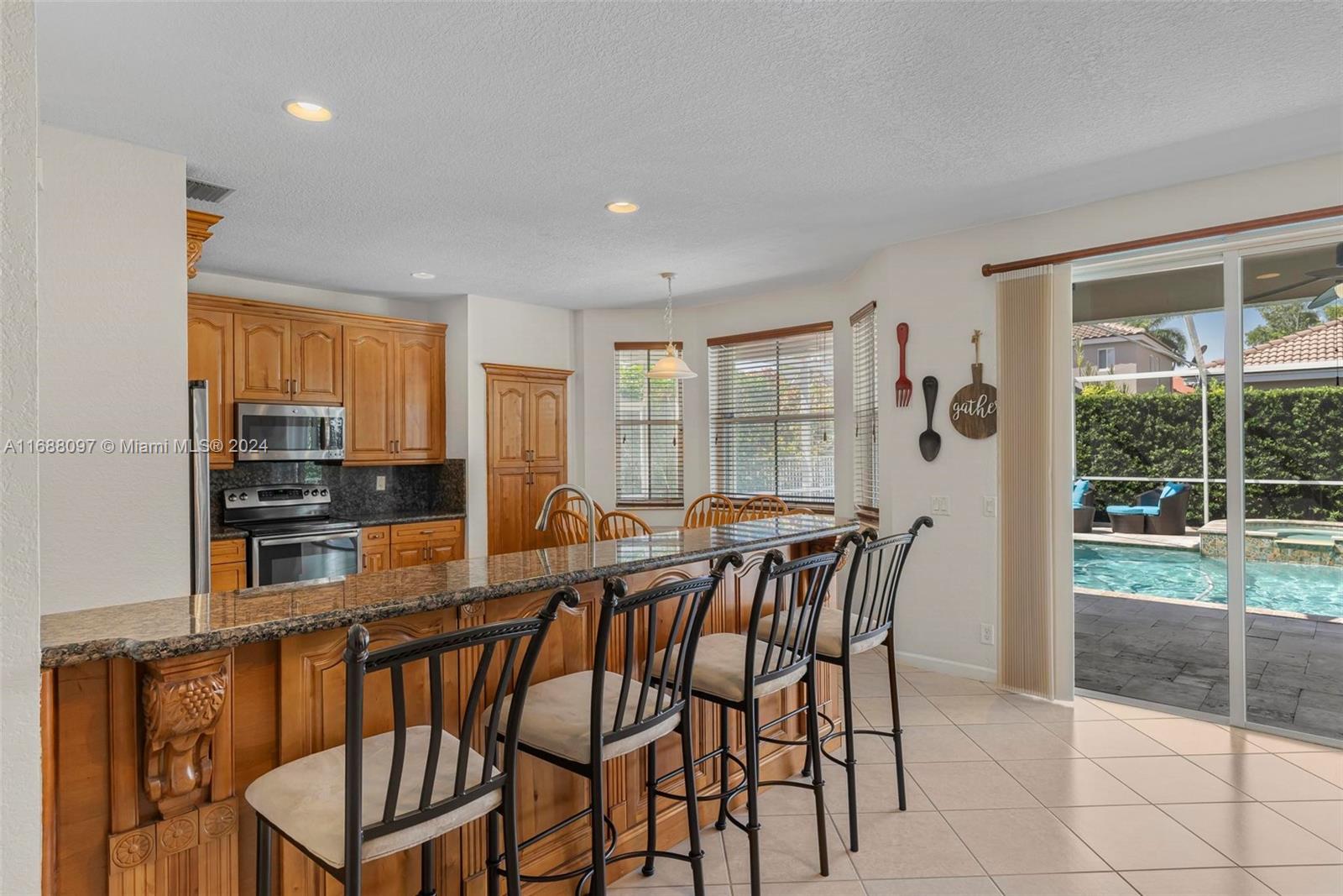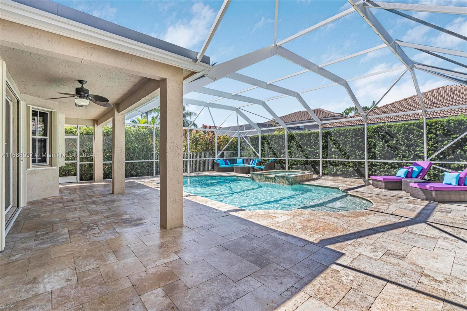 Beautiful 5/4 pool home in the A+ school district and highly sought after gated community of Savanna! This home boasts 5 spacious bedroom with one full bedroom + bathroom downstairs. Fantastic layout with the kitchen opening to a large family room which is great for families and entertaining. Dive into the heated pool & spa w/ extended travertine pool deck enclosed by a 2 story screen enclosure. New heater + pump! Perfect outdoor area to enjoy South Fl living! 2 car garage! Accordion shutters for full storm protection. The Savanna community offers resort style living + state of the art leisure & recreation! A rated schools! Within walking distance enjoy the community amenities including pool, lap pool, waterslide, children’s aquatic play area, mini golf, basketball, roller hockey rink,
