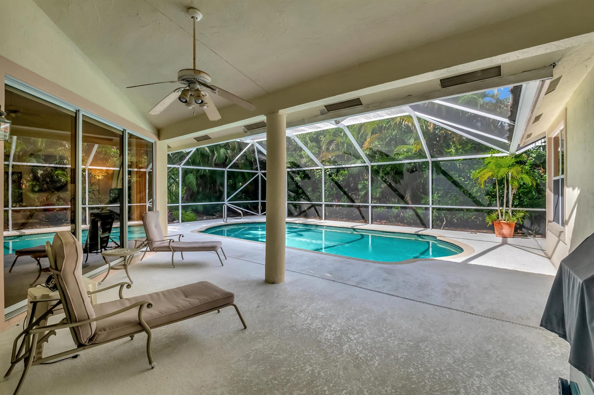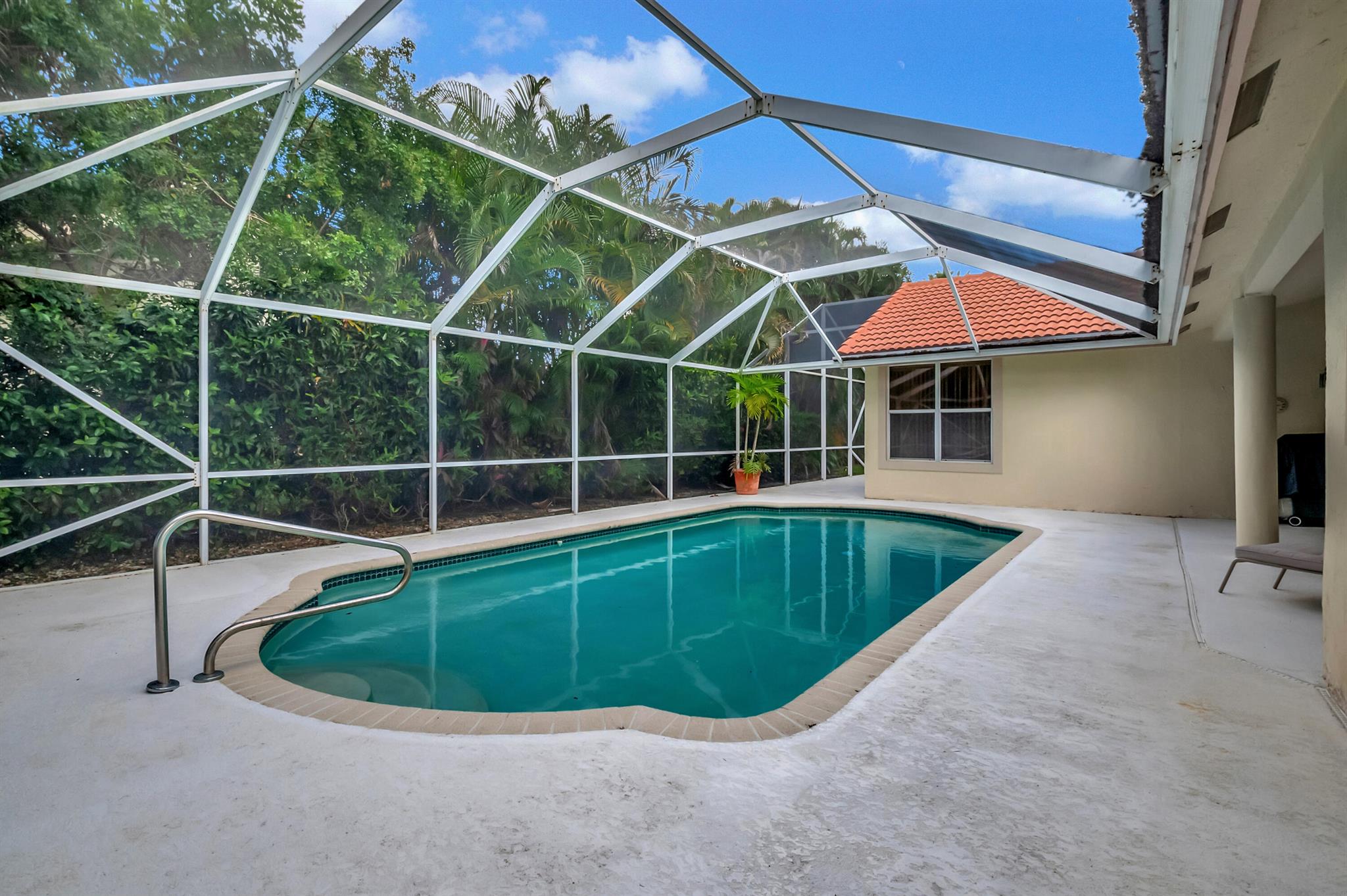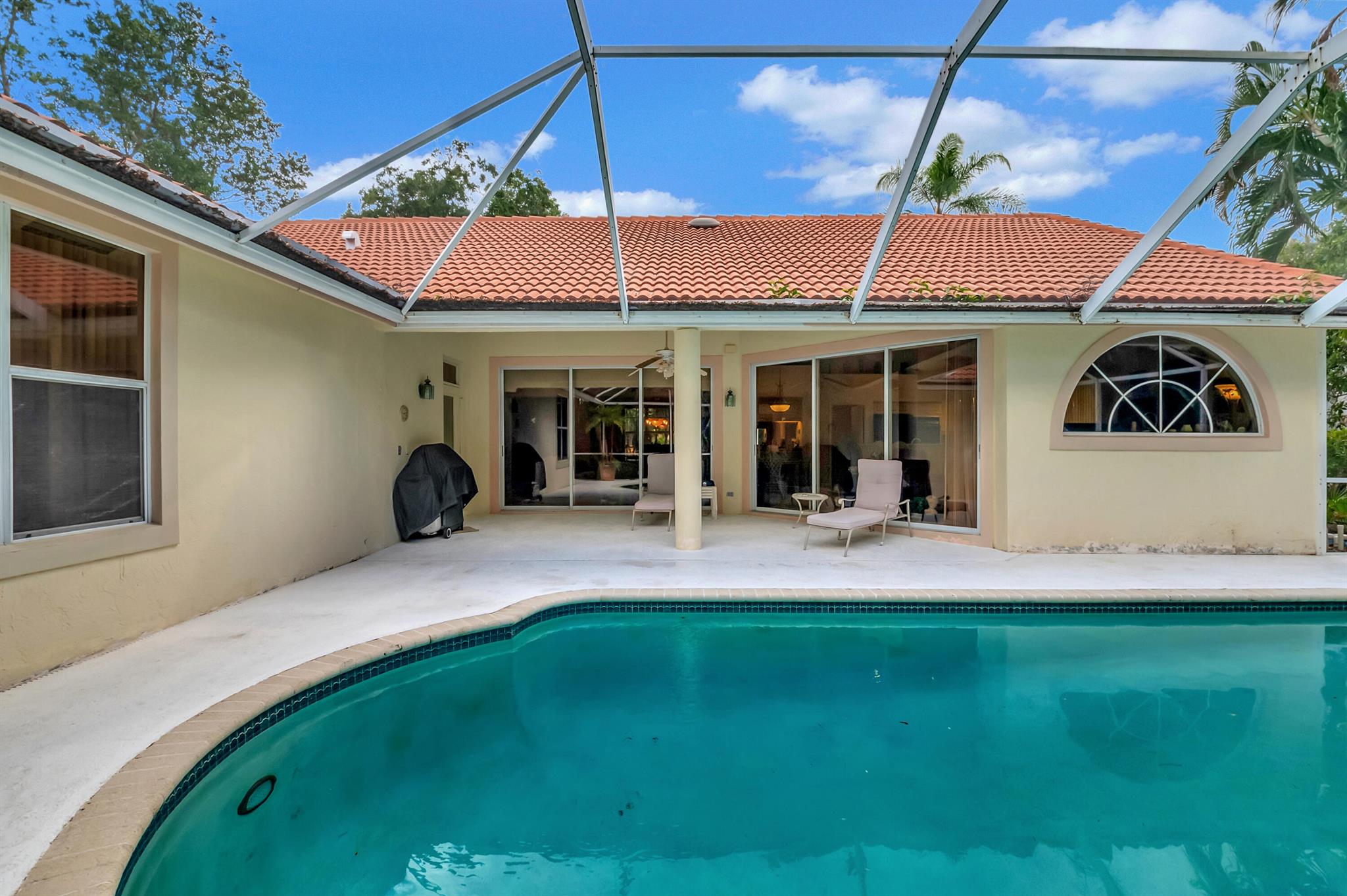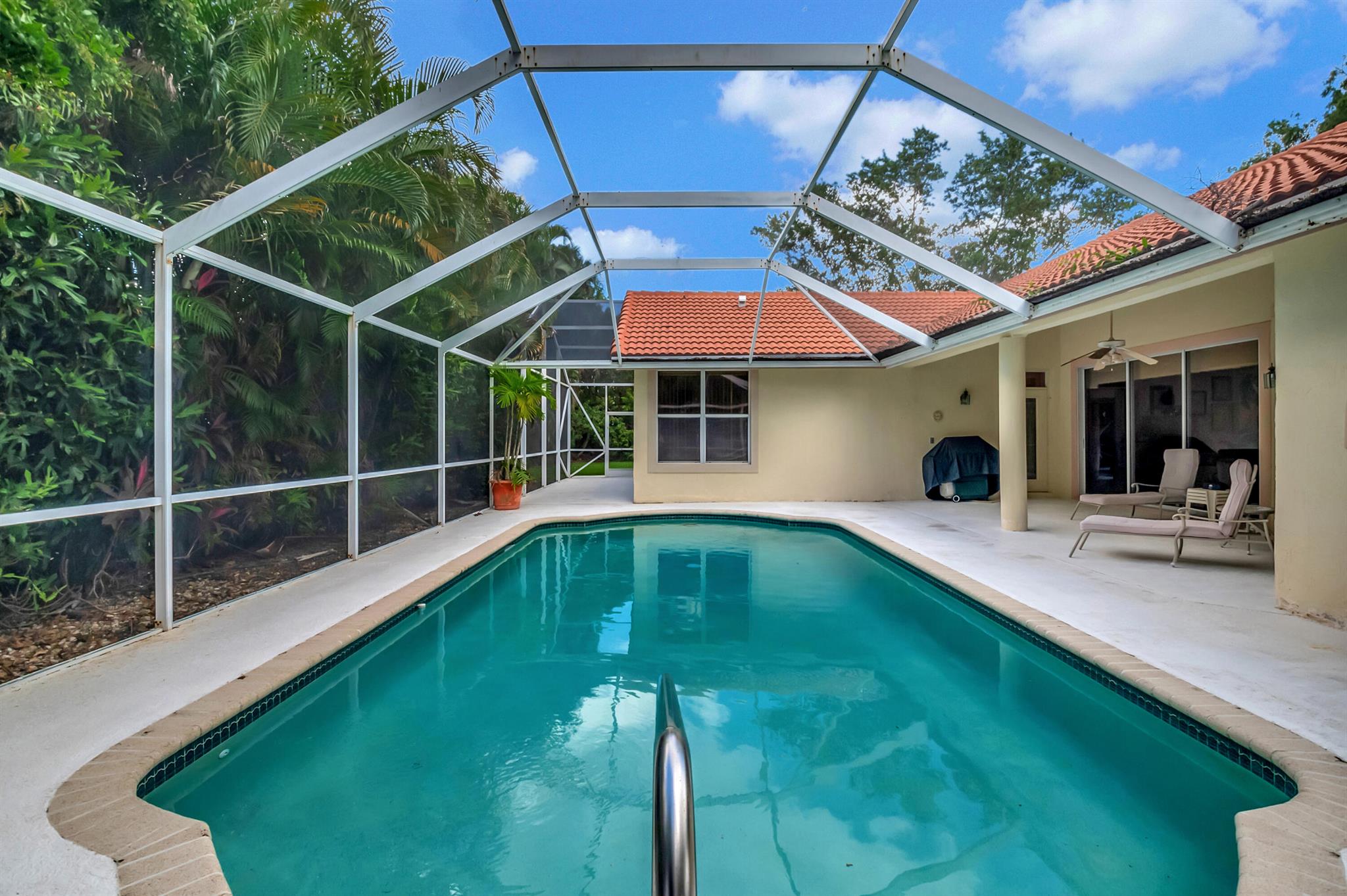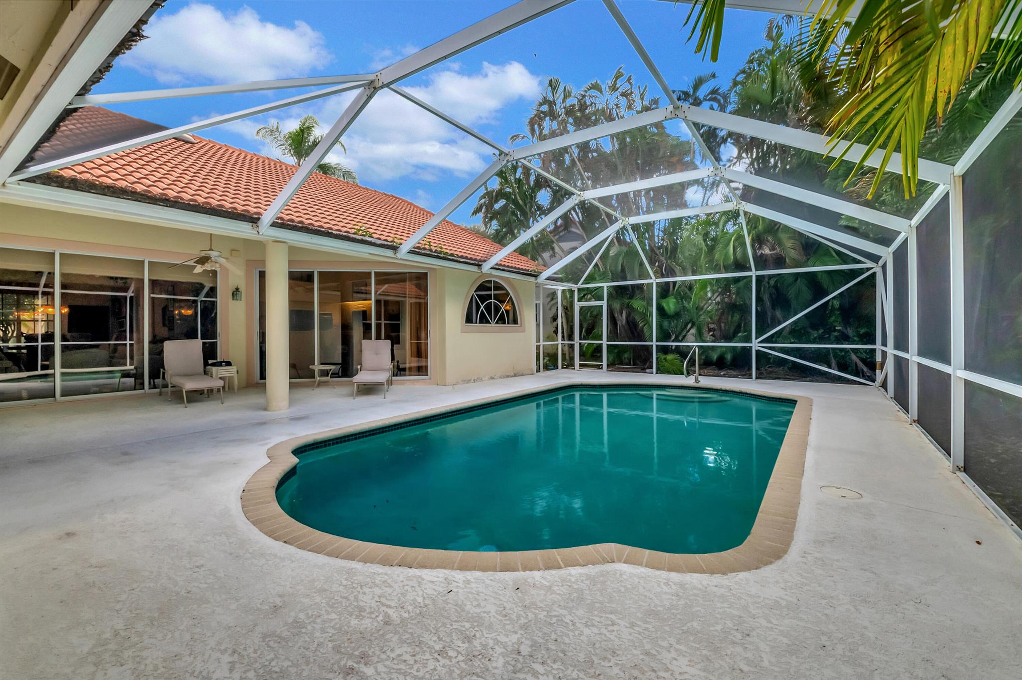 Stunning Jenson Model on an oversized lot in Aberdeen Golf and Country Club. This spacious home features a unique master suite with his and hers bathrooms, offering both luxury and convenience. The home's outdoor living space is equally impressive, with two cabana doors leading to a beautiful domed screened pool area--perfect for relaxing or entertaining guests. Additionally, find outdoor space with room for swing sets and room for dogs. Located within a manned guard gate, the community provides an extra layer of security and privacy. As part of the mandatory membership in the prestigious Aberdeen Golf and Country Club, you'll enjoy access to top-notch amenities, including golf, dining, fitness, and more.